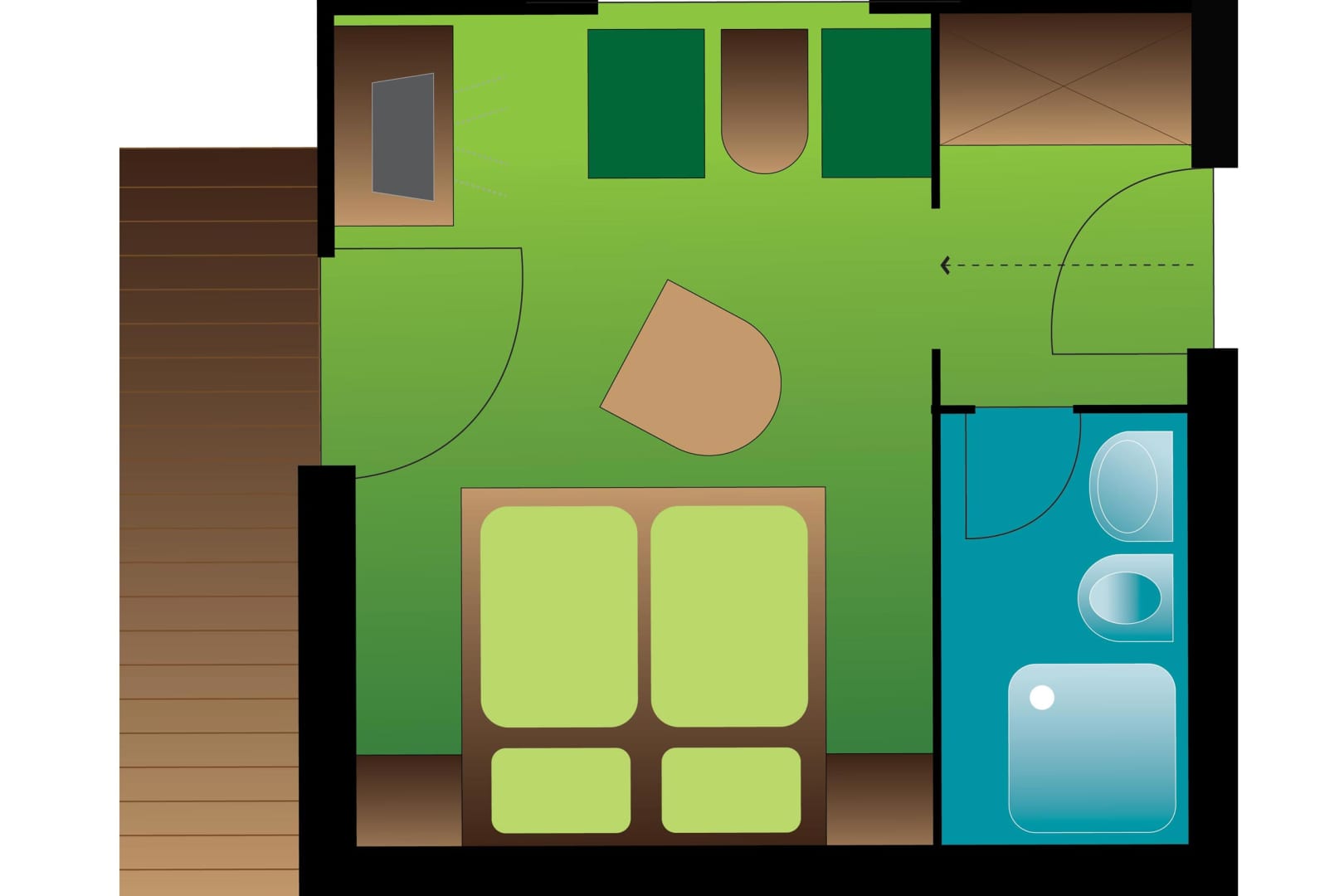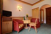 • Schlafzimmer mit Doppelbett und Polstersitzgruppe