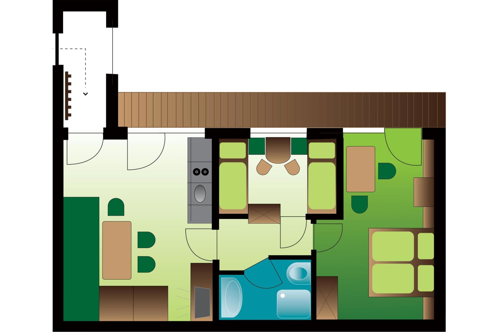 • Wohnküche mit Essbereich und Doppelschlafcouch