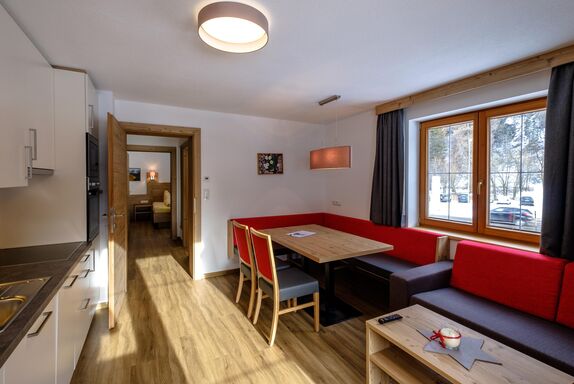 Ihr Appartement 2 mit ca. 45 m² besteht aus: 1 Vorraum, 1 Dreibettzimmer, 1 Badezimmer mit Dusche und WC und 1 geräumige, vollausgestattete Wohnküche (Geschirrspüler, Cerankochfeld, Mikrowelle), sowie einer Ausziehcouch (für 2 Personen), Flat-SAT-TV und Balkon.