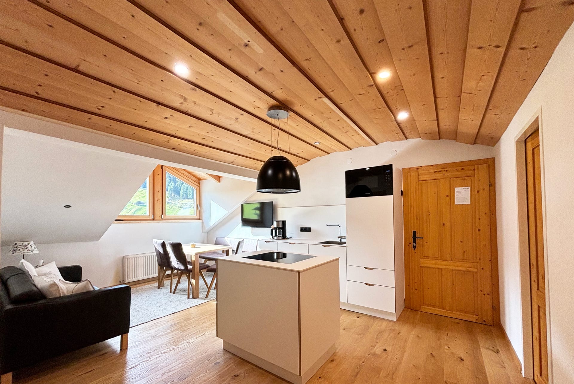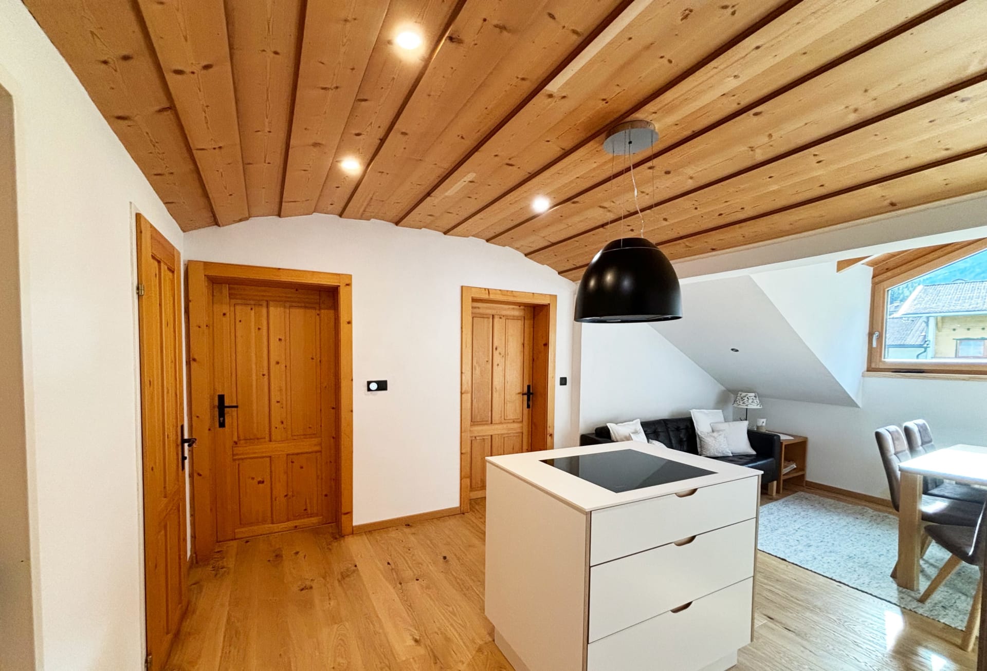 Der Hof wurde mehrmals umgebaut und bietet unseren Gästen 3 geschmackvoll eingerichtete Ferienwohnungen mit Zirbenmöbel.