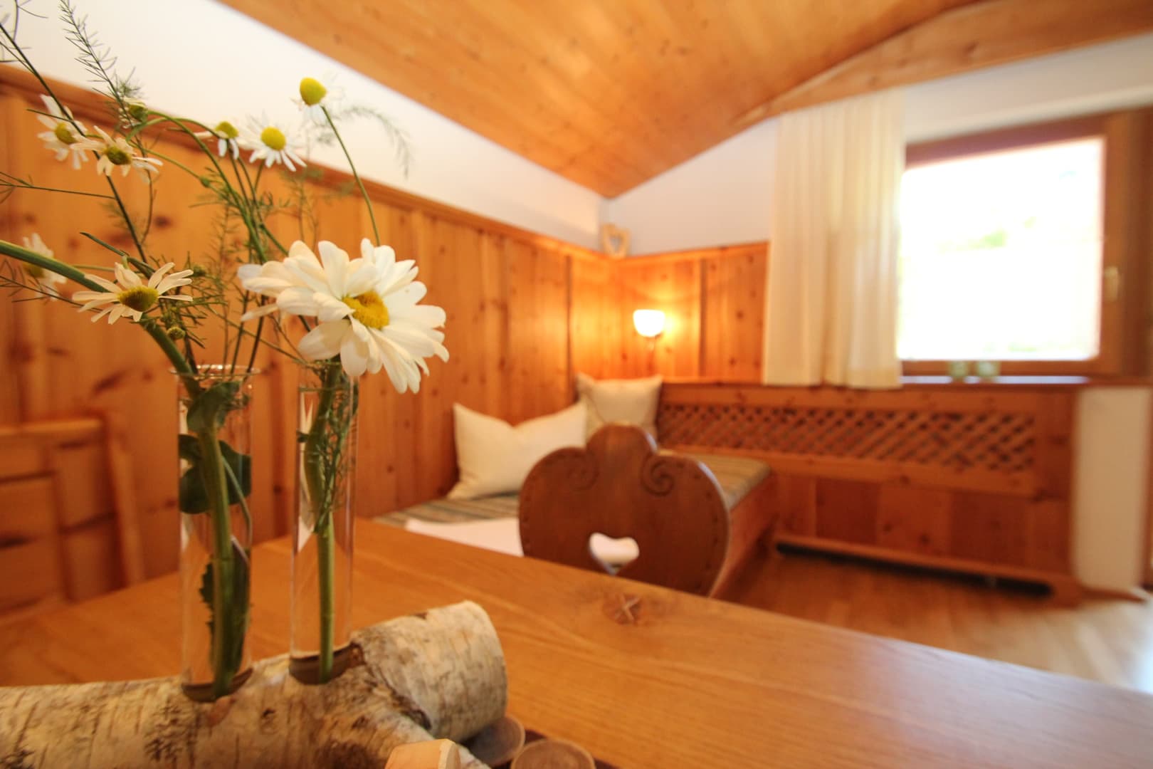 Genießer Komfort:Schlafzimmer in hochwertigem Zirbenvollholz aus dem eigenen Wald.