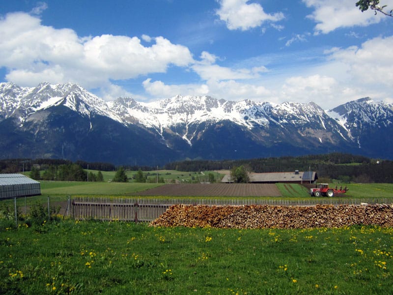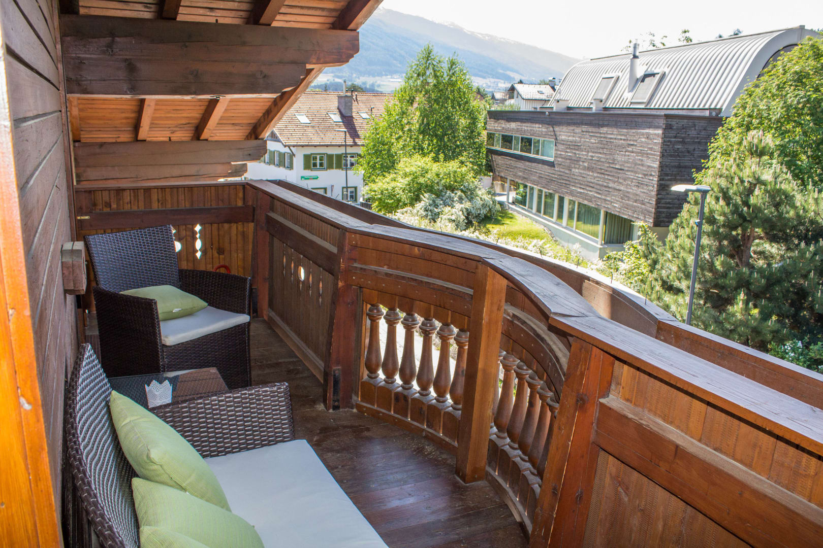 Großräumige Ferienwohnung für 2 bis 4 Personen mit Balkon und Ausblick auf die umliegende Berglandschaft (Serles, Nockspitz, Patscherkofel)