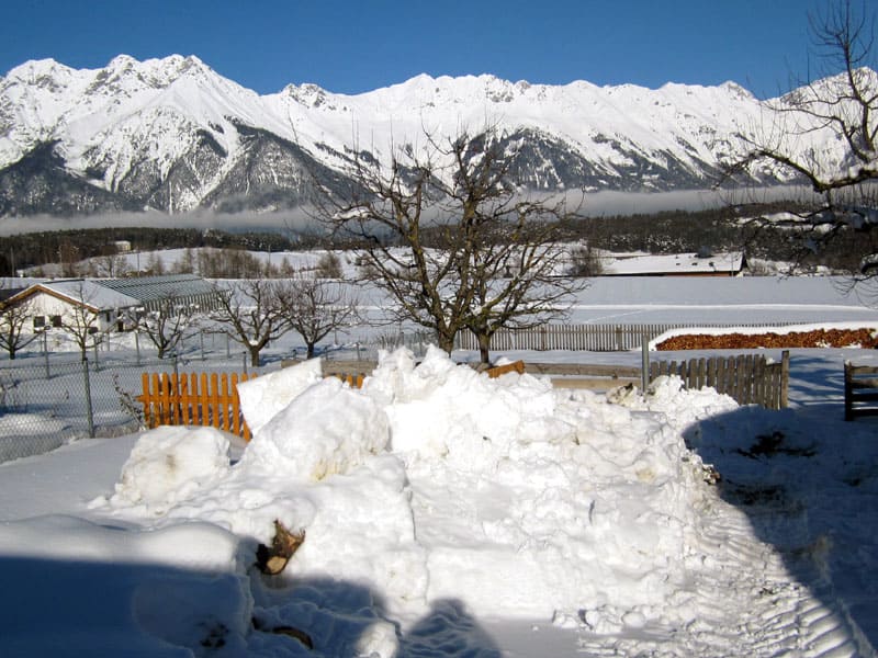 Direkt vor unserer Haustüre hält der gratis Schibus, welcher auch in das nahegelegene Schigebiet Axamer Lizum fährt.