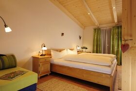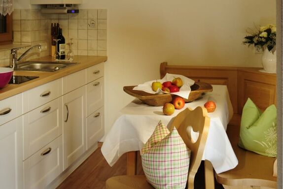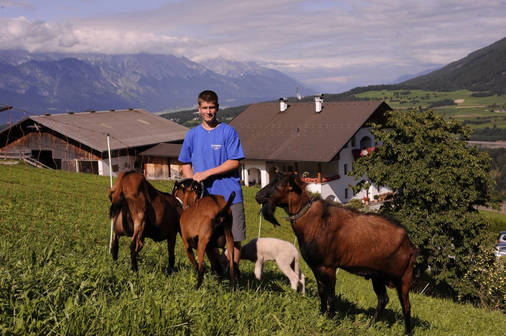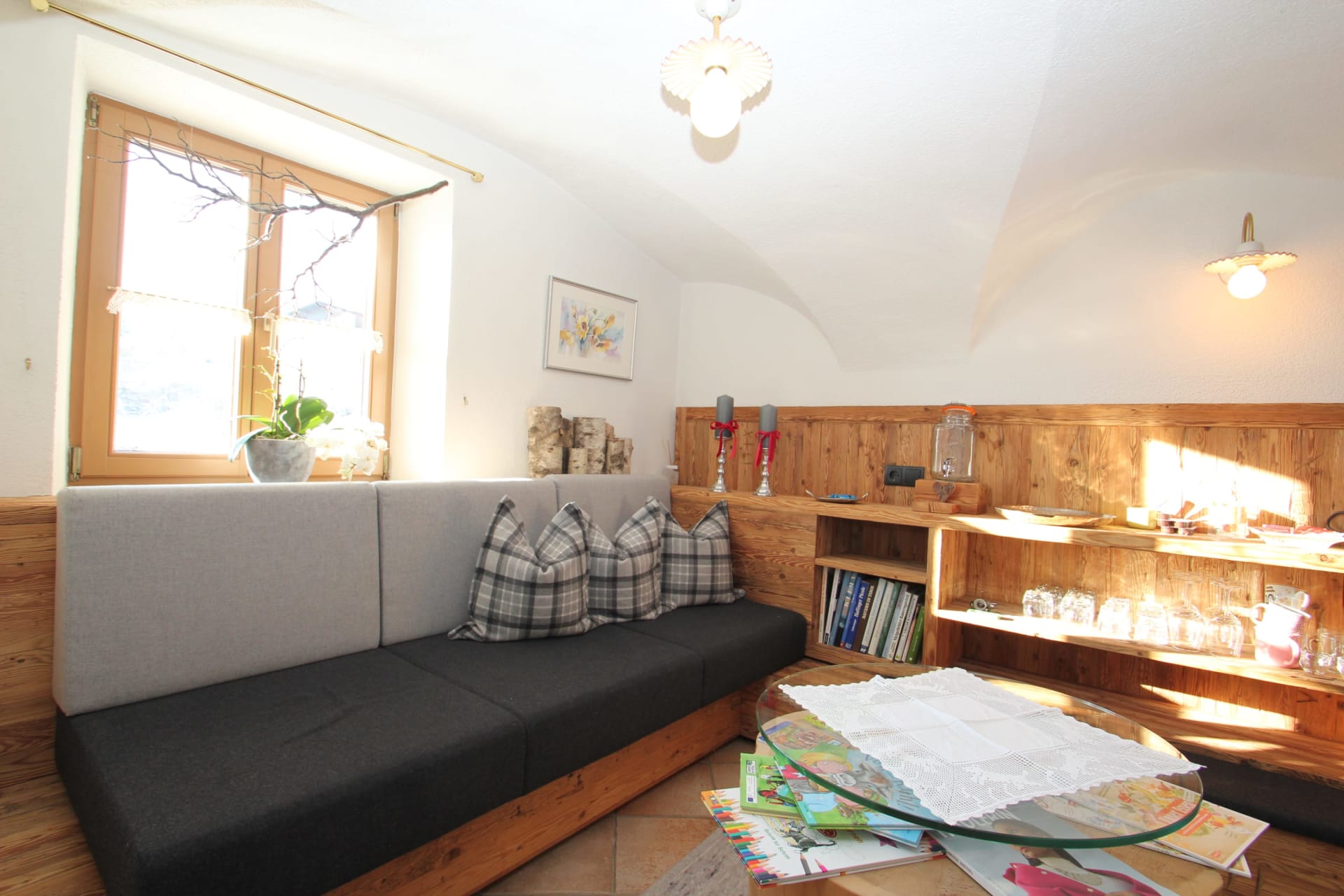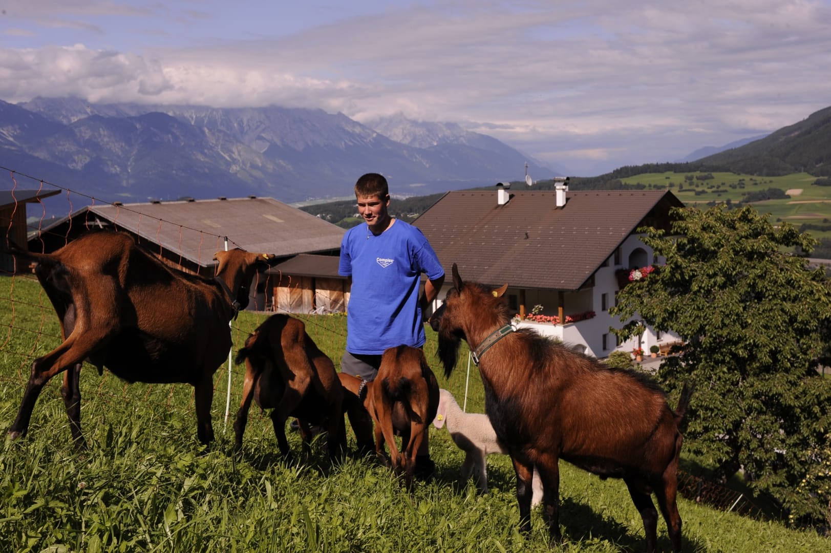 Die familienfreundliche Ferienwohnung bietet Platz für max. 5 Personen. Sie ist liebevoll eingerichtet und die Möbel sind aus Vollholz. Sie besitzt eine große Sonnenterrasse mit Blick zum Kinderspielplatz und einen nach Osten gerichteten Balkon mit Blick auf die umliegenden Berge und nach Innsbruck.