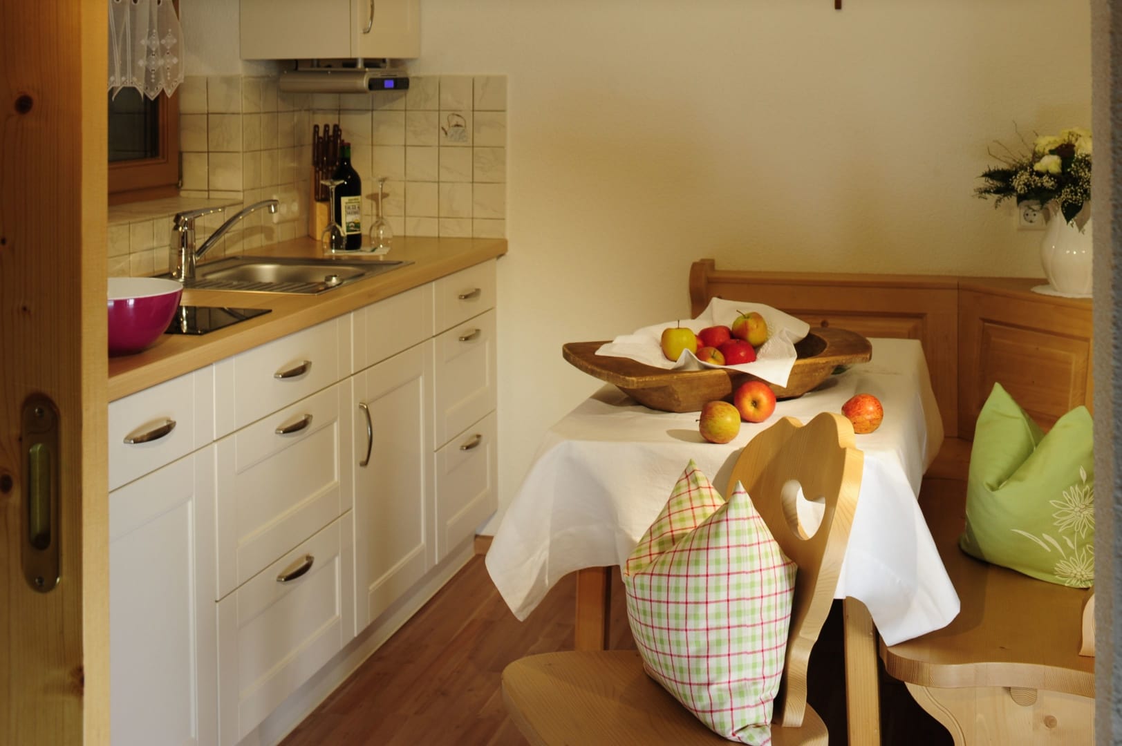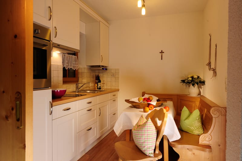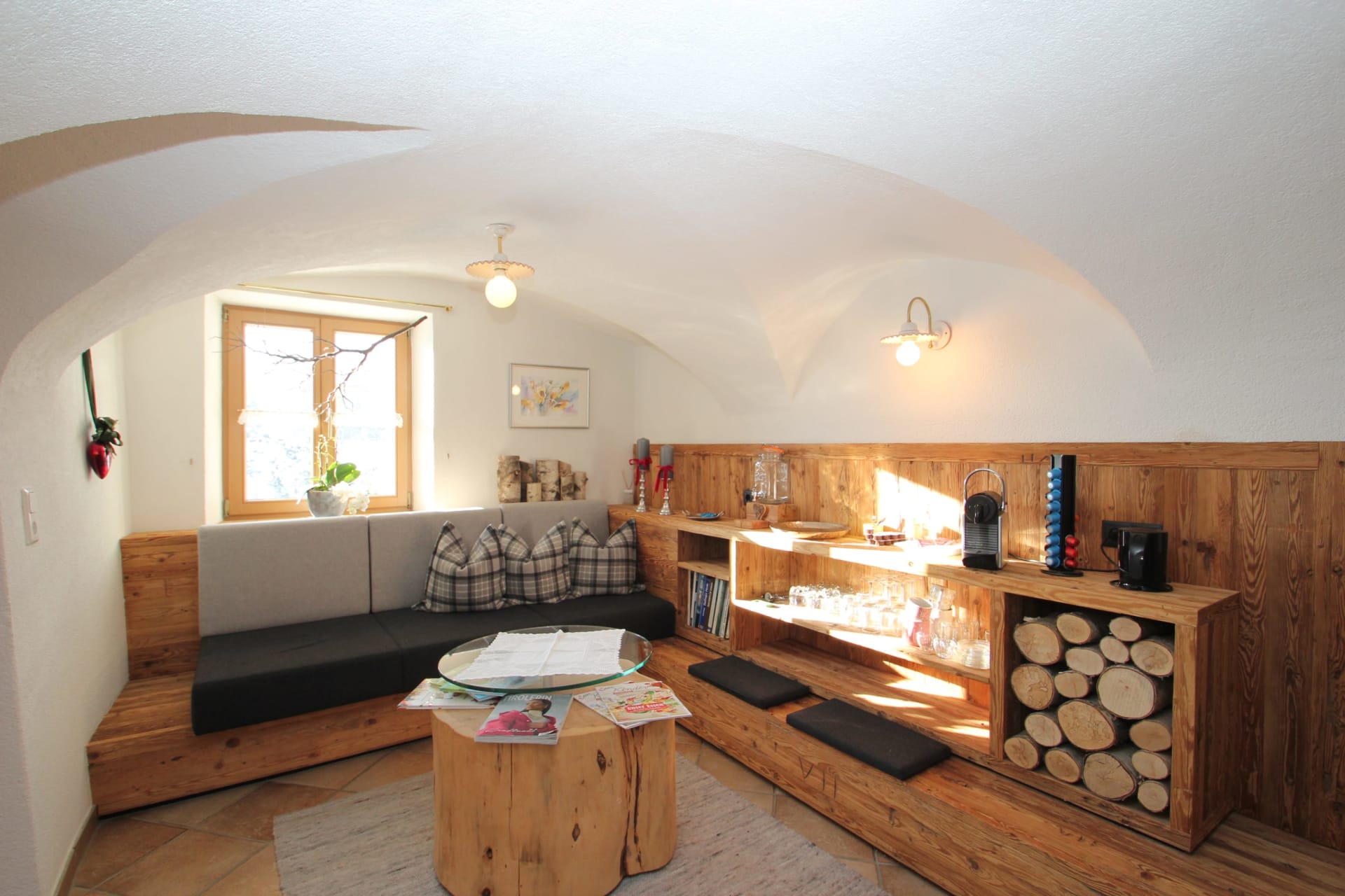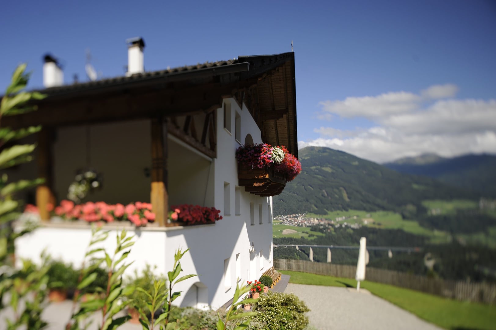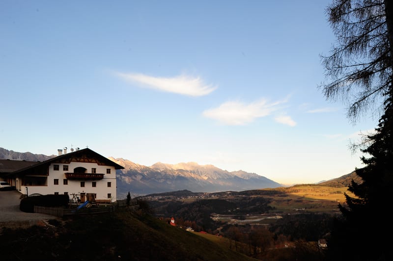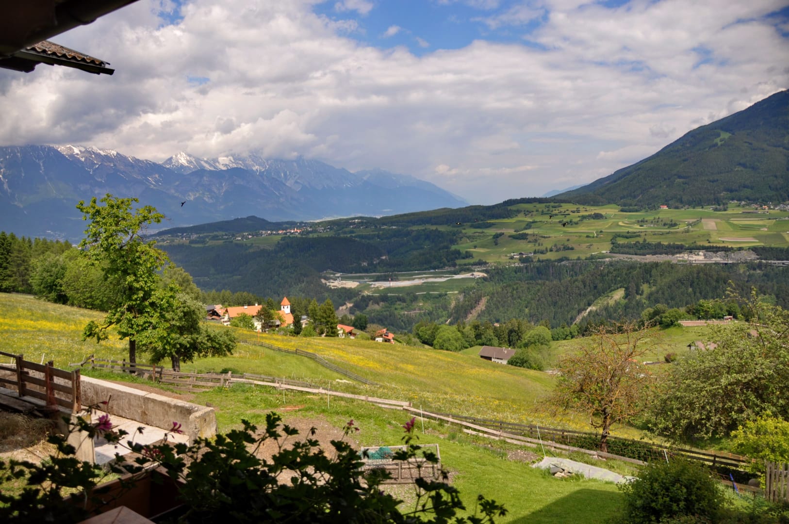 Der nach Osten gerichtete Balkon, auf dem die Sonne so richtig angebetet werden kann, bietet einen Blick auf die umliegenden Berge und nach Innsbruck,