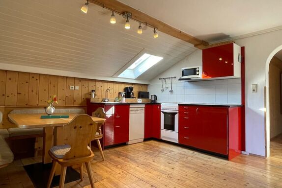 Die Ferienwohnung Nockspitz liegt im 2. Stock und bietet viel Platz zum Wohlfühlen. Zwei separate Schlafzimmer mit komfortablen Doppelbetten sowie ein ausziehbares Bodenbett für Kinder sorgen für erholsamen Schlaf. Herzstück der Wohnung ist die großzügige Wohnküche, dazu kommt ein Badezimmer sowie ein Balkon, von dem aus Sie die beeindruckende Tiroler Berglandschaft genießen können.