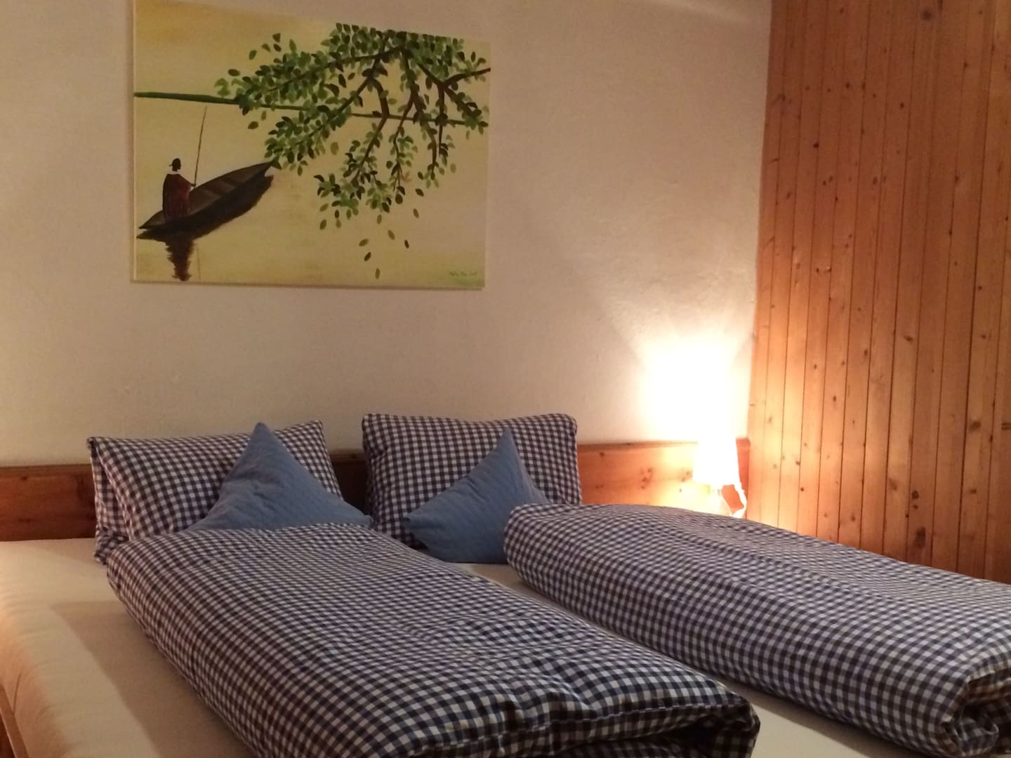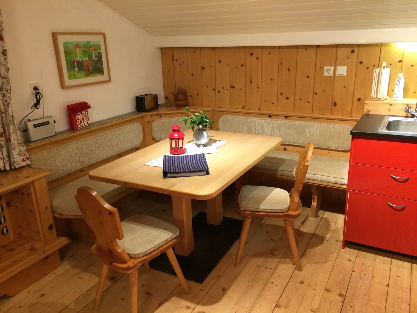 Unsere Ferienwohnung Nockspitz liegt im 2. Stock, hat zwei Schlafzimmer, eine große Wohnküche (mit Geschirrspüler), Badezimmer mit Dusche, Balkon mit schöner Aussicht.