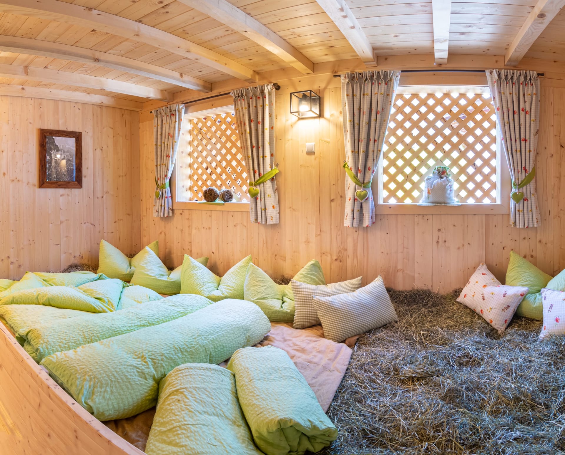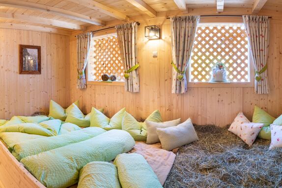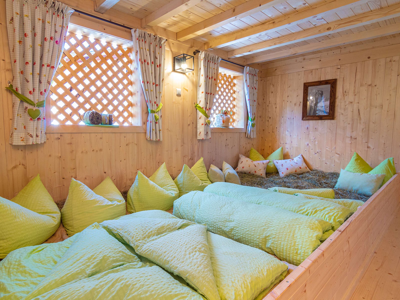 Das frische Heu von unserer Hofeigenen Alm sorgt für einen unvergesslichen Bauernhofmoment. Das Bad mit Dusche und WC befindet sich im Haupthaus nebenan.