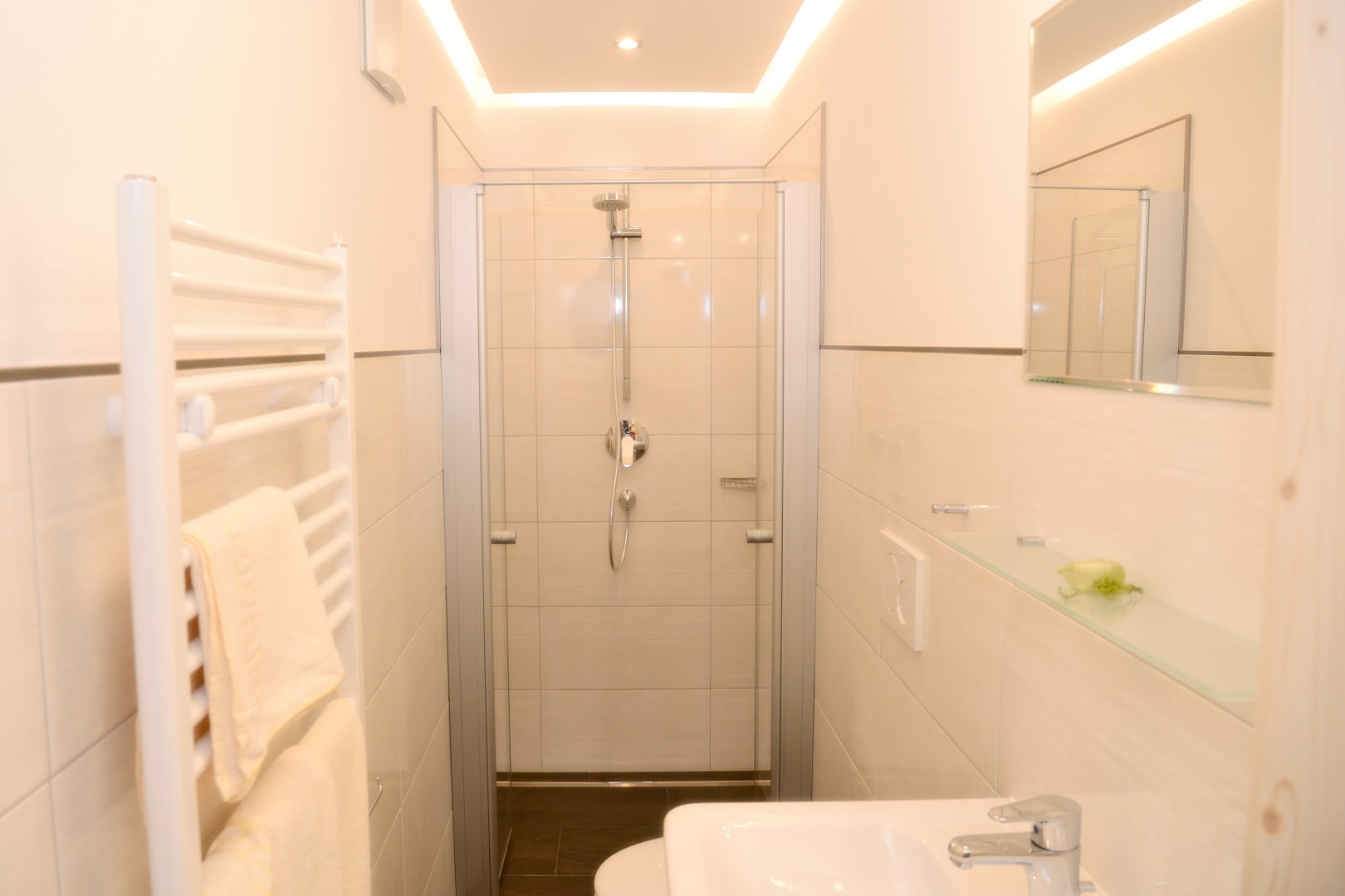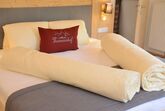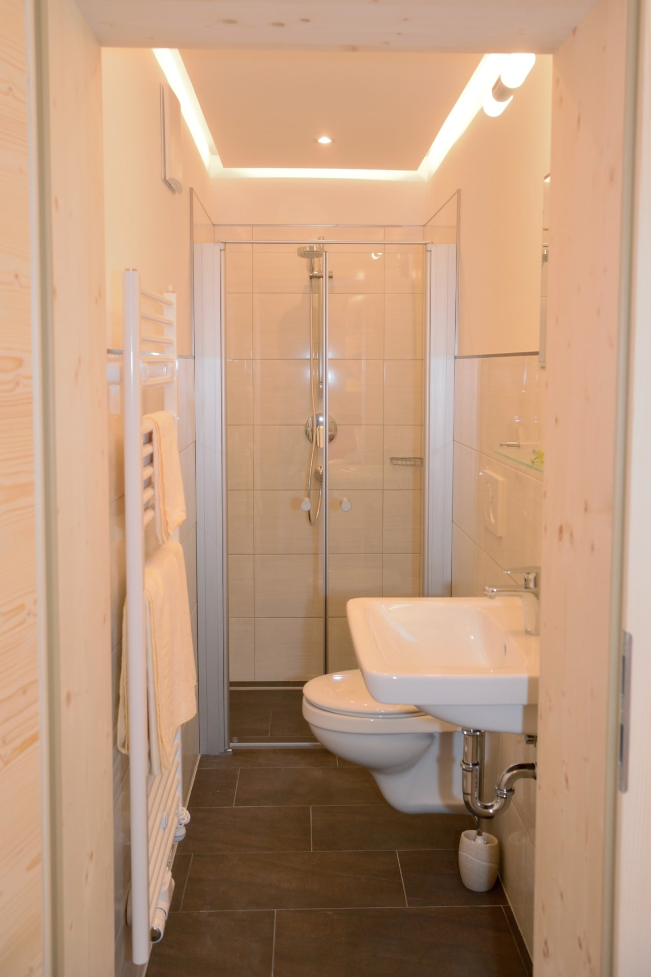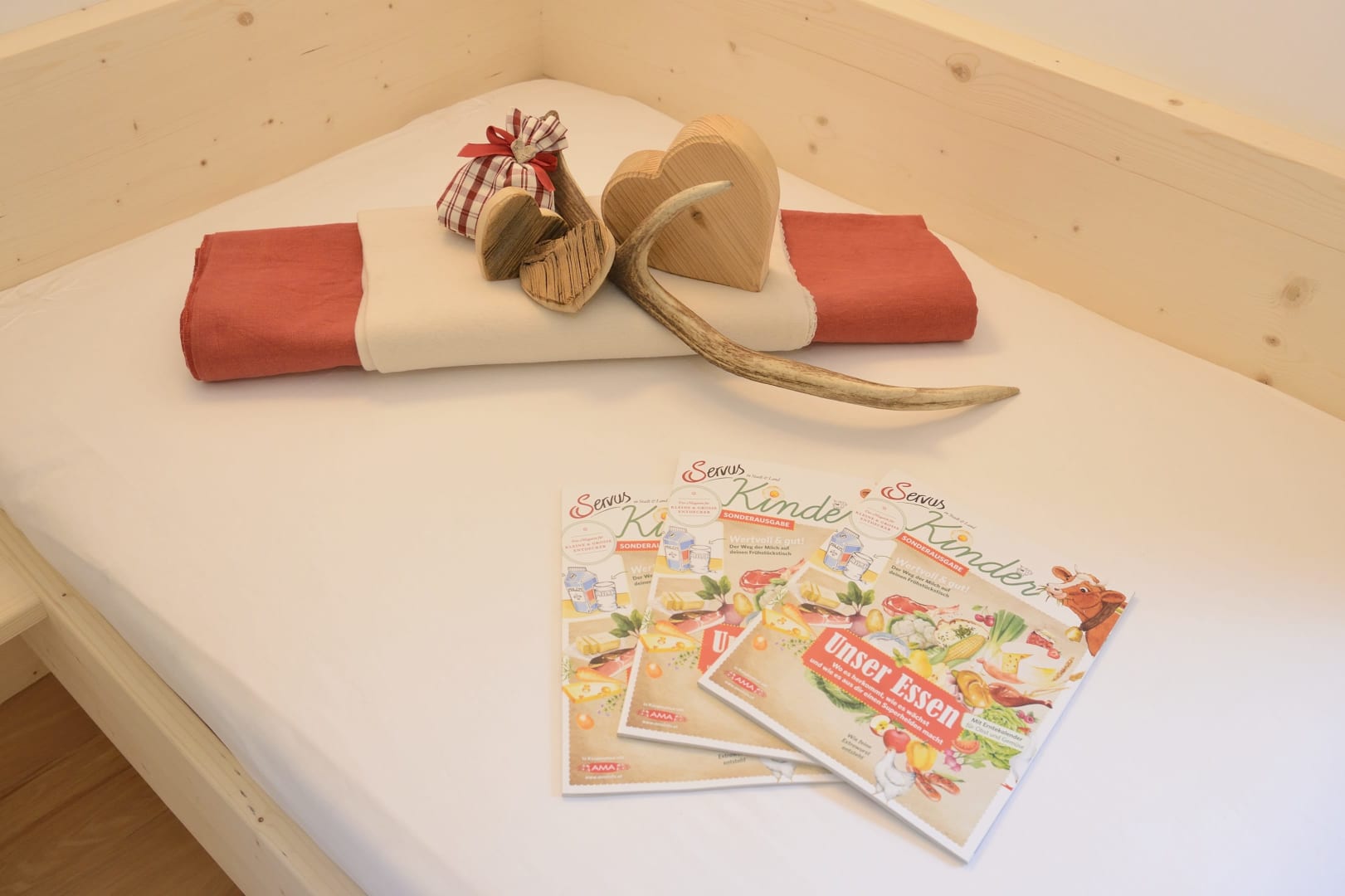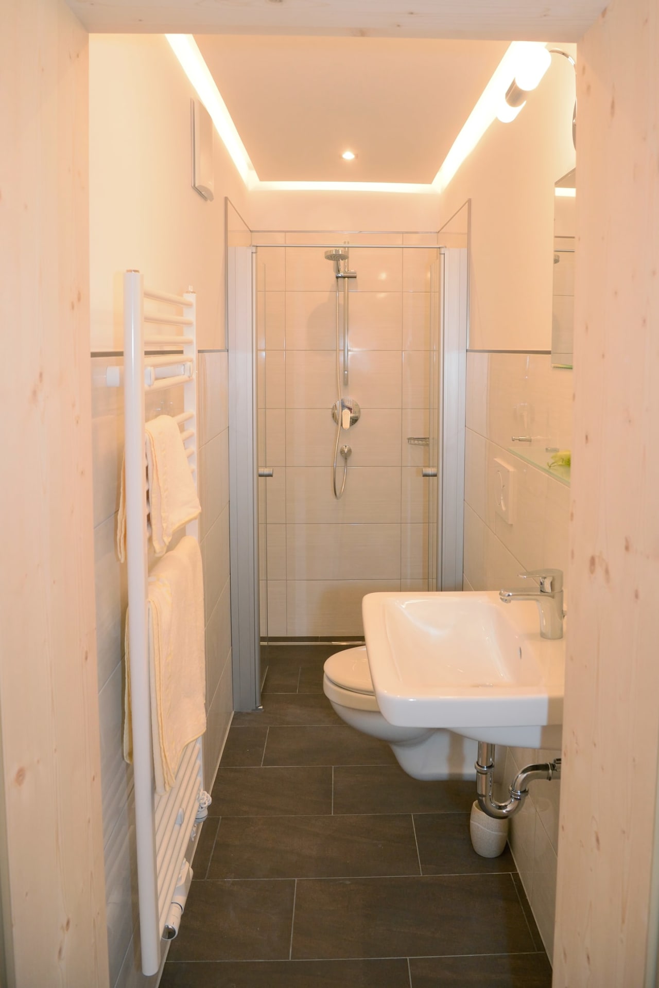 Das Zimmer Ramsgruben ist in Vollholz Fichte eingerichtet mit einem eigenen tollen Badezimmer. Durch die unterschiedliche Lichtgestaltung kann ich mir gemütliche oder helle Stimmung schaffen. Das Zimmer hat ein Zusatzbett für Kinder und einen Mini Kühlschrank.