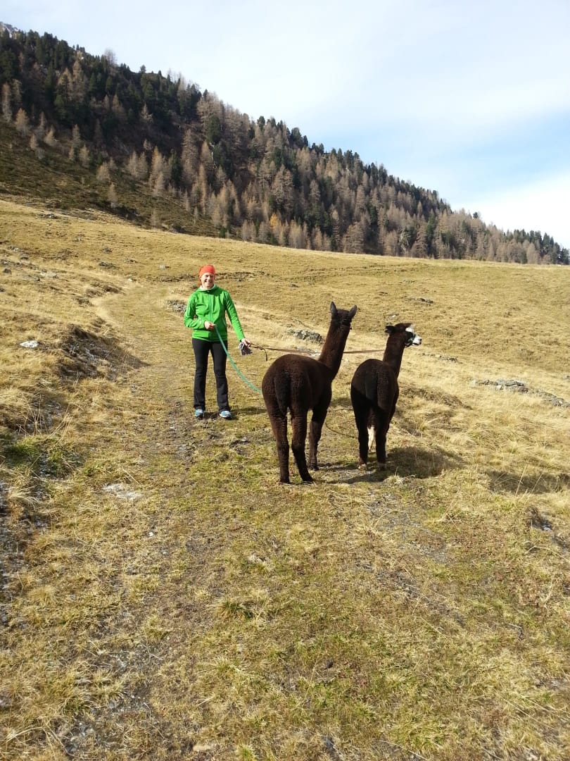 Die Alpakageschwister Belmiro und Nari sowie unser Lama Valentina gehen gerne mit Ihnen spazieren, auf dem Weg werden Ihnen viele unserer einheimischen Tiere begegnen – von Fröschen bis zu Kühen, wer genau schaut könnte sogar das ein oder andere Murmeltier erspähen.