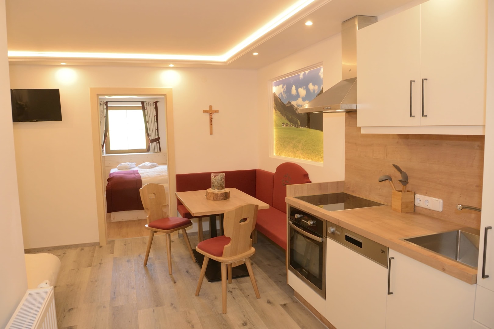 Unsere Ferienwohnungen sind mit einer modernen Küche und Bad ausgestattet und geräumigen sowie gemütlichen Schlafzimmern. Nach einem Tag in der Natur mit vielen tollen Eindrücken ist guter Schlaf garantiert.