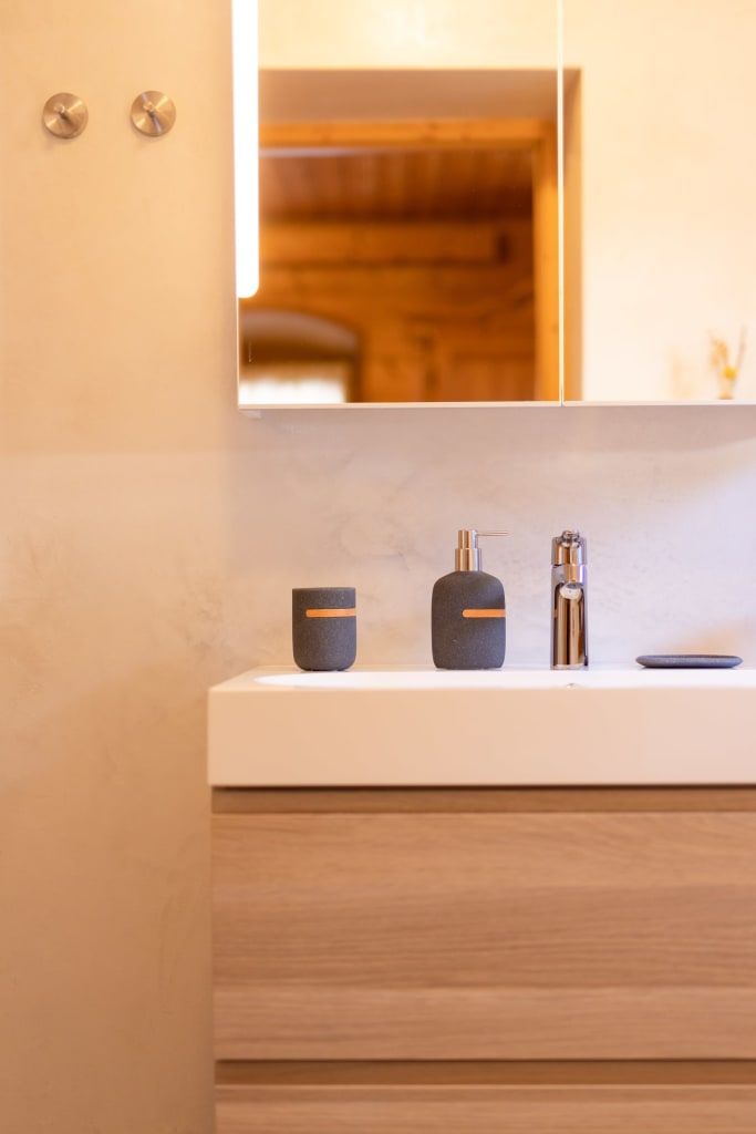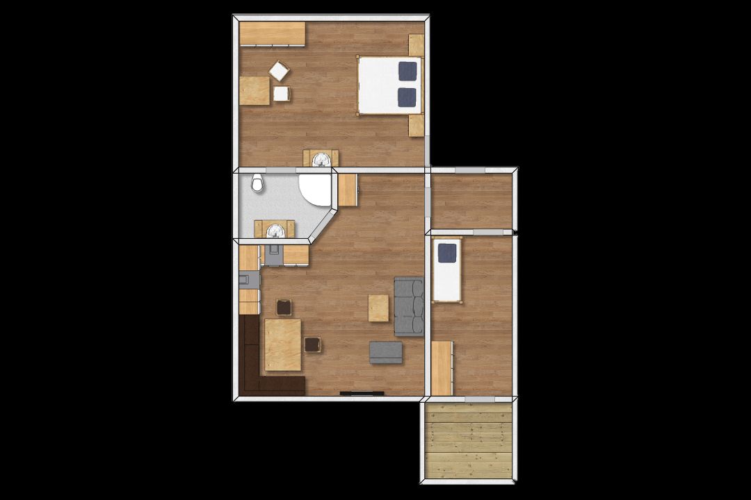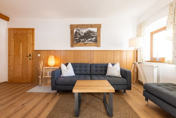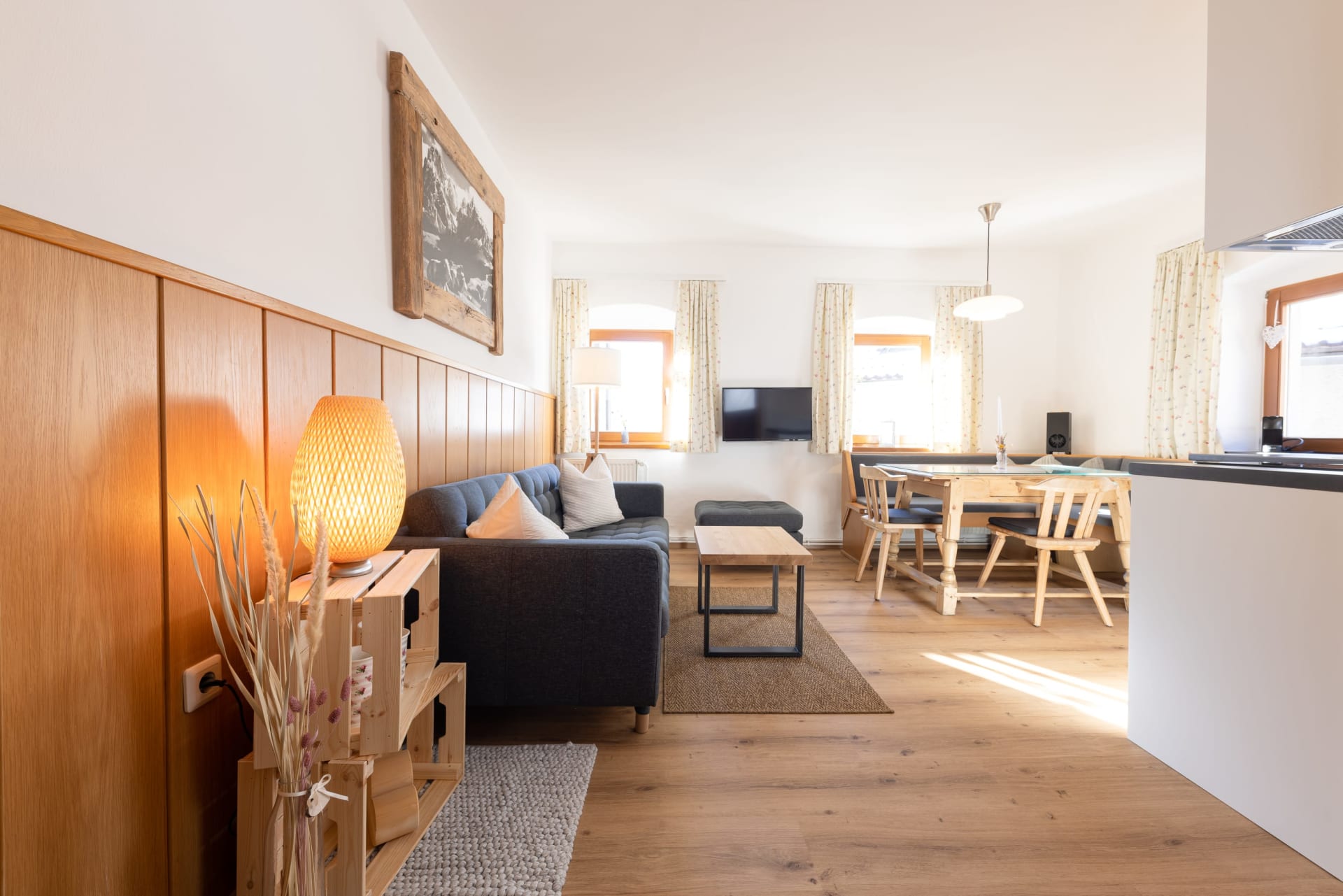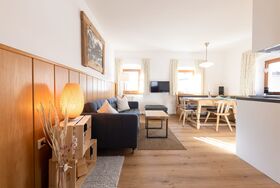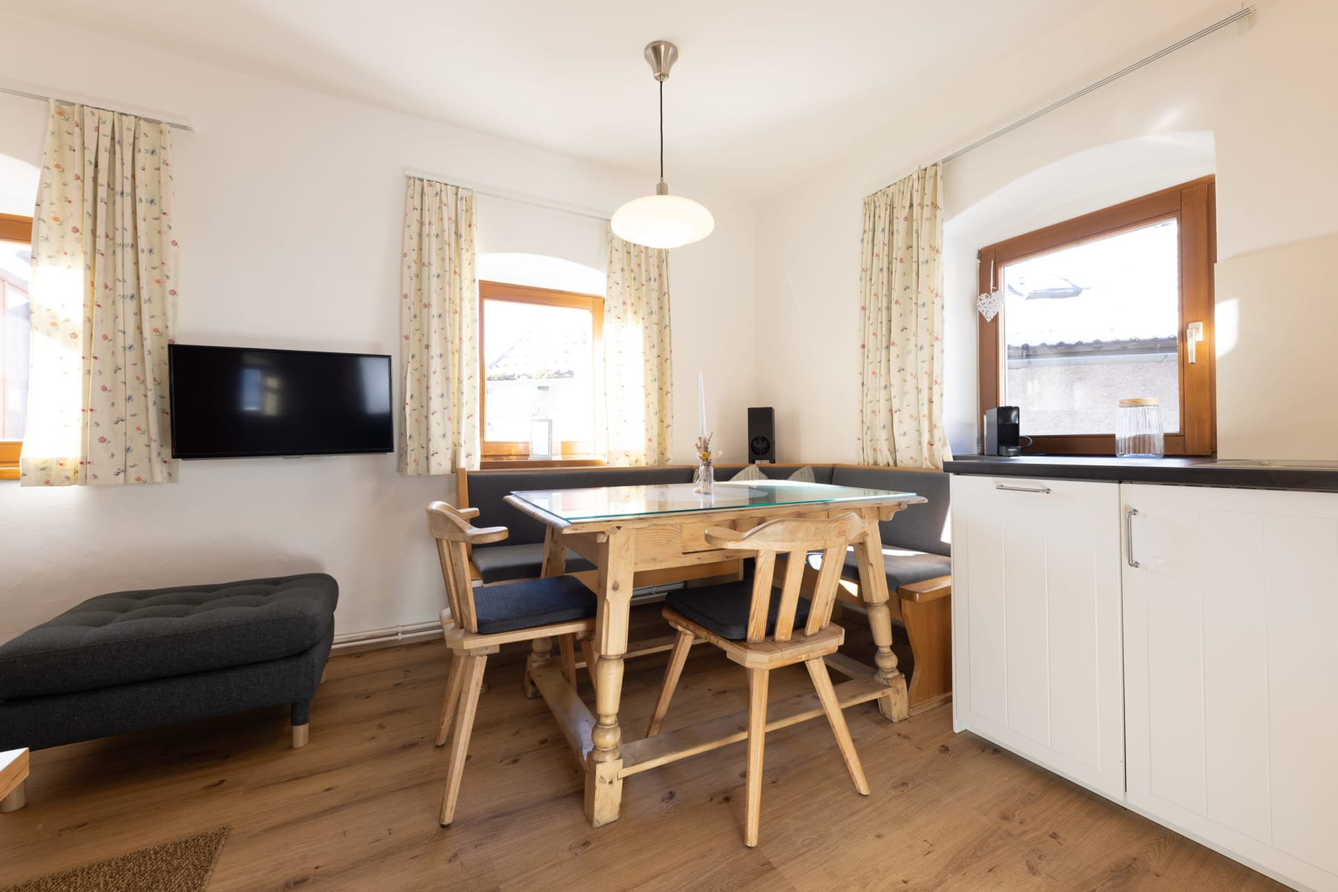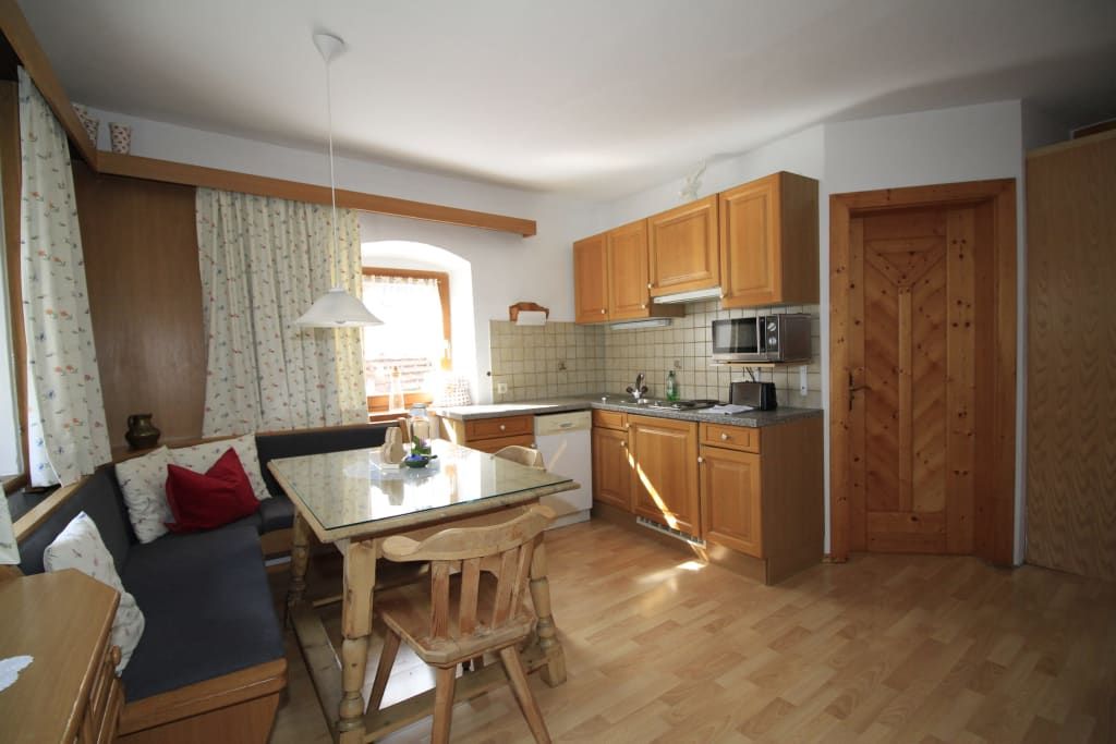 Großes Schlafzimmer mit Doppelbett; kleineres Schlafzimmer mit Stockbett; Wohnküche mit Esstisch und gemütlicher Eckbank sowie einer Couch; Küchenzeile mit kompletter Küchenausstattung (Geschirrspüler, Mikrowelle, Kühlschrank, Wasserkocher, Nespresso- und Filter-Kaffemaschine, 2-Induktions-Kochfelder, komplette Geschirr- und Kochausstattung, etc.); großer nach Süden ausgerichtete Lodgia mit atemberaubenden Ausblick auf die Stubaier Bergwelt; kostenloses WLAN, SAT-TV; Bad mit Dusche & WC;