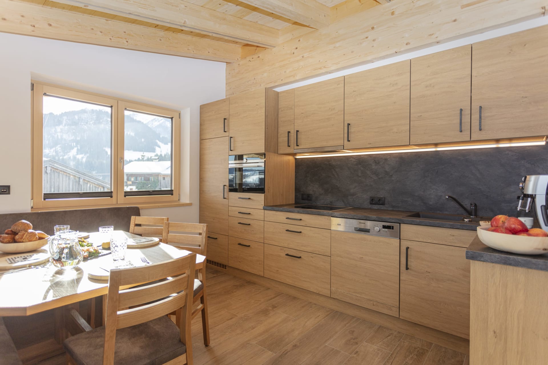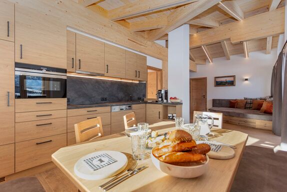 Mit viel Charm und Liebe zum Detail haben wir diese Wohnung mit unbehandeltem Holz und Naturmaterialen eingerichtet. Die großzügigen Räume bieten Platz für die ganze Familie oder einem Urlaub mit Freunden. Zwei Zirbenschlafzimmer bieten einen ruhigen und erholsamen Schlaf. Genießen Sie bei einem gemütlichen Frühstück auf dem Balkon die einzigartige Aussicht auf die umliegende Bergwelt. Vollausgestattete Küche mit Geschirrspüler, Kaffeevollautomat, Soderstream, uvm.