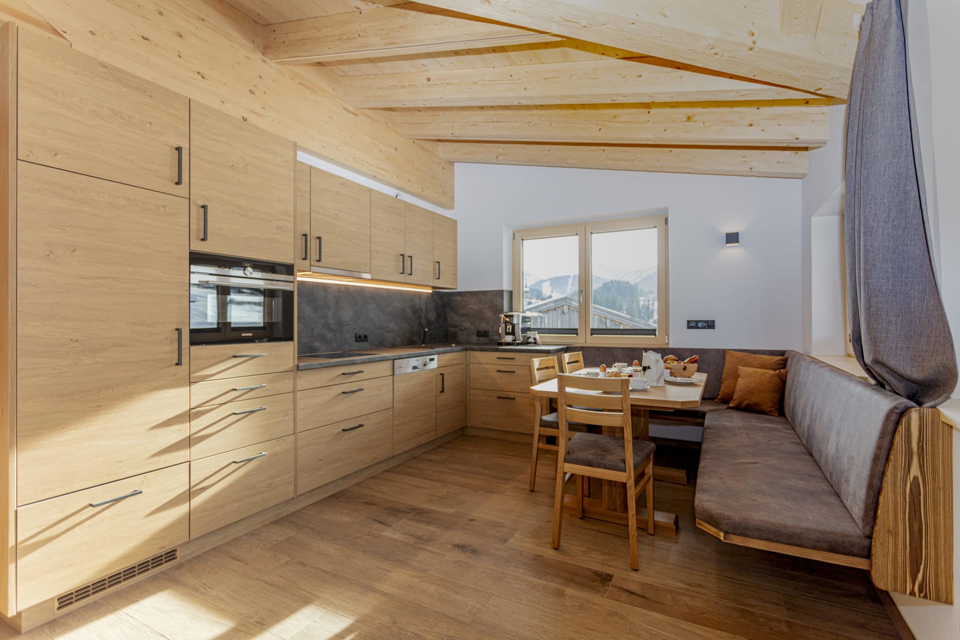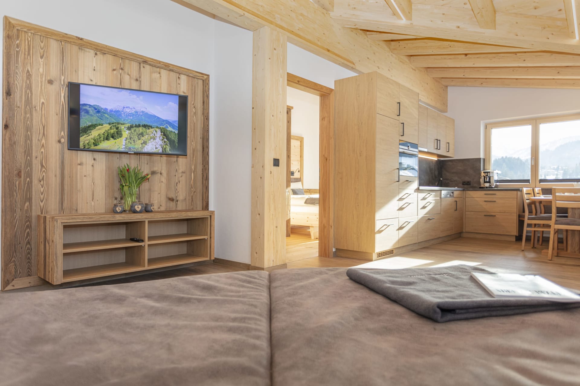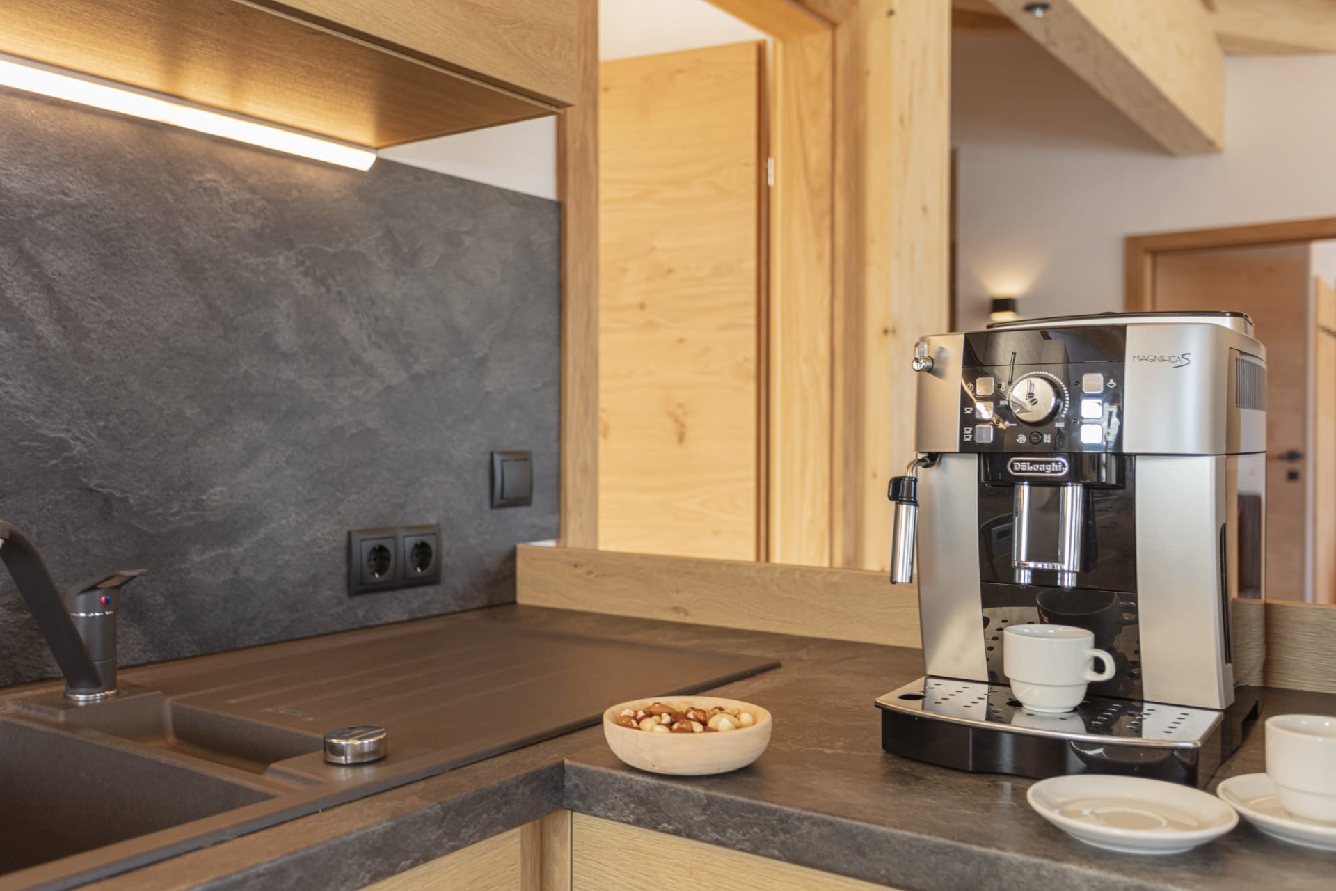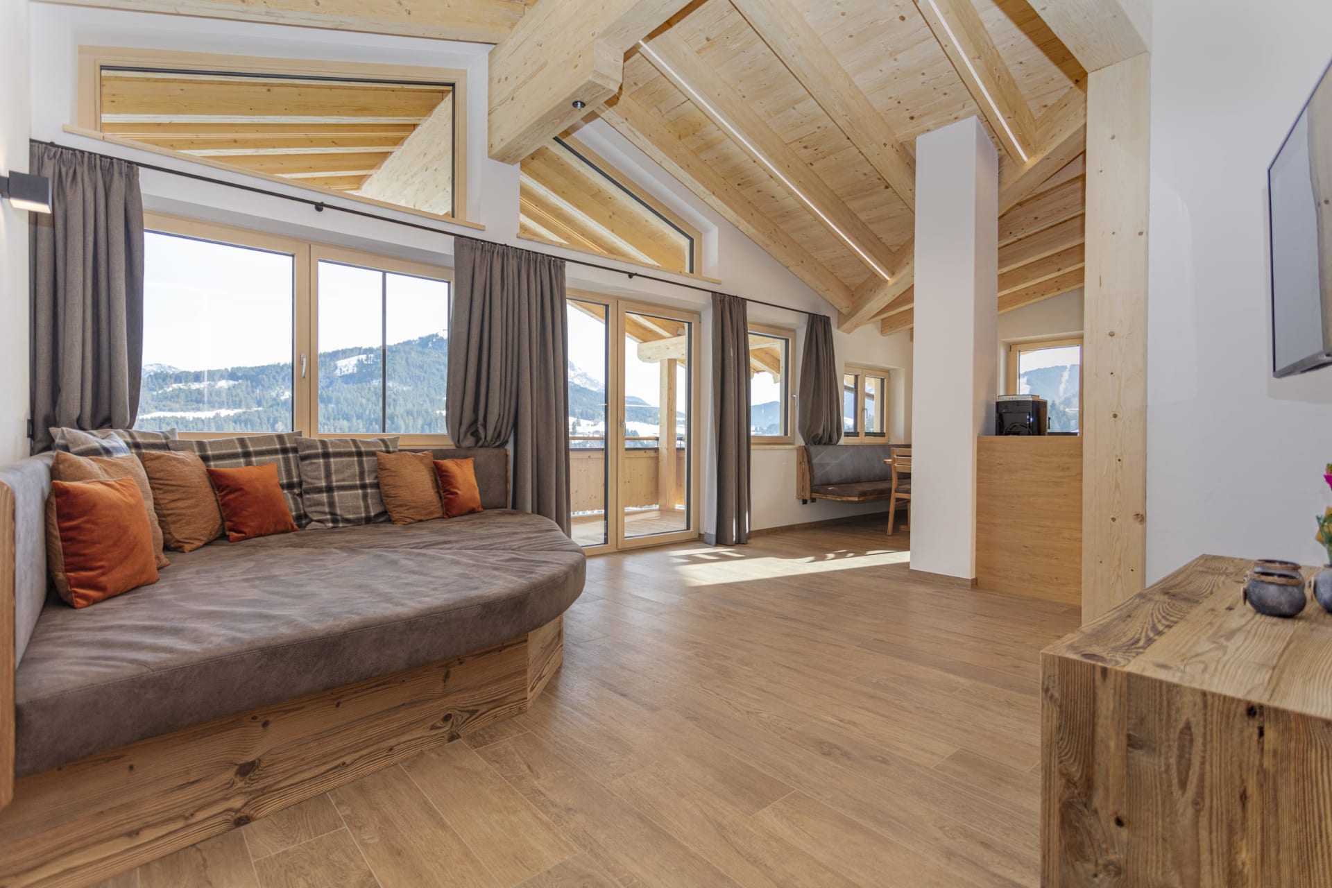 Die Wohnung Karstein ist das Spiegelbild zur Wohnung Buchenstein. Beim Einrichten wurde sehr viel Bedacht aufs Detail gelegt, und Naturmaterialien wie Holz, Stein und vieles mehr verarbeitet. Mit zwei Bäder, zwei ZIRBEN-Schlafzimmer mit TV und zwei Balkone lässt sich der ersehnte Urlaub so richtig genießen. Vollausgestattete Küche mit Geschirrspüler, Kaffeevollautomat, uvm.