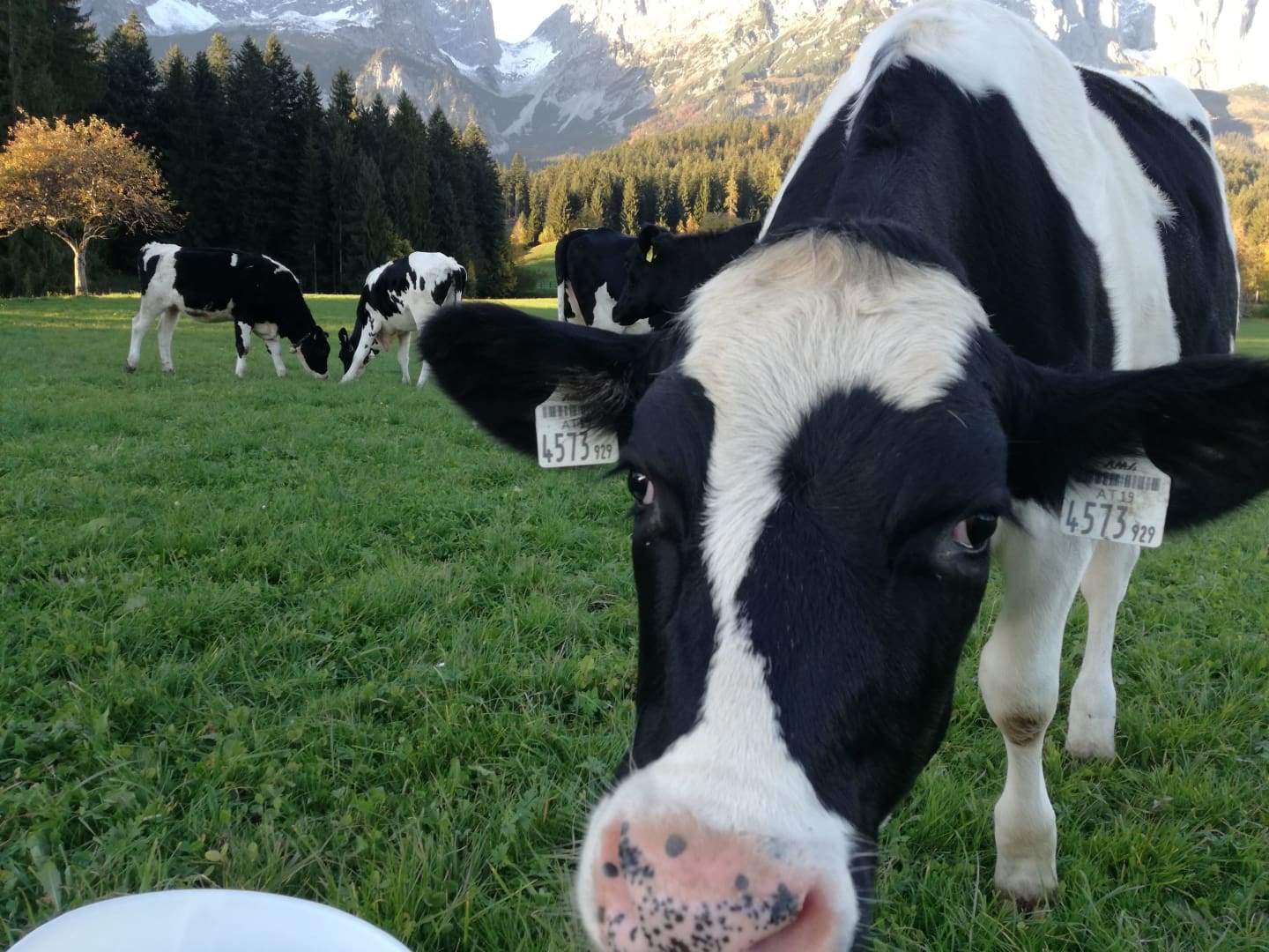 Ich befinde mich im 2. Stock und von meinem ostseitigen Balkon aus habe ich den wunderbaren Blick auf die Wiesen, das Dorf und die Berge. Meine Bäuerin nennt mich immer liebevoll - klein und fein.