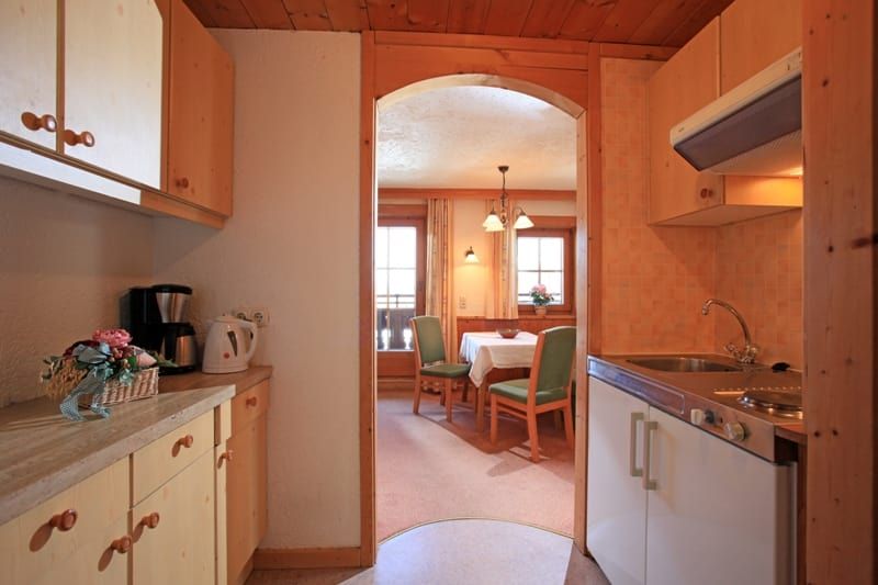 Ich befinde mich im 2. Stock und bin ein kleines Haus im Haus. Meine Schlafzimmermöbel sind richtig schön und alt. Von dem Bett aus hat man einen wunderbaren Blick auf den Wilden Kaiser Der grosse Balkon mit der grandiosen Aussicht eignet sich an warmen Sommertagen auch wunderbar zum Frühstücken.