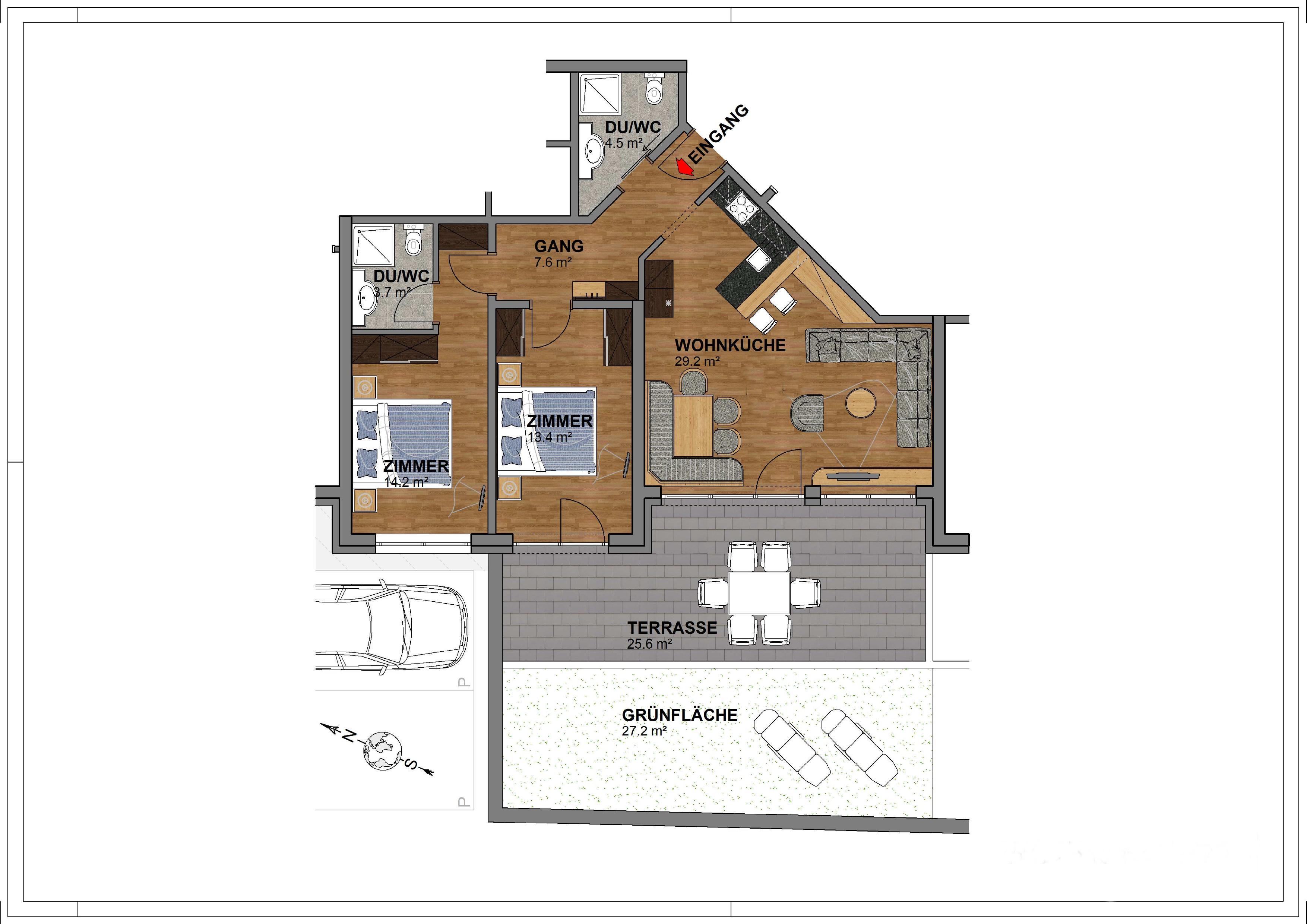 Top 11 mit ca. 72 m²: 1 voll ausgestattete Wohnküche mit Cerankochfeld, Backrohr, Mikrowelle, Geschirrspül- und Kaffeemaschine, gemütlicher Essecke, Kabel TV, großer Wohnbereich mit Sofalandschaft; 2 Schlafzimmer mit Doppelbett und großen Kleiderschrank, 2 Badezimmer mit Dusche und WC. Terrasse.