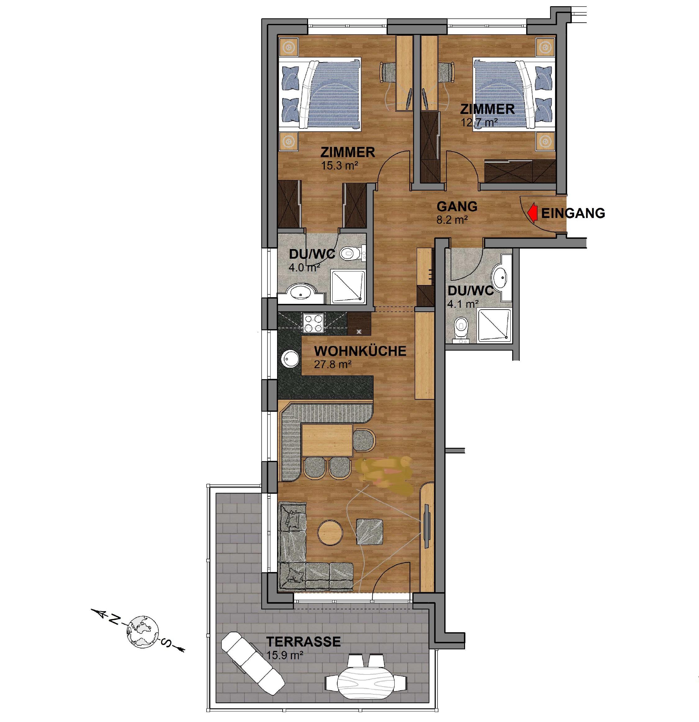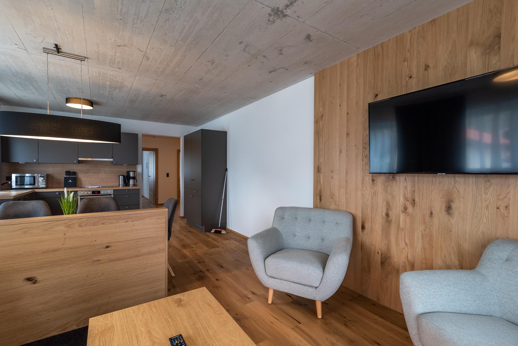 Top 3 mit ca. 72 m²: 1 voll ausgestattete Wohnküche mit Cerankochfeld, Backrohr, Mikrowelle, Geschirrspül- und Kaffeemaschine, gemütlicher Essecke, Kabel TV, großer Wohnbereich mit Sofalandschaft; 2 Schlafzimmer mit Doppelbett und großen Kleiderschrank, 2 Badezimmer mit Dusche und WC. Balkon