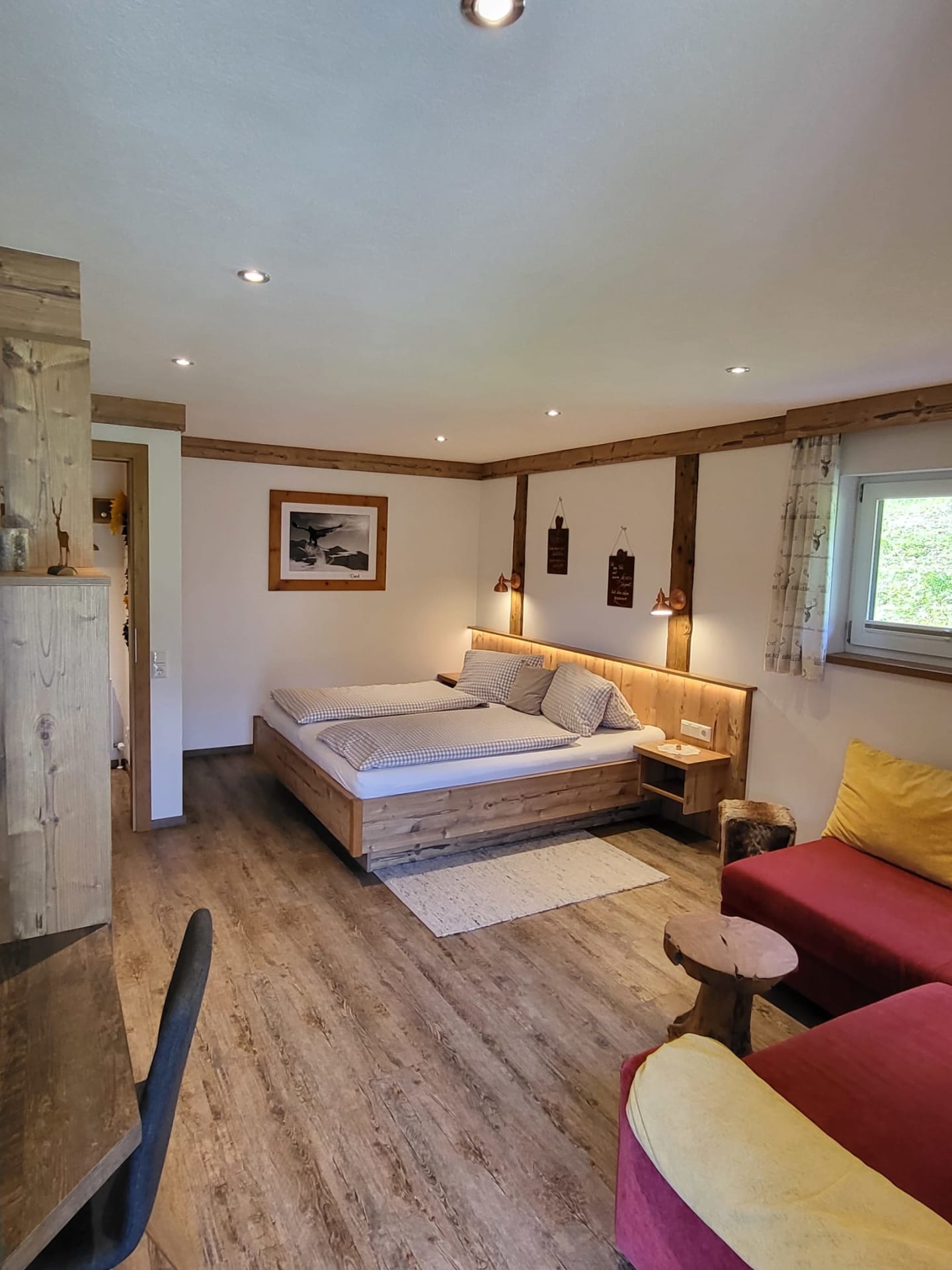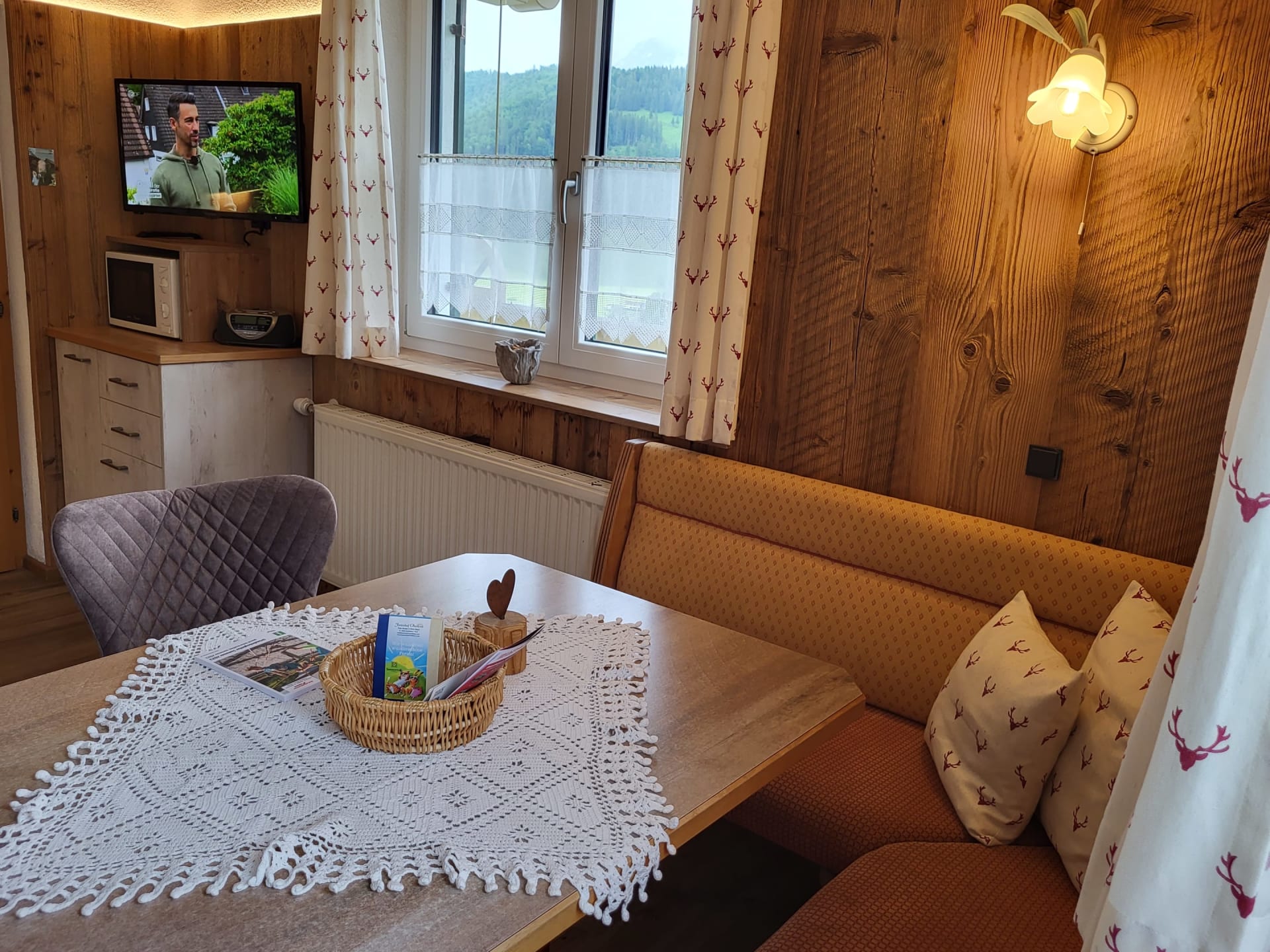 Lassen Sie sich verwöhnen von unserem Brötchenservice bzw. Frühstückskorb. Genießen Sie den herrlichen Bergpanoramablick und die Idylle am Berg. Es erwarten sie liebevoll eingerichtete Wohnungen im jugendlichen Landhausstil - erleben Sie die absolute Ruhe in unseren schönen, neuen Wohnungen blicken Sie vom Wintergarten aus auf Berge, Wald und Felder während Sie sich an den wohlig-warmen Kachelofen lehnen.