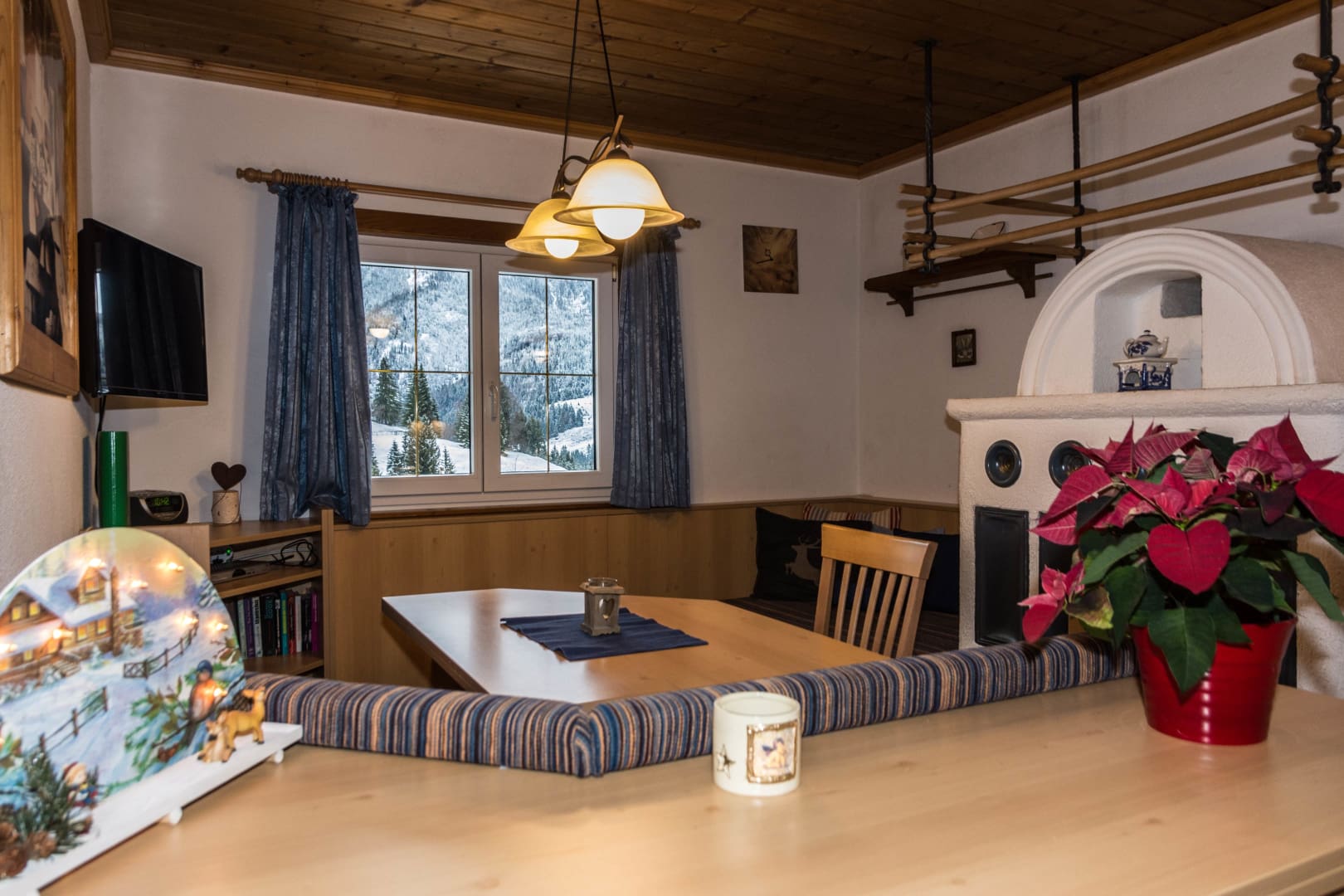 Sie ist ausgestattet mit einem schönen, offenen Wohnraum mit Wintergarten, einem heimeligen Kachelofen mit Ofenbank, neuem Küchenblock mit Backofen, Mikrowelle, Geschirrspüler, hochwertige Ausziehcouch* zum Fernsehen mit Flat-SAT-TV, im Wintergarten können Sie königlich am großen Holzesstisch Platz nehmen oder von der gemütlichen Fensterliege aus den Blick ins Tal genießen.