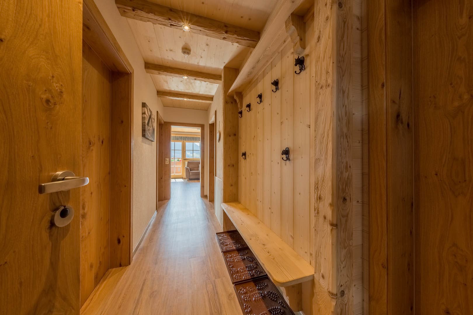 In unserem neuen Appartementhaus finden Sie diese herzlich eingerichtete, komplett ausgestattete Nichtraucher Ferienwohnung, barrierefrei, im komfortablen Tiroler Bauernhausstil mit einem großen Wohnraum, kompl. Kochecke, Sitzecke, Wohnecke, Sat-TV, Radio+CD-Player, kostenloses Wlan, 2 Bäder, ZH u. automatisch beheizter Kachelofen, 2 Schlafzimmer, Kinderbett und Kleinkinderausstattung, großer Südbalkon mit herrl. Panoramablick u.a.m.