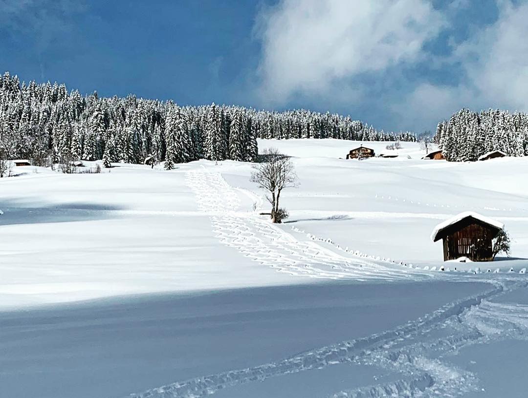 Hoch oben, über den Wolken, auf knapp 1.200 m und unterhalb des Markbachjochs liegt die Flecklhütte. Die Luft ist frisch und klar. Genauso die Sicht über die Kitzbüheler Alpen. Hier ist erstmal ein Auf- und Einatmen angesagt, in absoluter Alleinlage und fernab des Trubels kann man unberührte Winterlandschaft genießen: ob beim Winterspaziergang dem Waldweg entlang oder hinauf aufs Joch. Ob mit den Schneeschuhen, den Tourenskiern oder doch lieber mit der Rodel. Bewegung an der frischen Winterluft tut allen gut.