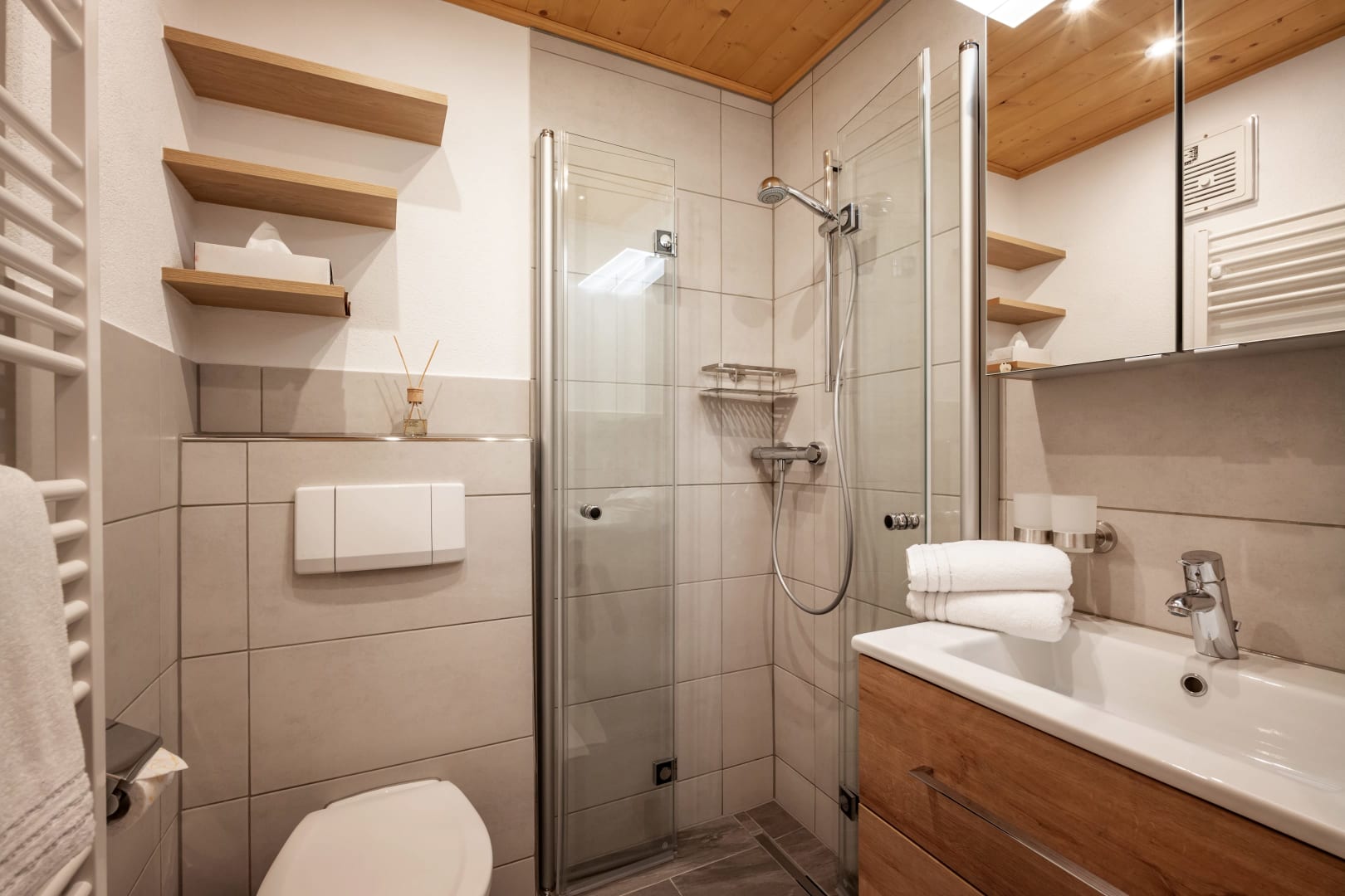 Das liebevoll ausgestattete Appartement bietet zwei Schlafzimmer, zwei Duschen und zwei WCs – ideal für Familien oder Freunde.