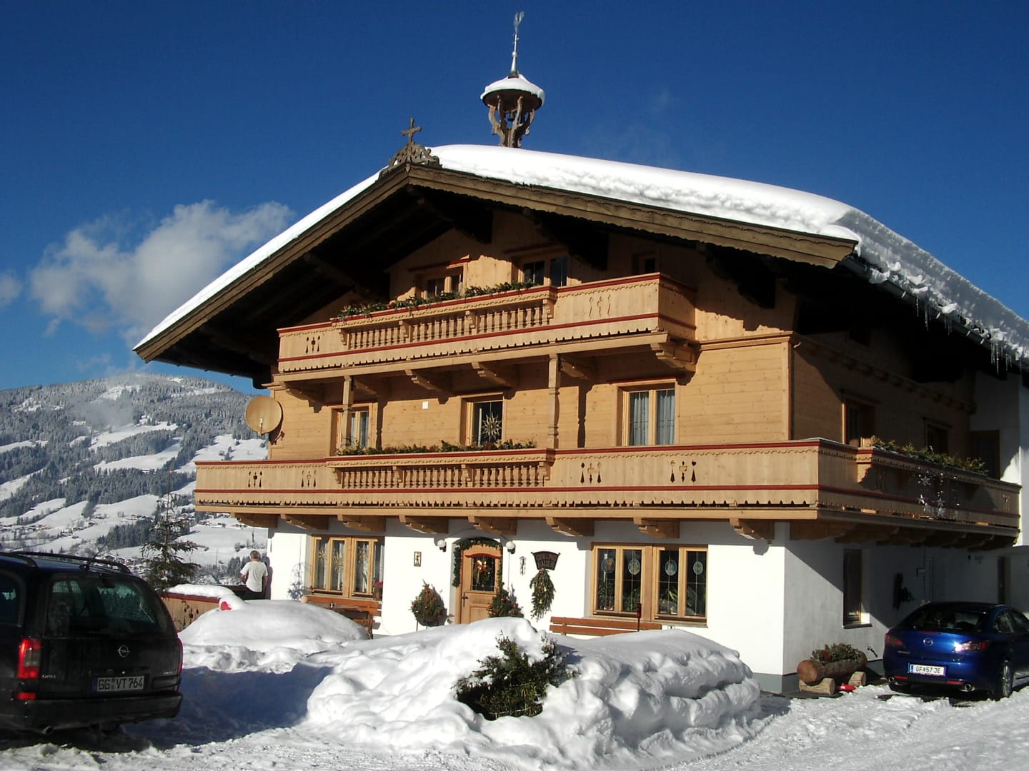 Nur 800 m vom Haus entfernt liegt der Einstieg in die Skischaukel Kitzbühel über die Maierlbahn – samt Skiverleih, Skischule, Skihütte und Skiservice. Ob Skifahren, Snowboarden oder eine romantische Winterwanderung: Ein geräumter Winterwanderweg führt direkt an unserem Hof vorbei!