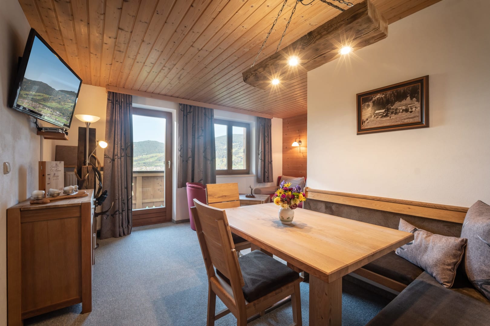 Der durchgehende Balkon verbindet drinnen und draußen – perfekt, um die frische Bergluft zu genießen.