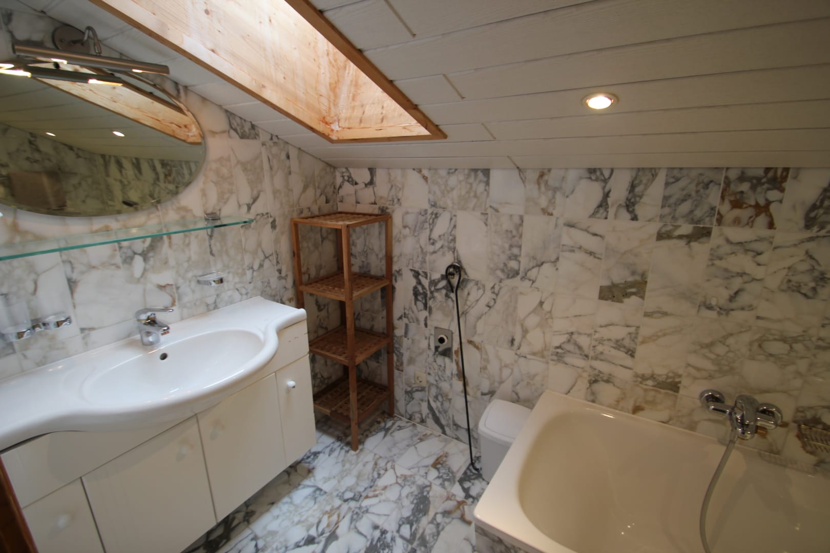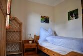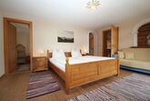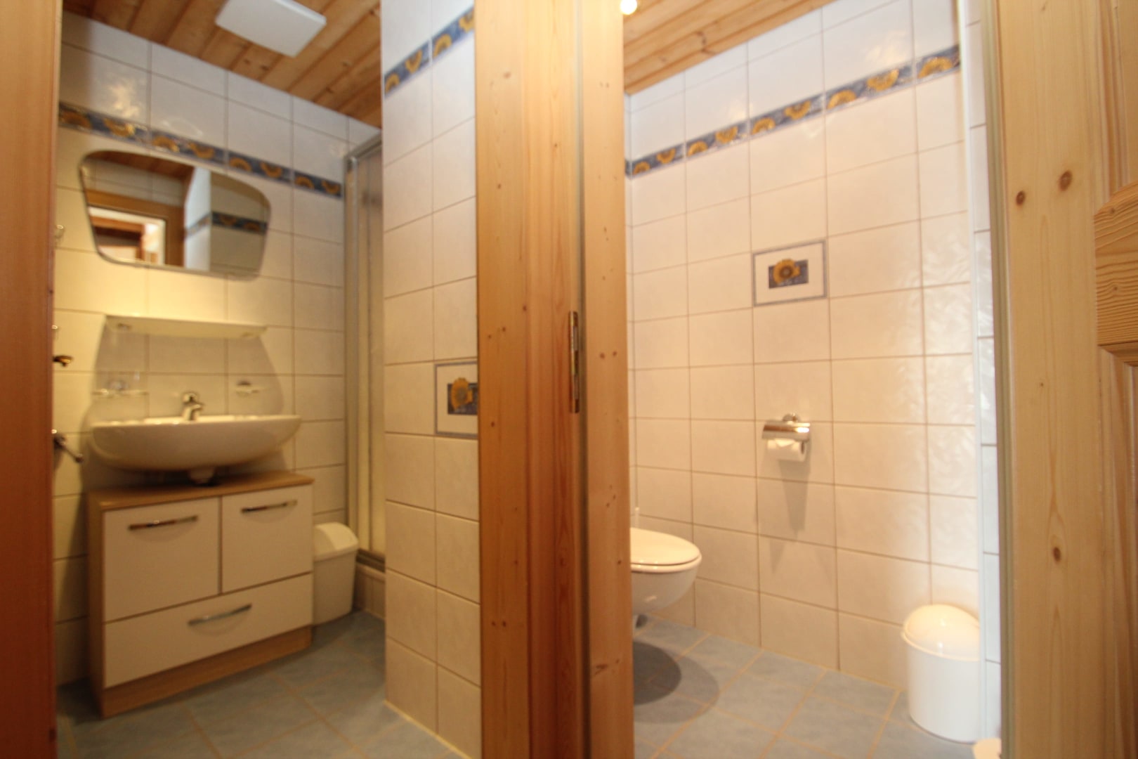 bestehend aus Küche ( Koch- und Essgeschirr, Besteck, Kühlschrank/Gefrierfach, E-Herd/vier Kochplatten/Backrohr, Wasserkocher, Toaster, Mixstab, einfache Kaffeemaschine) mit Essecke, geräumigen Doppelbettzimmer mit ausziehbarer Couch, SAT-TV, Radiowecker, kleinem Kinderzimmer mit einem normal großen Bett sowie Dusche und WC (getrennt).