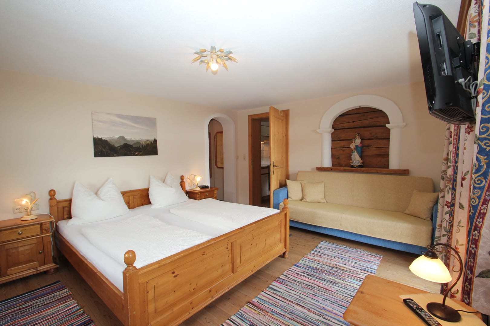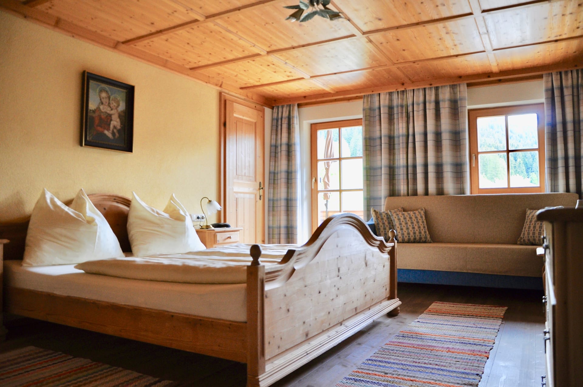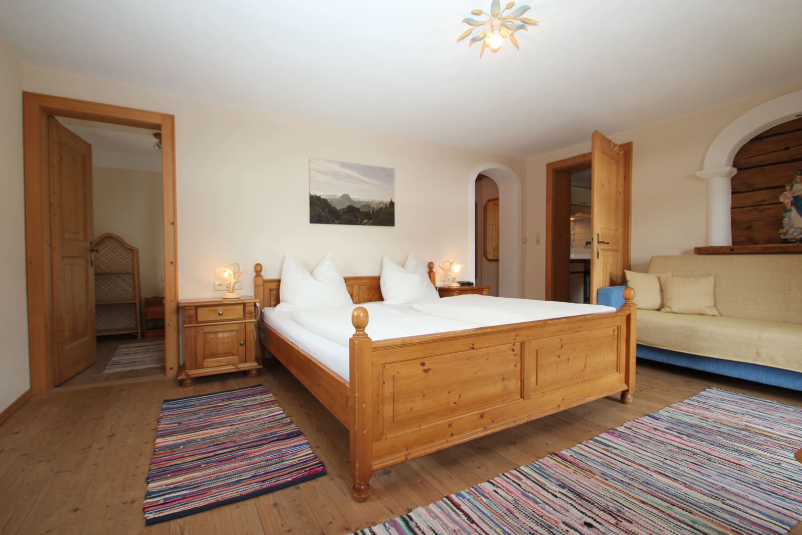 Unsere sonnige Ferienwohnung Rettenstein verwöhnt mit bodenständigem Komfort in unserem echt traditionellen Bauernhaus. Einfach wohlfühlen zu zweit oder als kleine Familie.
