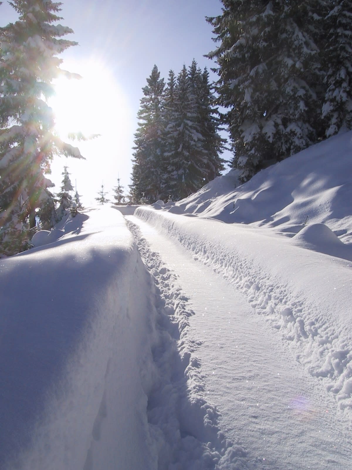 Einfach Tourenschi oder Schneeschuhe anziehen und losmarschieren. In die Stille. Die echte unberührte Winterlandschaft genießen. Wie der Schnee glitzert. Langsam, Schritt für Schritt. Den Alltag hinter sich lassen.