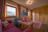 Extra Elternschlafzimmer, Wohnraum mit Kinderkoje (Stockbetten) und Ausziehcouch, Vorraum, Naturholzmöbel, Naturholzboden, Badewanne, WC, Föhn, TV, WLan, Safe. Großer Balkon nach Süd-Osten.