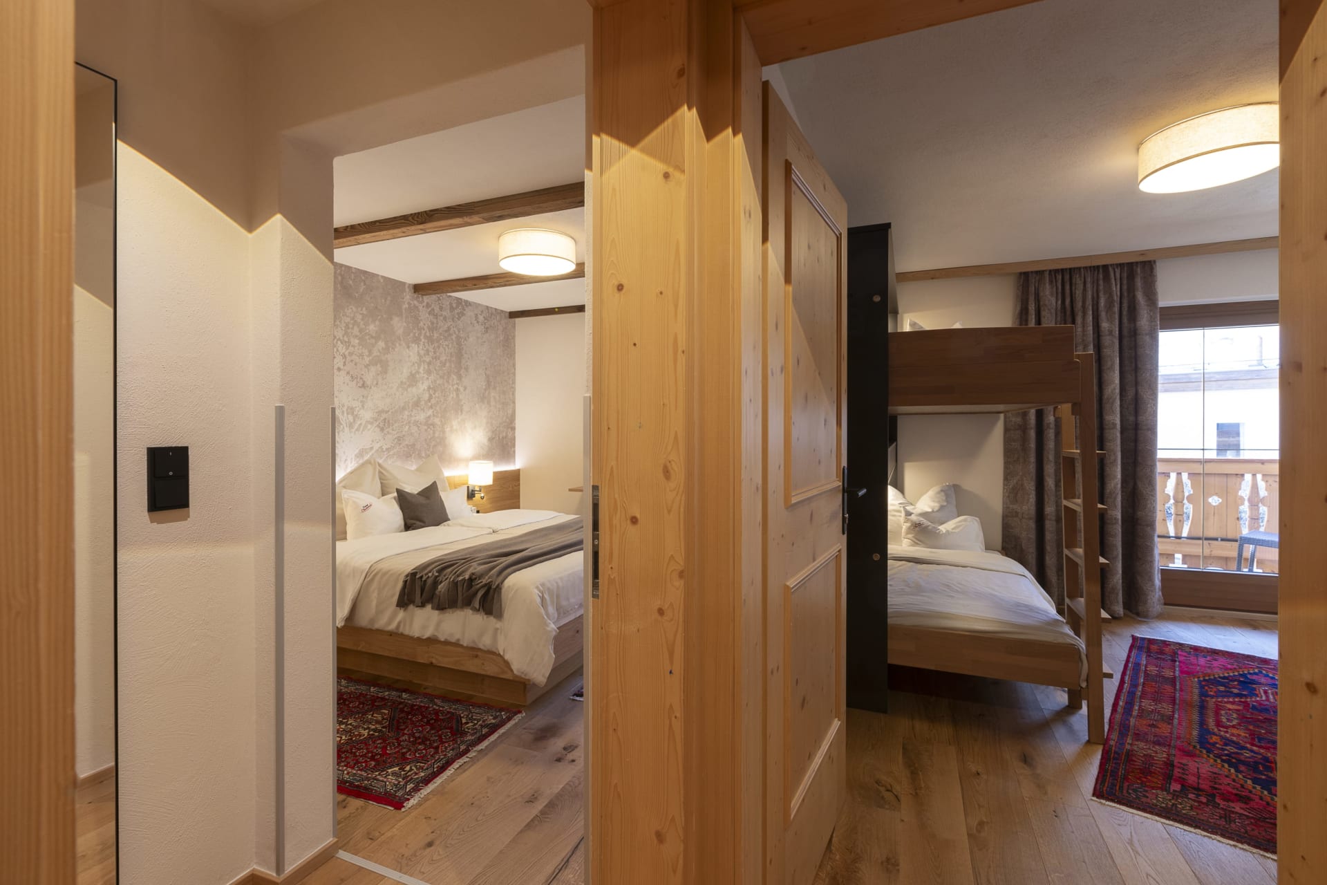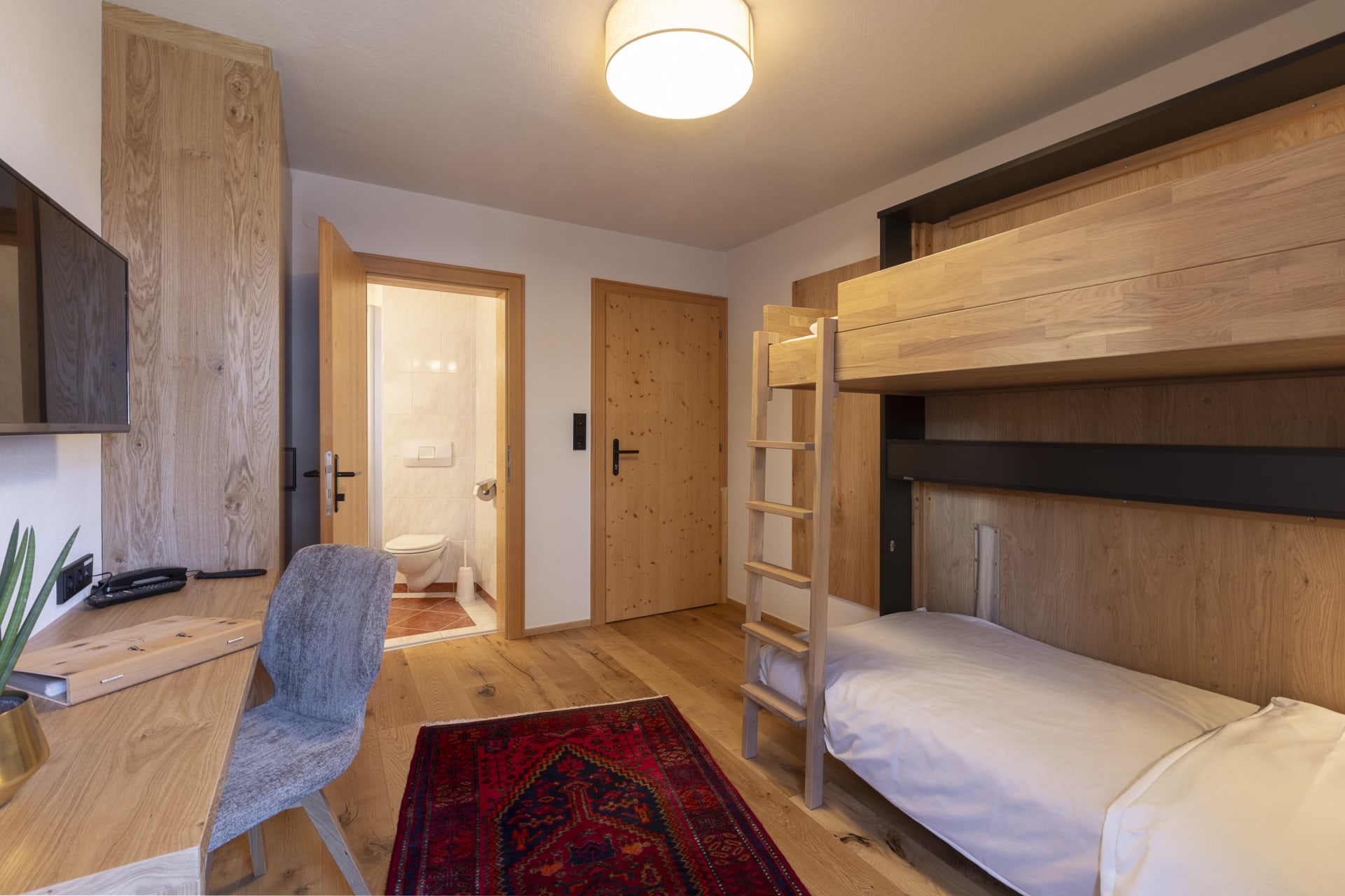2 Zimmer Typ A Habach ( 1 DZ und ein EZ - erweiterbar durch ein Klappstockbett für 2 Kinder)  direkt nebeneinander, verbunden durch einen gemeinsamen Vorraum, der gesondert versperrt werden kann. Beide Zimmer jeweils mit Dusche, WC, TV, Telefon, Fön; Safe;  WLan; Naturholzboden; im November 2023 komplett neu!