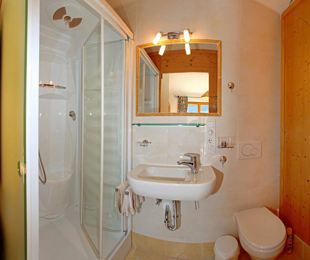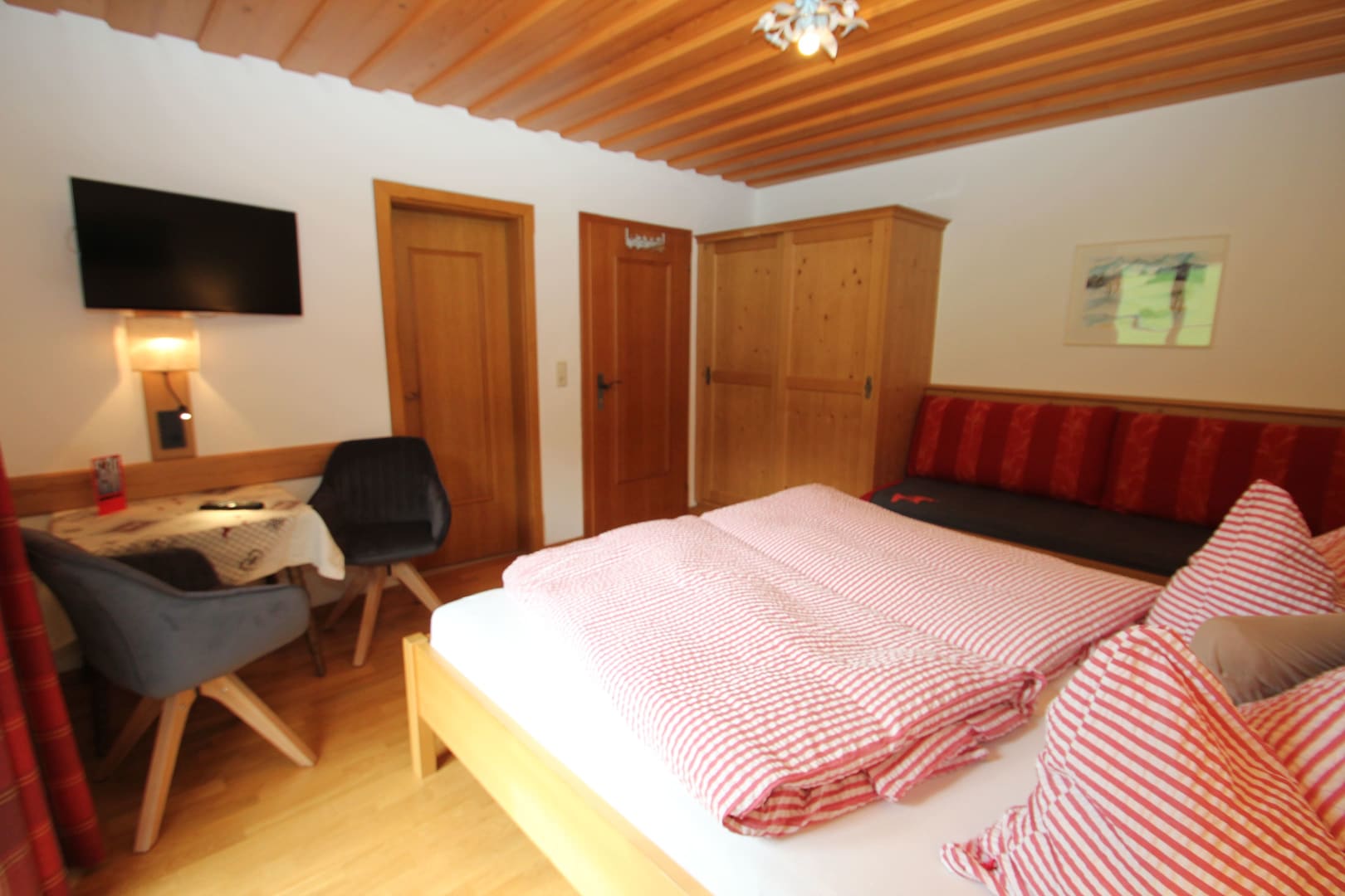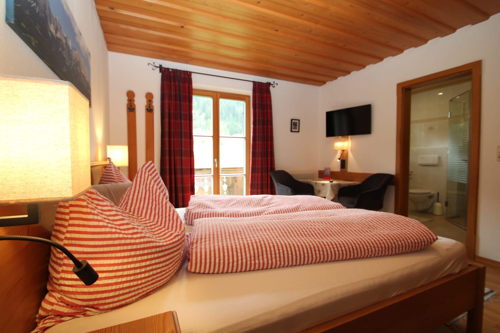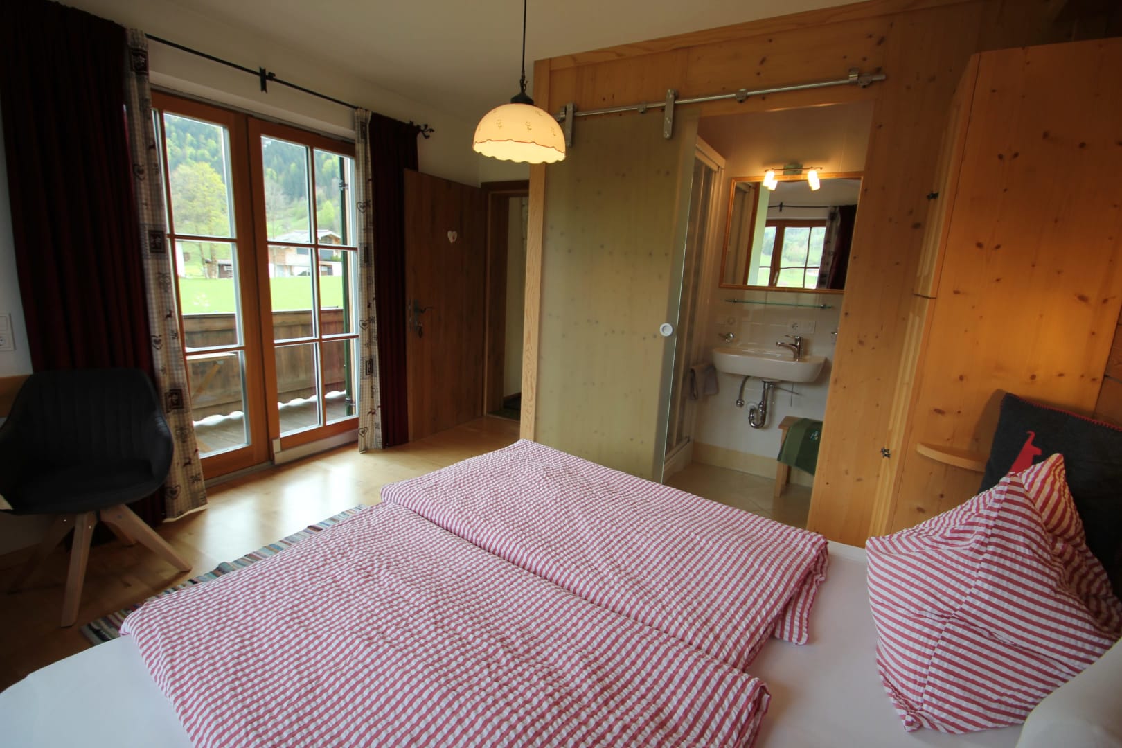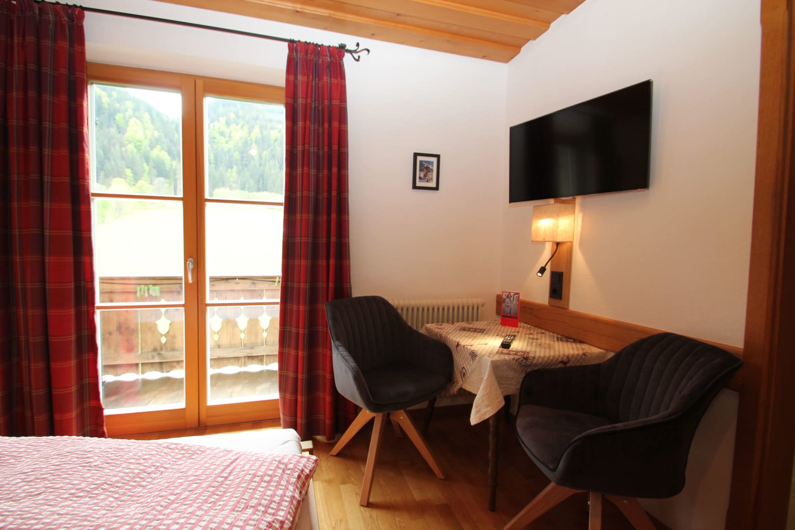 Gemütliches Doppelzimmer (auf Anfrage auch für drei Personen möglich) mit Blick zum Kitzbühler-Horn oder Hahnenkamm. Alle Zimmer mit TV, DU/WC und Balkon. Auf Anfrage auch 3 Personen möglich.