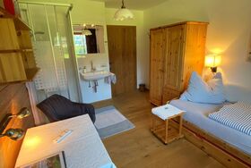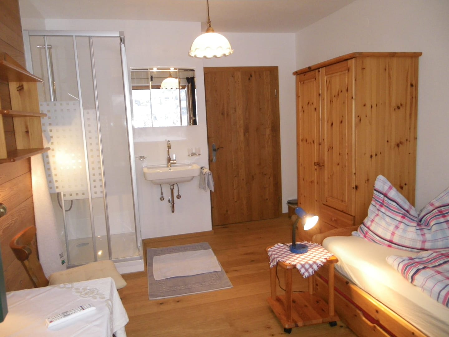 Dusche ist im Zimmer, das WC für dieses Zimmer ist am Gang.