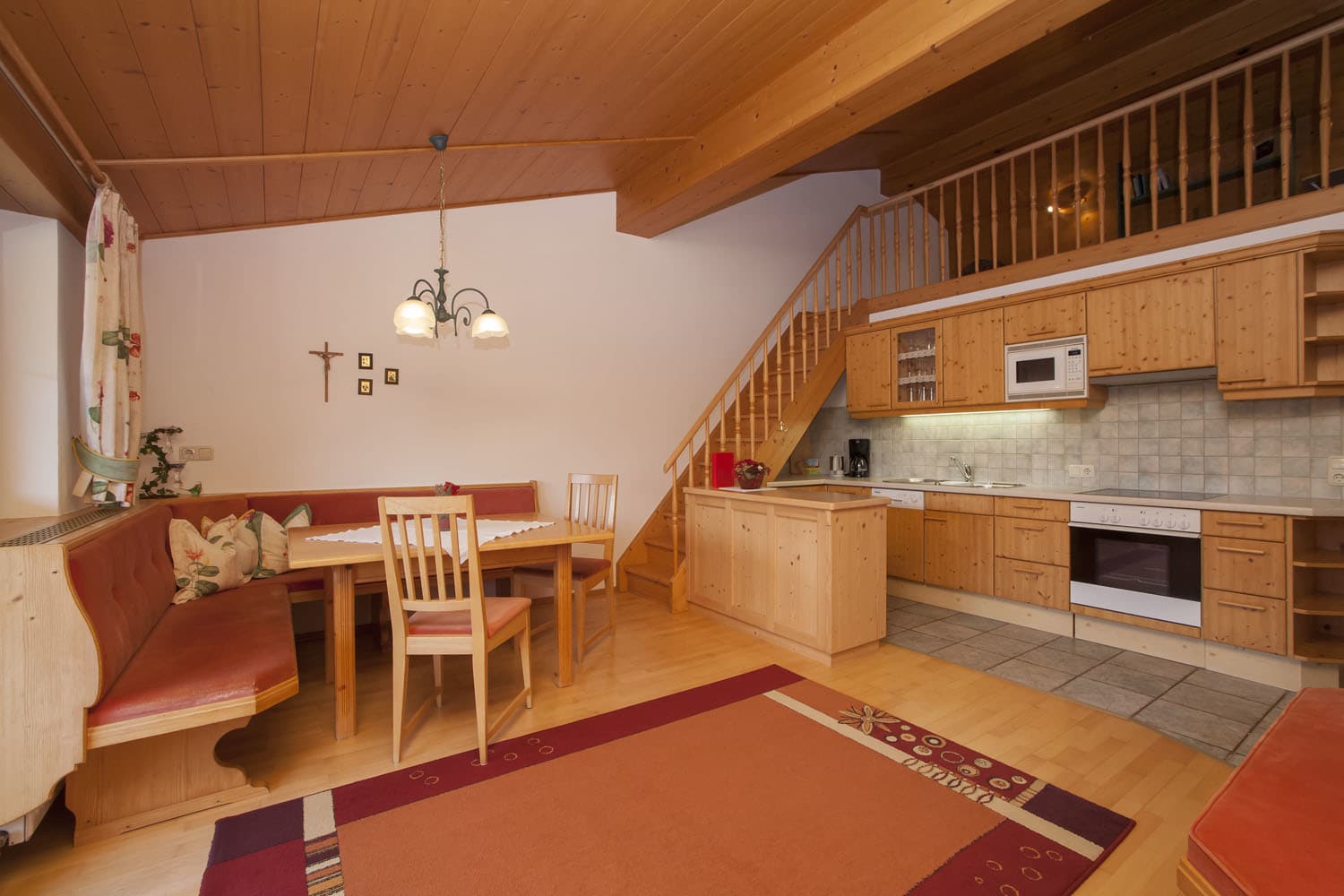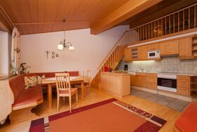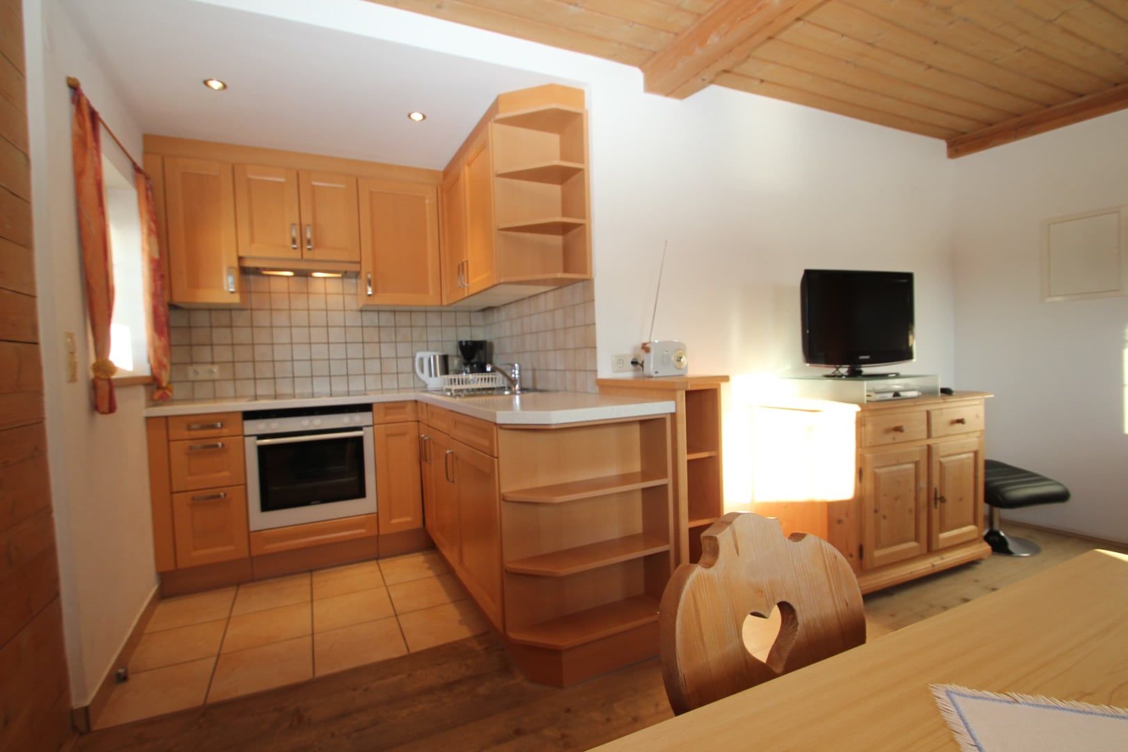 Luxuswohnung für 2-4 Personen, 1 Schlafzimmer, Wohnküche mit Galerie (mit ausziehbarer Couch für 2 Personen), Badewanne, separates WC, gemütlicher Kachelofen, 2 Balkone auf Sonnenseite. Gratis W-Lan- Keine Haustiere erlaubt!
