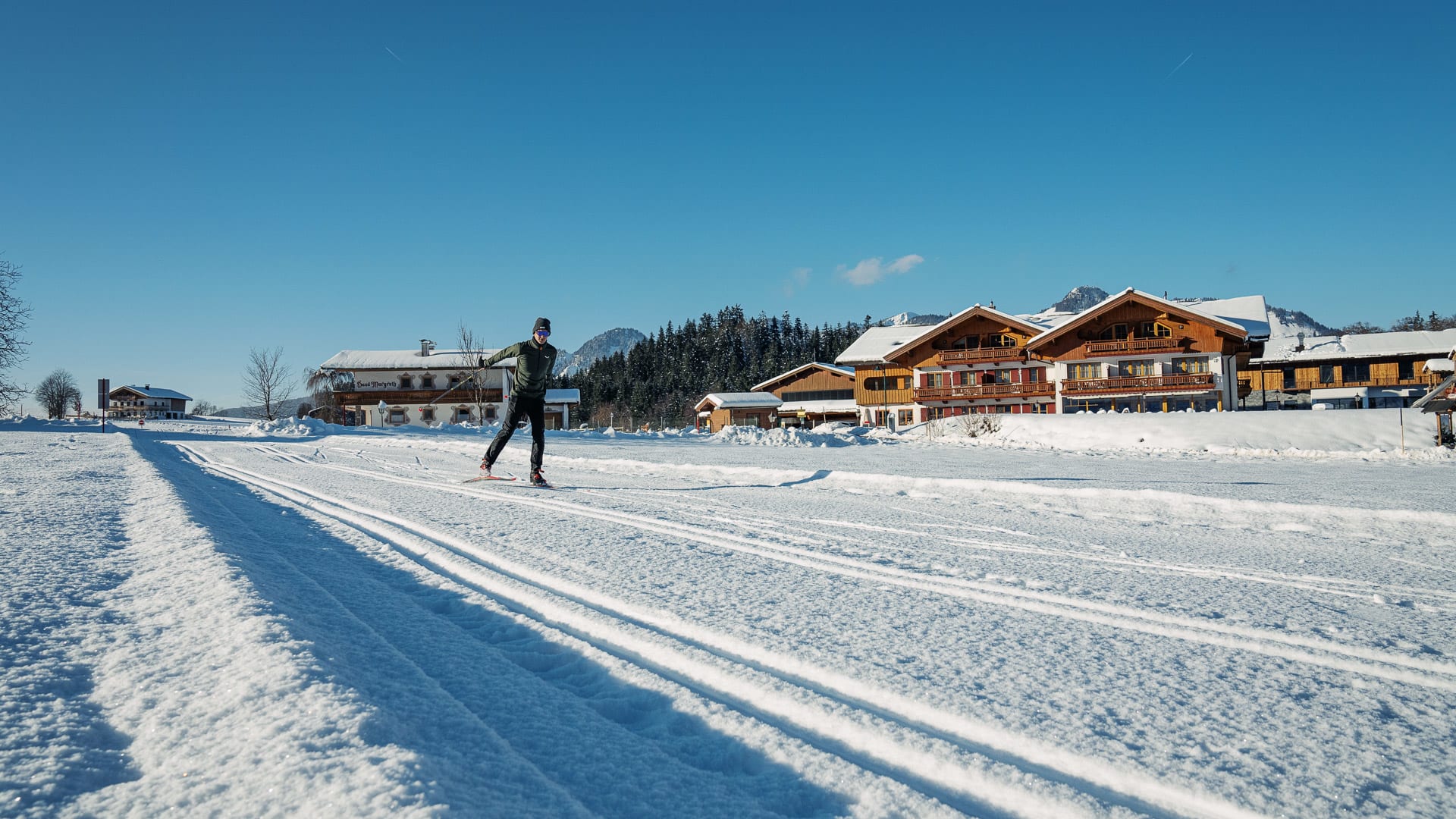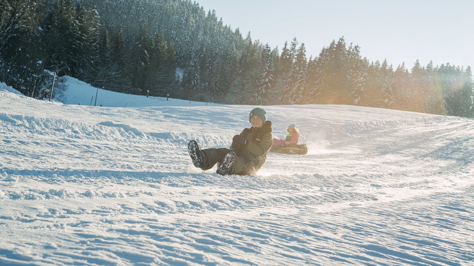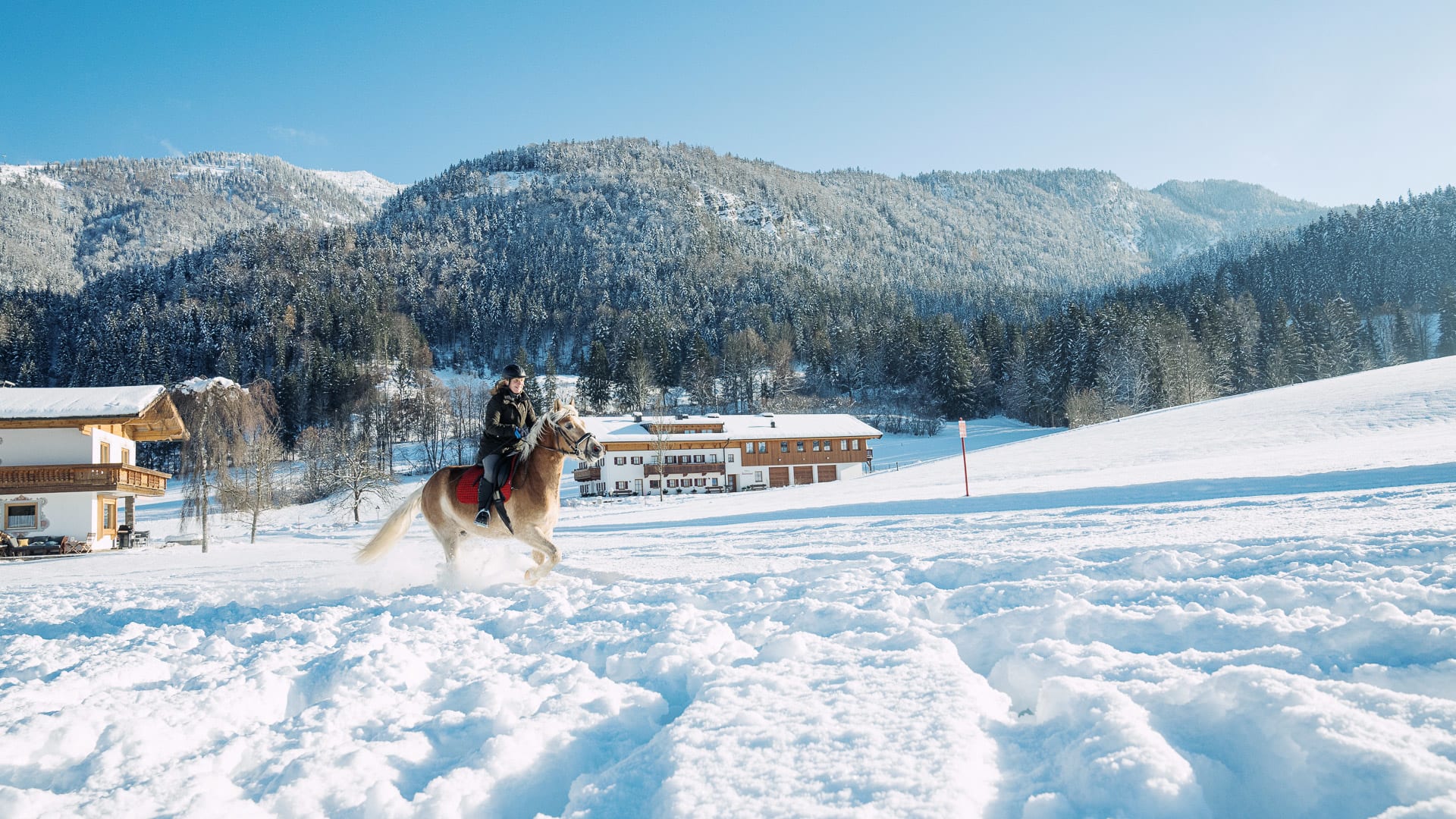 Unterhochstätt liegt im schneesicheren Kaiserwinkl (nord-west-Staulage) und ist optimaler Ausgangspunkt für weitlaüfige Winterwanderungen. Dirket am Hof können sie in das Kaiserwinkl- Loipennetz (140km, Loipengütesiegel) einsteigen. 2 Autominuten vom Hof entfernt geht´s hinauf in´s Schigebiet Hochkössen, ein Geheimtip (100% Beschneiungsanlage, gratis Schibus ab Hof). In Hoch Kössen erleben Sie Pistenspass von Dezember bis Ostern. Auf dem hauseigenen Natur-Eislaufplatz tummeln sich tagsüber Schlittschuhläufer und abends gibt es des eine oder andere Eisstocktournier. Highlight, besonders bei Kindern ist die hauseigene Rodelbahn