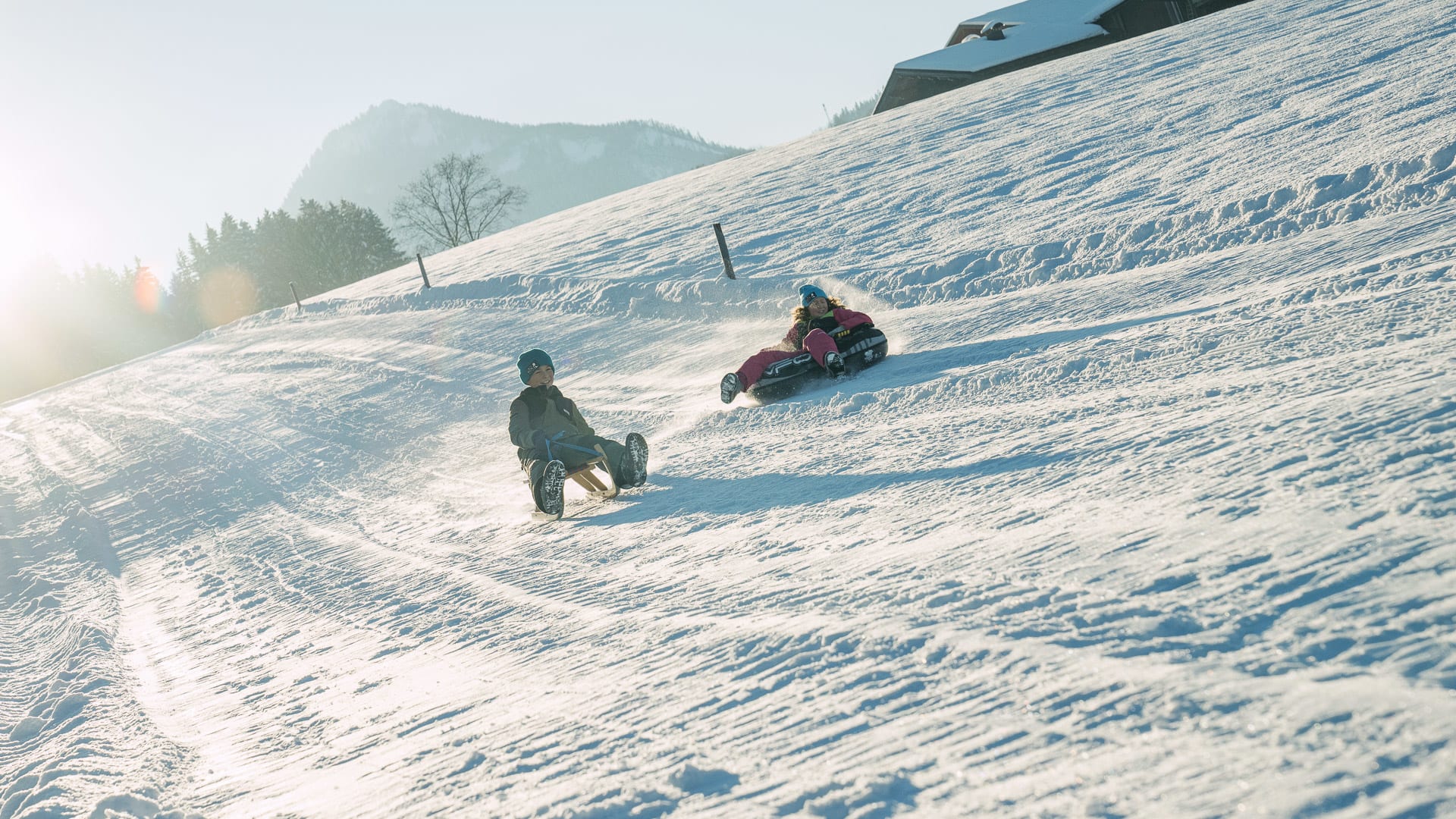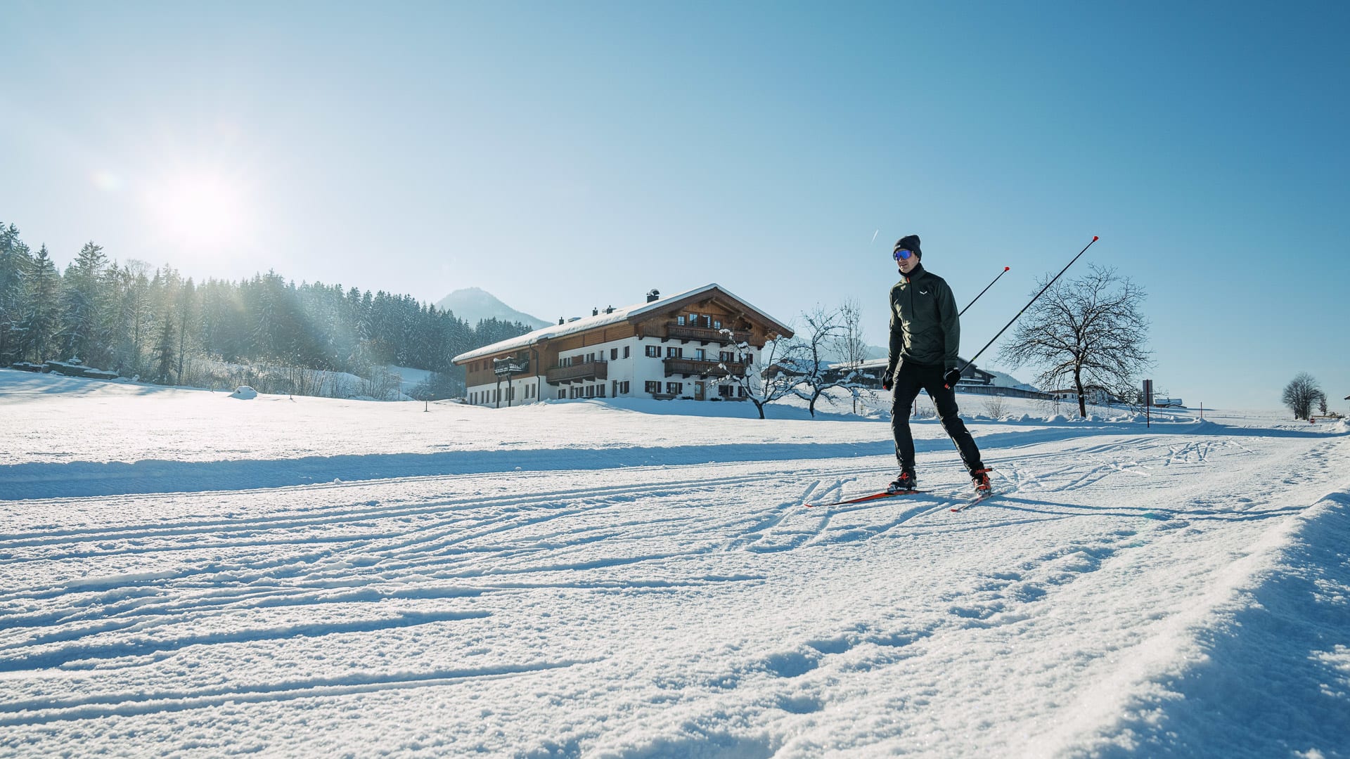 Unterhochstätt liegt im schneesicheren Kaiserwinkl (nord-west-Staulage) und ist optimaler Ausgangspunkt für weitlaüfige Winterwanderungen. Dirket am Hof können sie in das Kaiserwinkl- Loipennetz (140km, Loipengütesiegel) einsteigen. 2 Autominuten vom Hof entfernt geht´s hinauf in´s Schigebiet Hochkössen, ein Geheimtip (100% Beschneiungsanlage, gratis Schibus ab Hof). In Hoch Kössen erleben Sie Pistenspass von Dezember bis Ostern. Auf dem hauseigenen Natur-Eislaufplatz tummeln sich tagsüber Schlittschuhläufer und abends gibt es des eine oder andere Eisstocktournier. Highlight, besonders bei Kindern ist die hauseigene Rodelbahn