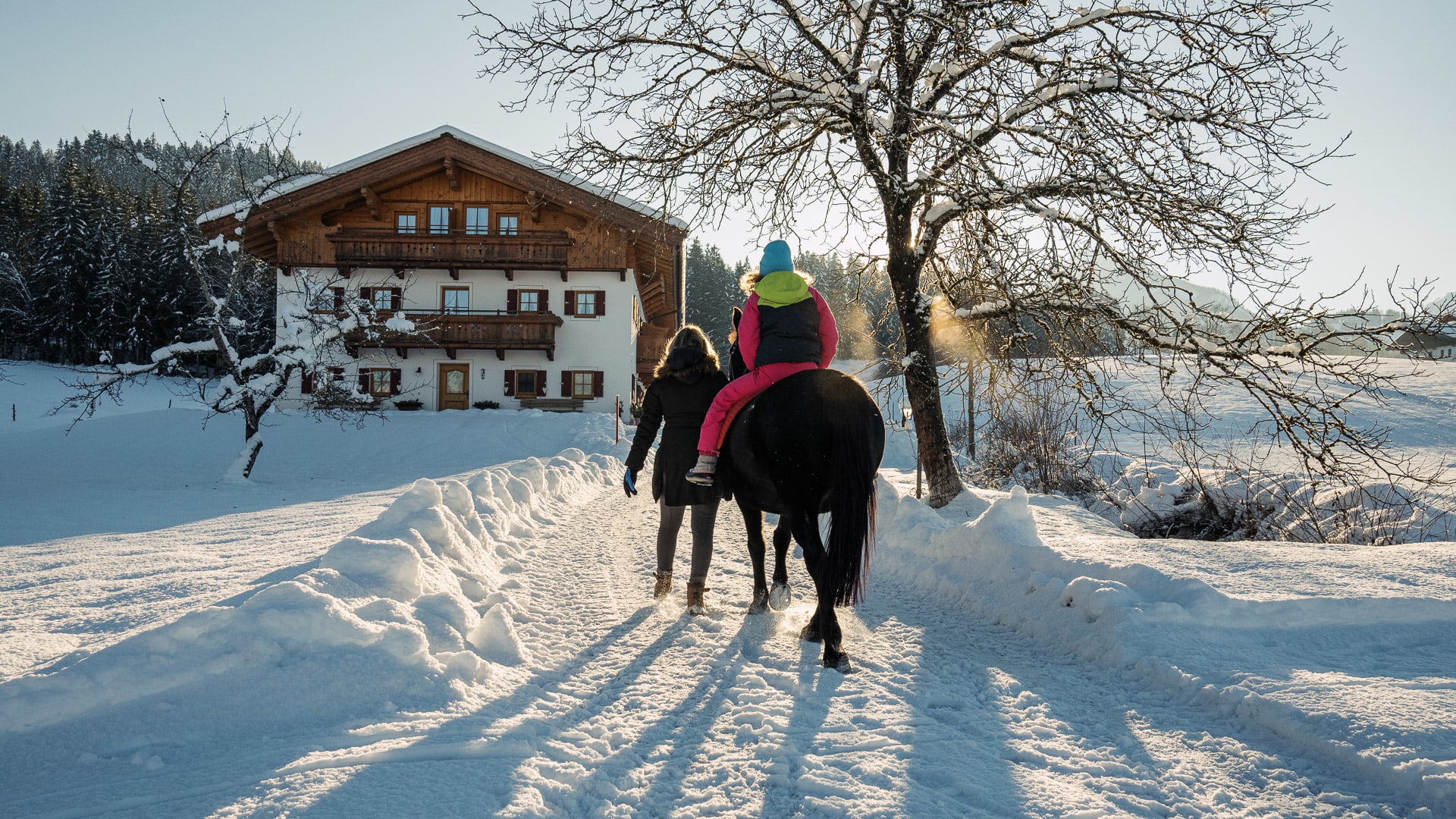 Unterhochstätt liegt im schneesicheren Kaiserwinkl (nord-west-Staulage) und ist optimaler Ausgangspunkt für weitlaüfige Winterwanderungen. Dirket am Hof können sie in das Kaiserwinkl- Loipennetz (140km, Loipengütesiegel) einsteigen. 2 Autominuten vom Hof entfernt geht´s hinauf in´s Schigebiet Hochkössen, ein Geheimtip (100% Beschneiungsanlage, gratis Schibus ab Hof). In Hoch Kössen erleben Sie Pistenspass von Dezember bis Ostern. Auf dem hauseigenen Natur-Eislaufplatz tummeln sich tagsüber Schlittschuhläufer und abends gibt es des eine oder andere Eisstocktournier. Highlight, besonders bei Kindern ist die hauseigene Rodelbahn