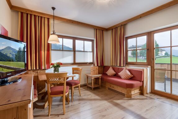 Der Haflingerhof verfügt über 9 gemütliche Appartements, die viel Liebe zum Detail im Tiroler Stil eingerichtet sind. Die Ferienwohnungen bieten heimelige Atmosphäre, die das Wohnen bei uns unvergesslich macht. Fühlen sich die Kinder wohl können auch die Eltern den wohlverdienten Urlaub in vollen Zügen genießen. Für die Kleinen gibt es unseren Bauernhof mit vielen Tieren, einen Reitstall mit Reithalle und im Haus einen Kinderspielraum. Im Winter erwartet Sie auf 240 m2 eine einzigartige sonnendurchflutete Wellnessanlage mit herrlichem Blick auf die Bergwelt. Finnische Sauna, Kräuterdampfbad und Infrarotwärmekabine sorgen nach einem schönen Skitag für Entspannung und Wohlbefinden von Körper Geist und Seele.