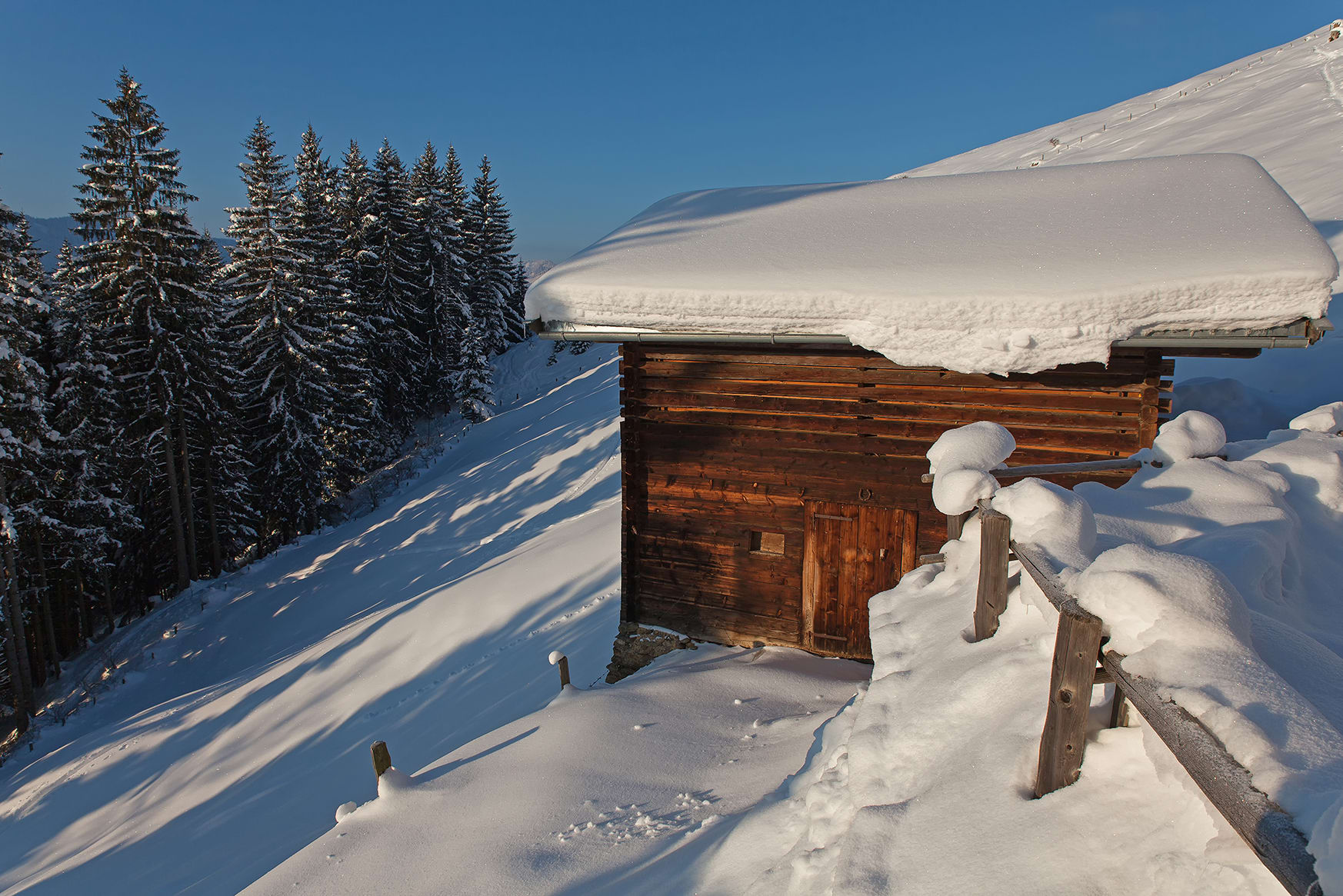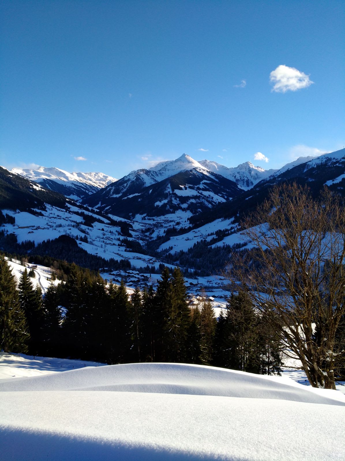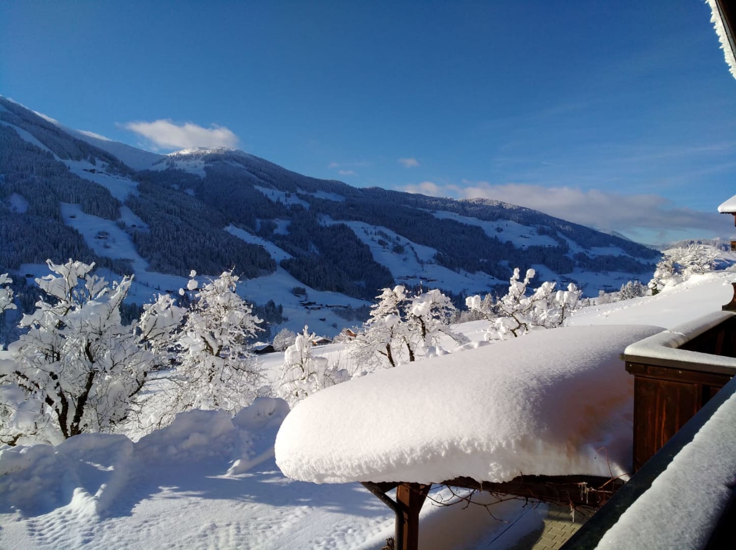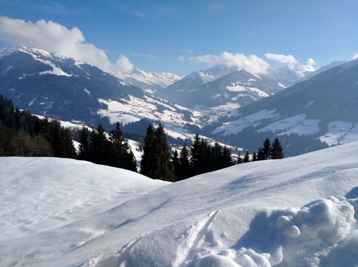Genießen Sie Winterspaziergänge ab Hof und den herrlichen Blick auf das winterliche Alpbachtal