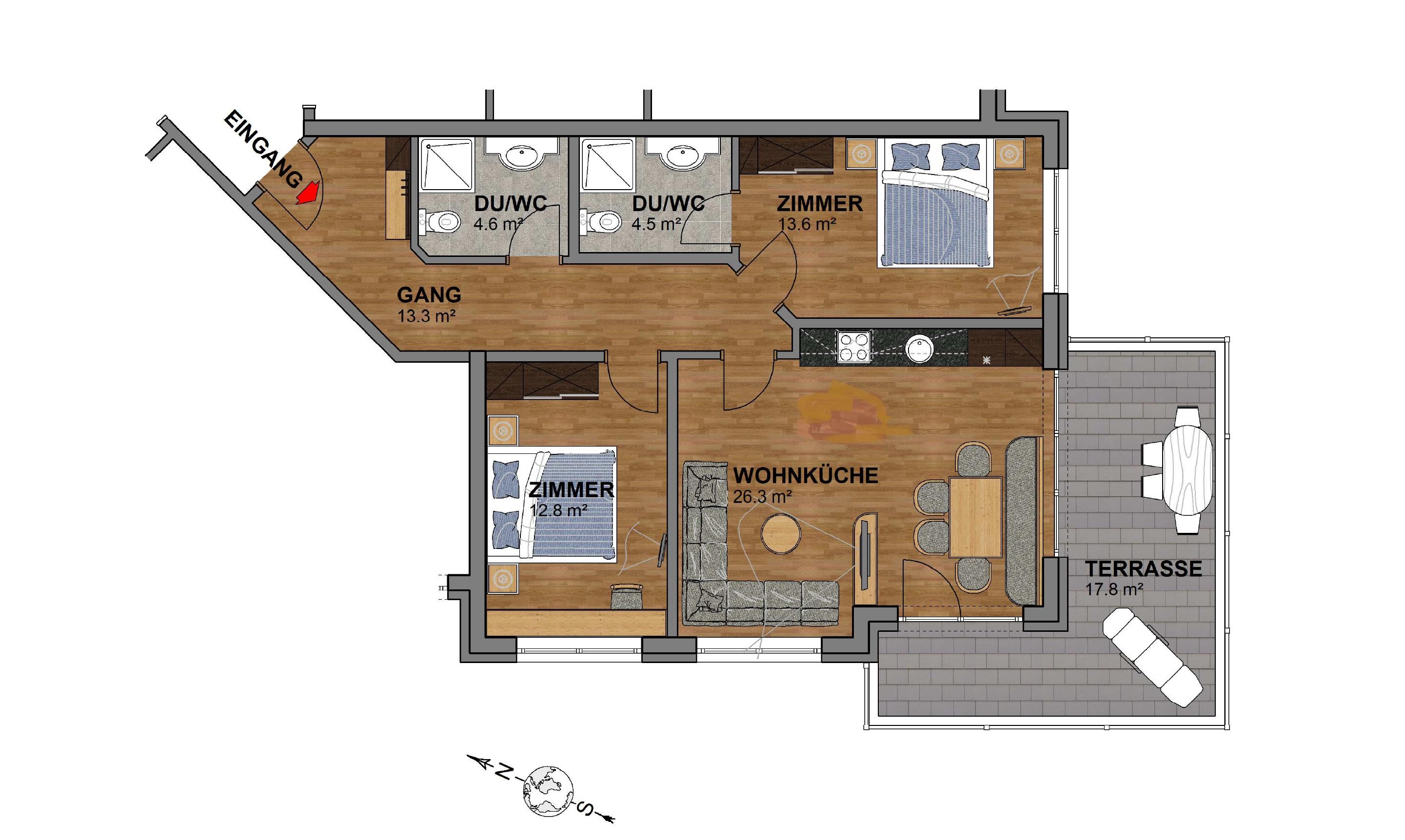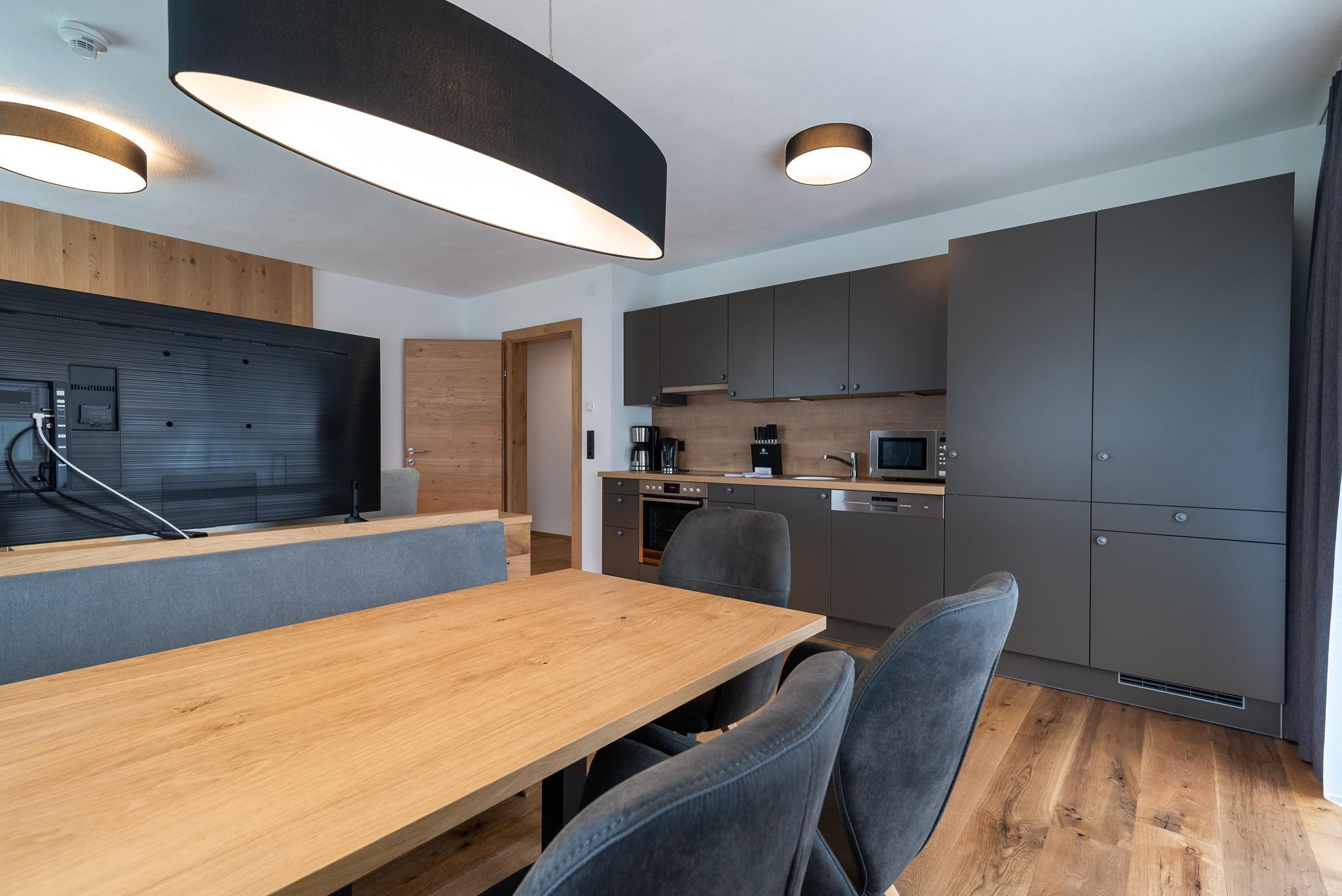Top 5 mit ca. 75 m²: 1 voll ausgestattete Wohnküche mit Cerankochfeld, Backrohr, Mikrowelle, Geschirrspül- und Kaffeemaschine, gemütlicher Essecke, Kabel TV, großer Wohnbereich mit Sofalandschaft; 2 Schlafzimmer mit Doppelbett und großen Kleiderschrank, 2 Badezimmer mit Dusche und WC. Balkon