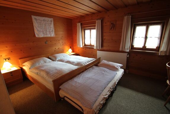 Einfaches gemütliches Mehrbettzimmer, WC und Dusche im Zimmer. Reichhaltiges Frühstück inklusive.