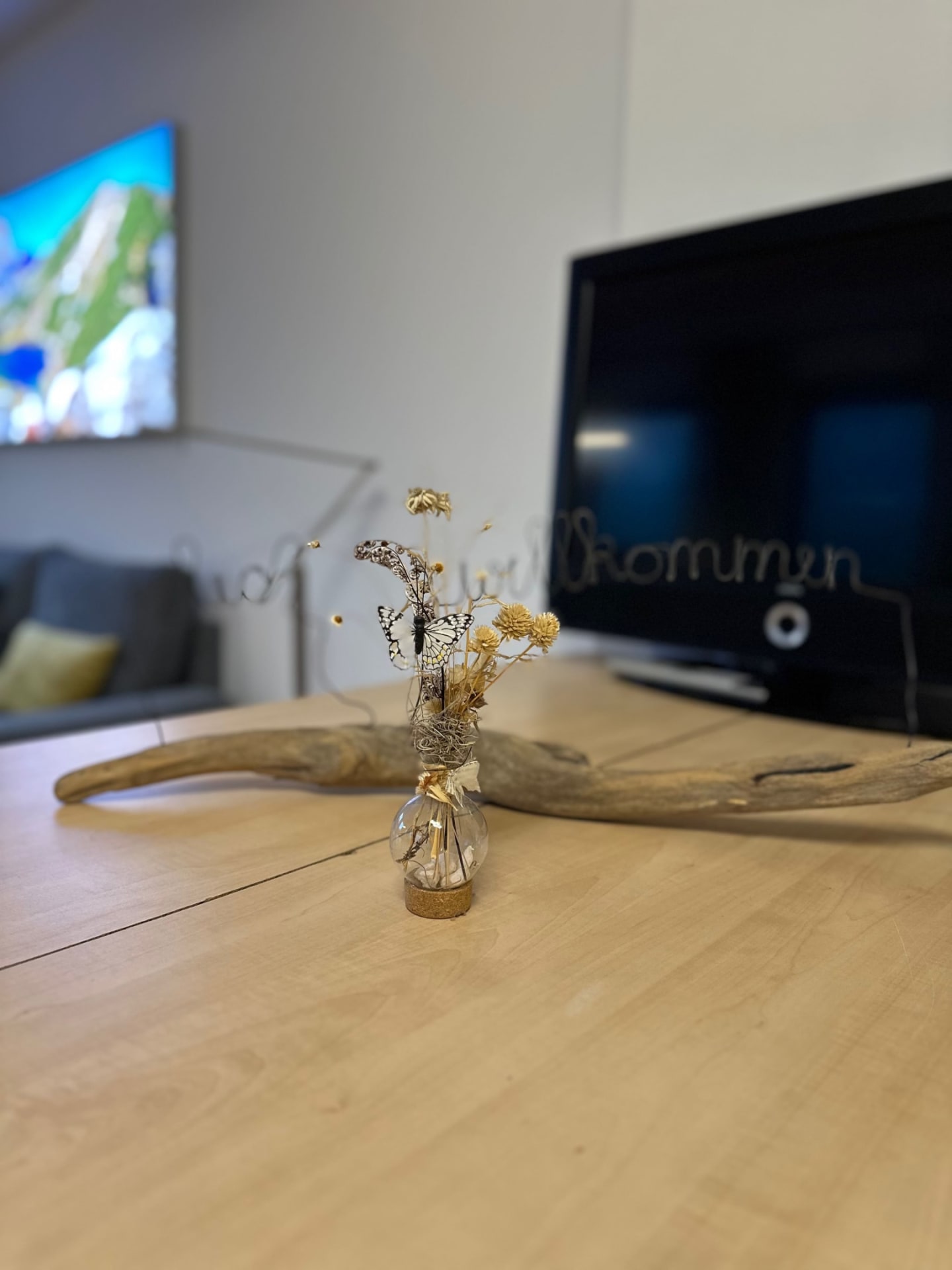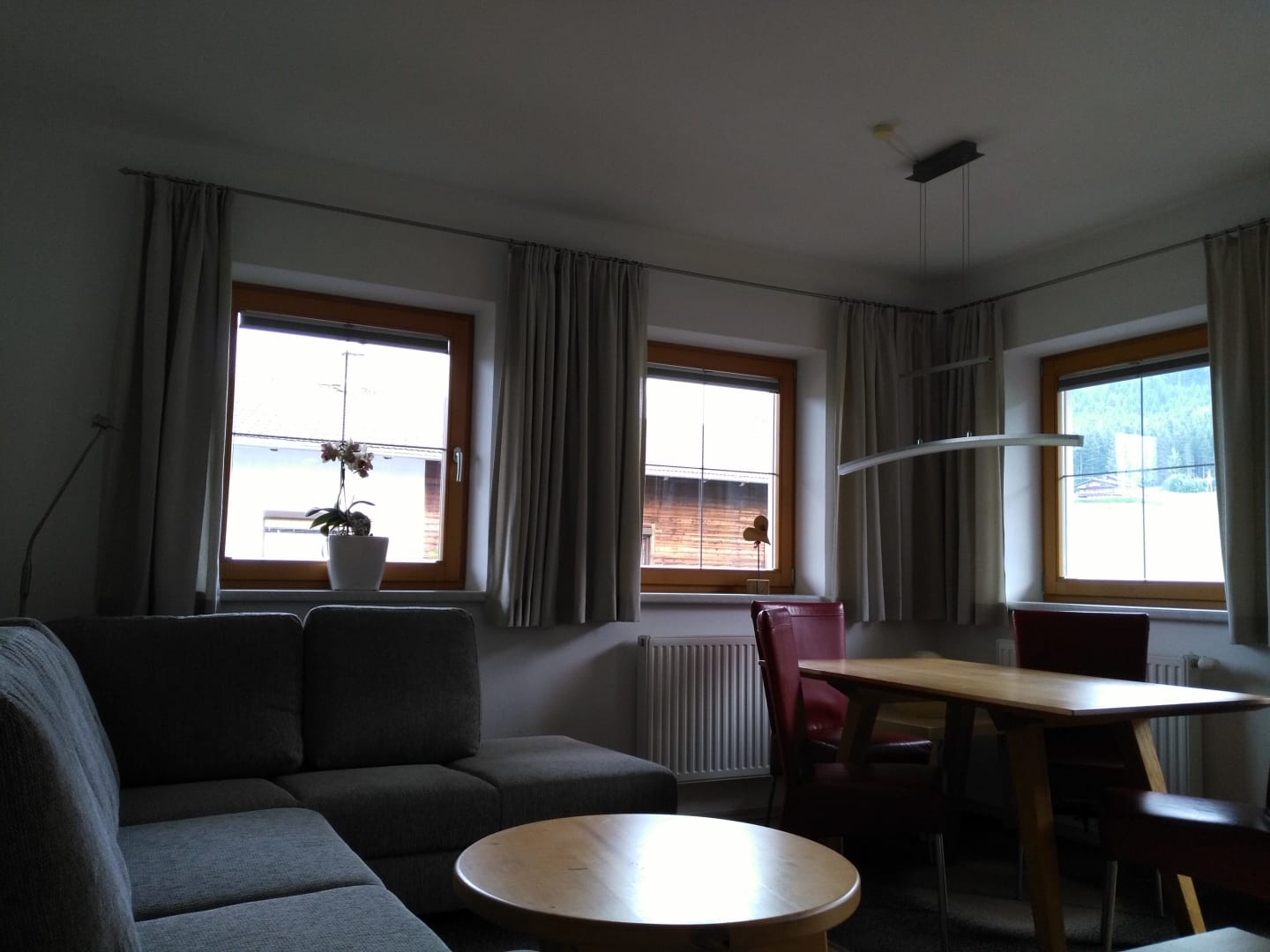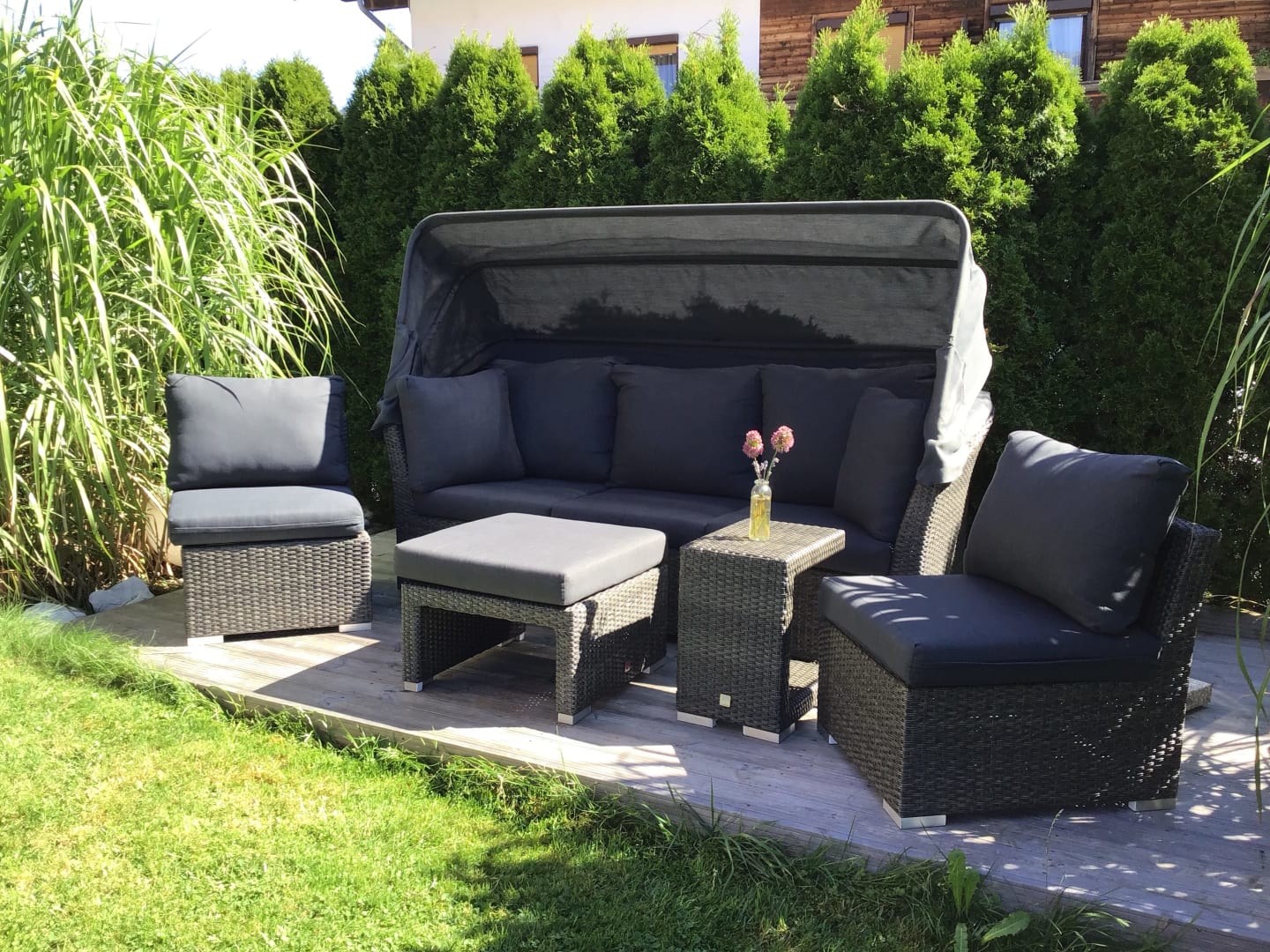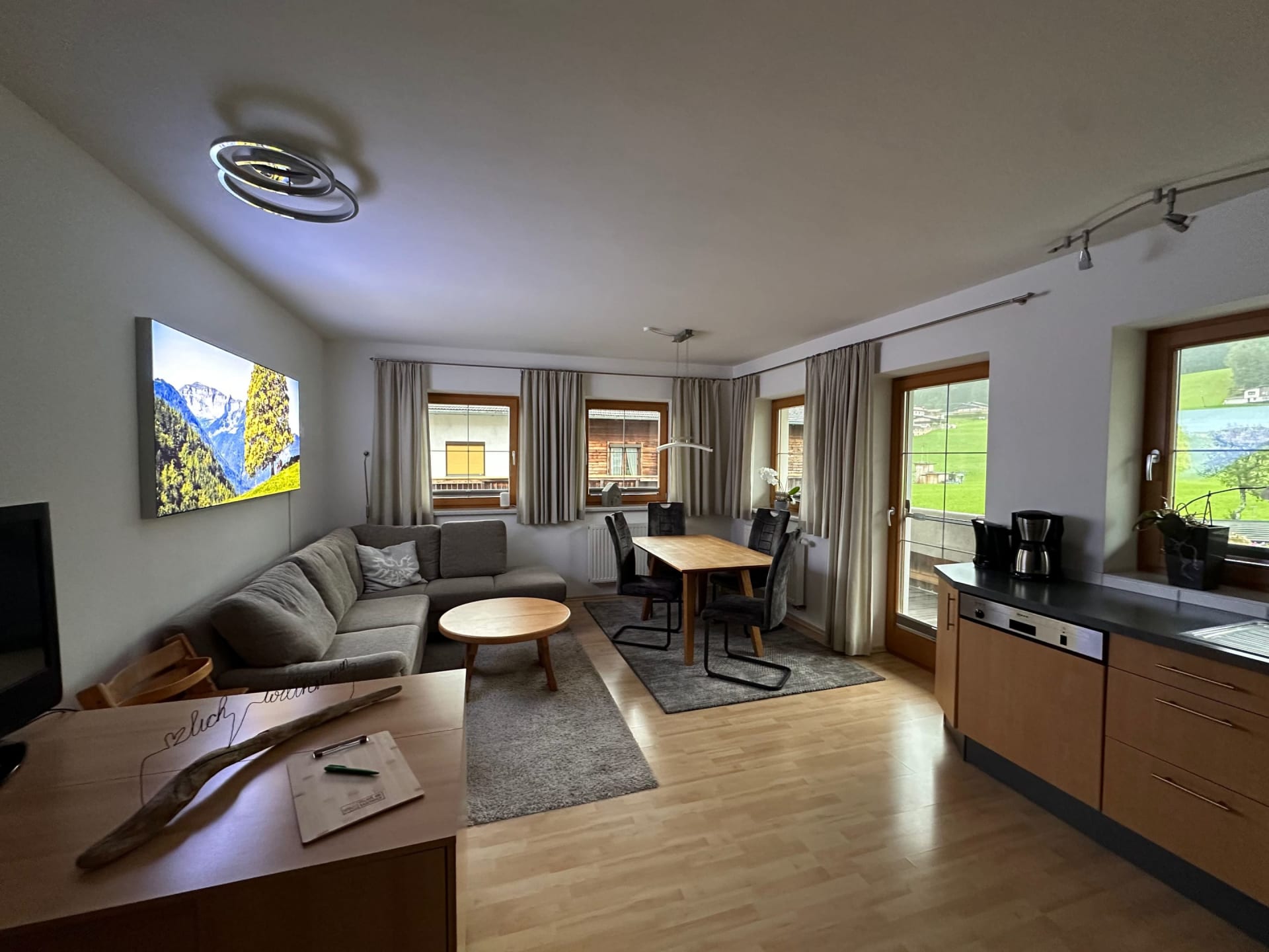 Großes Wohn/Schlafzimmer mit Sitzgarnitur (Schlafmöglichkeit für 2 Personen), SAT-TV, Radio, W-LAN, Essecke, eingebaute, offene Küche mit E-Herd- Ceranfeld, Backrohr, Spülmaschine, Mikrowelle, Kühlschrank mit Gefrierfach, Kaffeemaschine, Wasserkocher und Ausgang zum Balkon mit Gartenmöbeln und Blick auf´s Grüne und die Berge. Schlafzimmer mit großen Kleiderschrank und ebenso Ausgang zum Balkon.