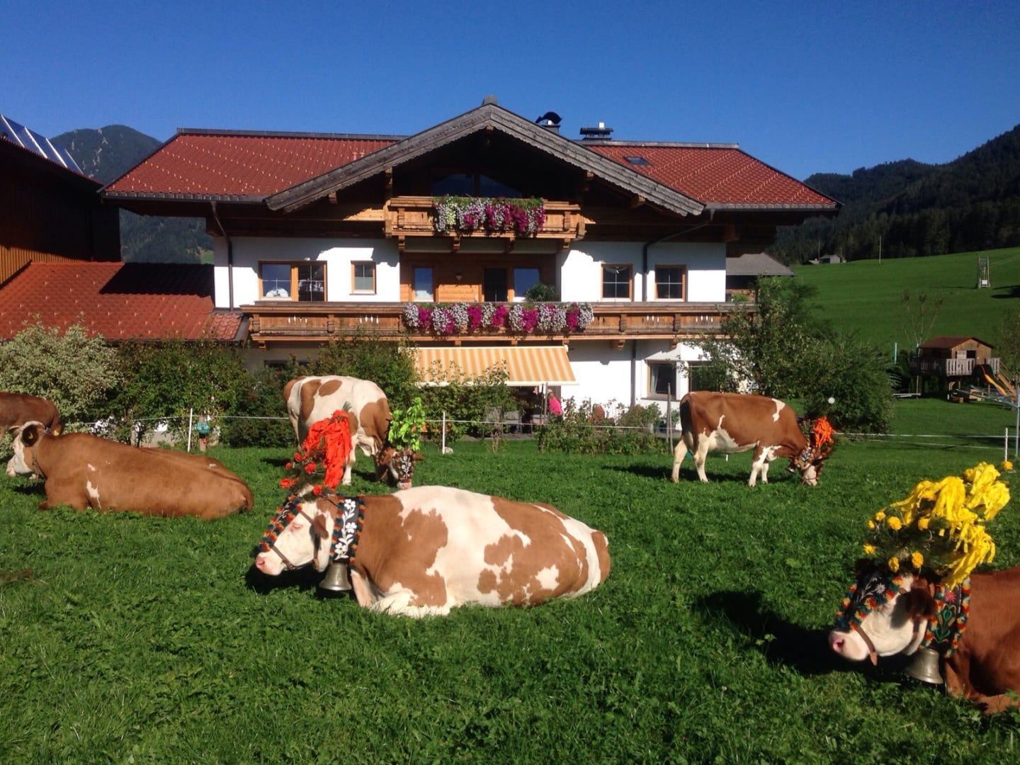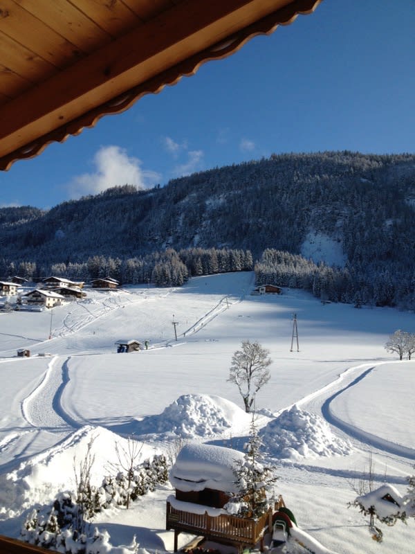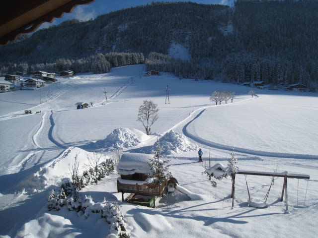 Im Winter können Sie Ihre Kondition auf 12 km bestens präparierten Langlaufloipen testen, die direkt hinterm Haus losgehen. 100m vor dem Haus befindet sich ein Skilift für Kinder und Anfänger oder Sie probieren unsere beleuchtete Naturrodelbahn mal aus. Ihre Geschicklichkeit können Sie bei uns auch prüfen z.B. beim Eisstockschießen. Unsere nächstgelegenen Skigebiete Alpbachtal und Zillertal sind in 20 – 30 Minuten leicht erreichbar. Wir liegen ca. 7 km von der Autobahnausfahrt Kramsach entfernt. Wir verwöhnen Sie mit Lebensmitteln aus eigener Erzeugung auf Wunsch mit selbstgebackenen Kuchen oder Brot. Oder probieren Sie die Spezialität des Tales – den echten Baumkuchen. Ihren Kindern wird es bei uns auch nicht langweilig. Sie können mit Katzen oder Hasen auf unserer Spiel- und Liegewiese spielen. Am Hof befindet sich ein Kinderspielplatz mit Spielhaus, Sandkasten, Schaukeln, Kinderfahrzeuge, Tischtennis, Trampolin ect.. Kommen Sie zu uns, genießen Sie die Ruhe, gute Luft und die Freude Ihren Urlaub in unserem Bergdorf zu erleben.