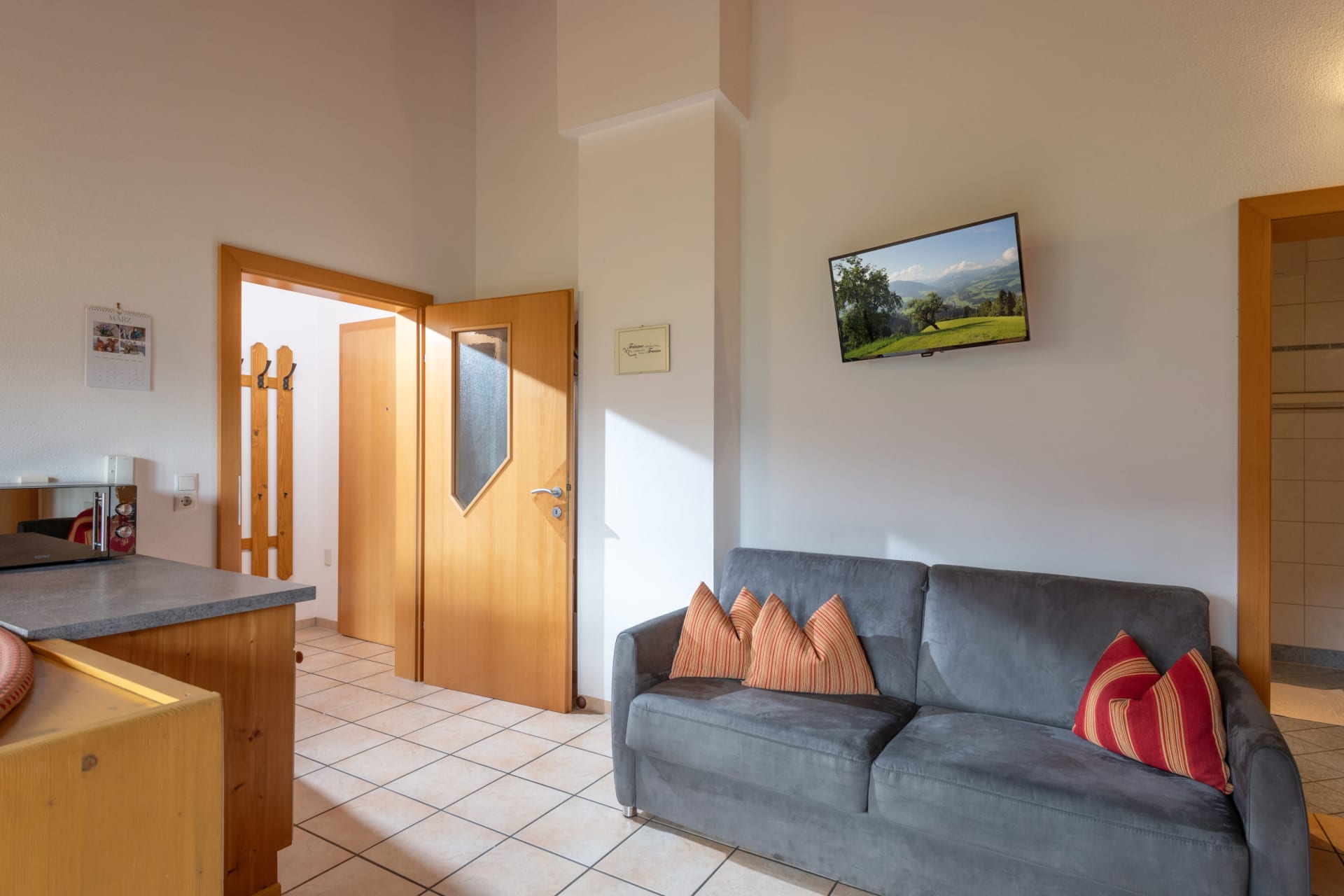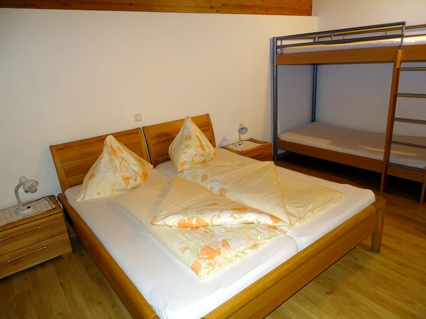 Geräumige Ferienwohnung mit besonders großem Südbalkon mit unverbaubarem Ausblick. Gemütliche und bestens ausgestattete Wohnküche mit Schlafcouch für 2 Personen, ein 2-Bett-Zimmer, ein 4-Bett-Zimmer, großes Badezimmer mit Dusche und 2 Waschbecken, WC separat. Bettwäsche, Handtücher, Geschirrtücher, ausreichend Koch- und Eßgeschirr.