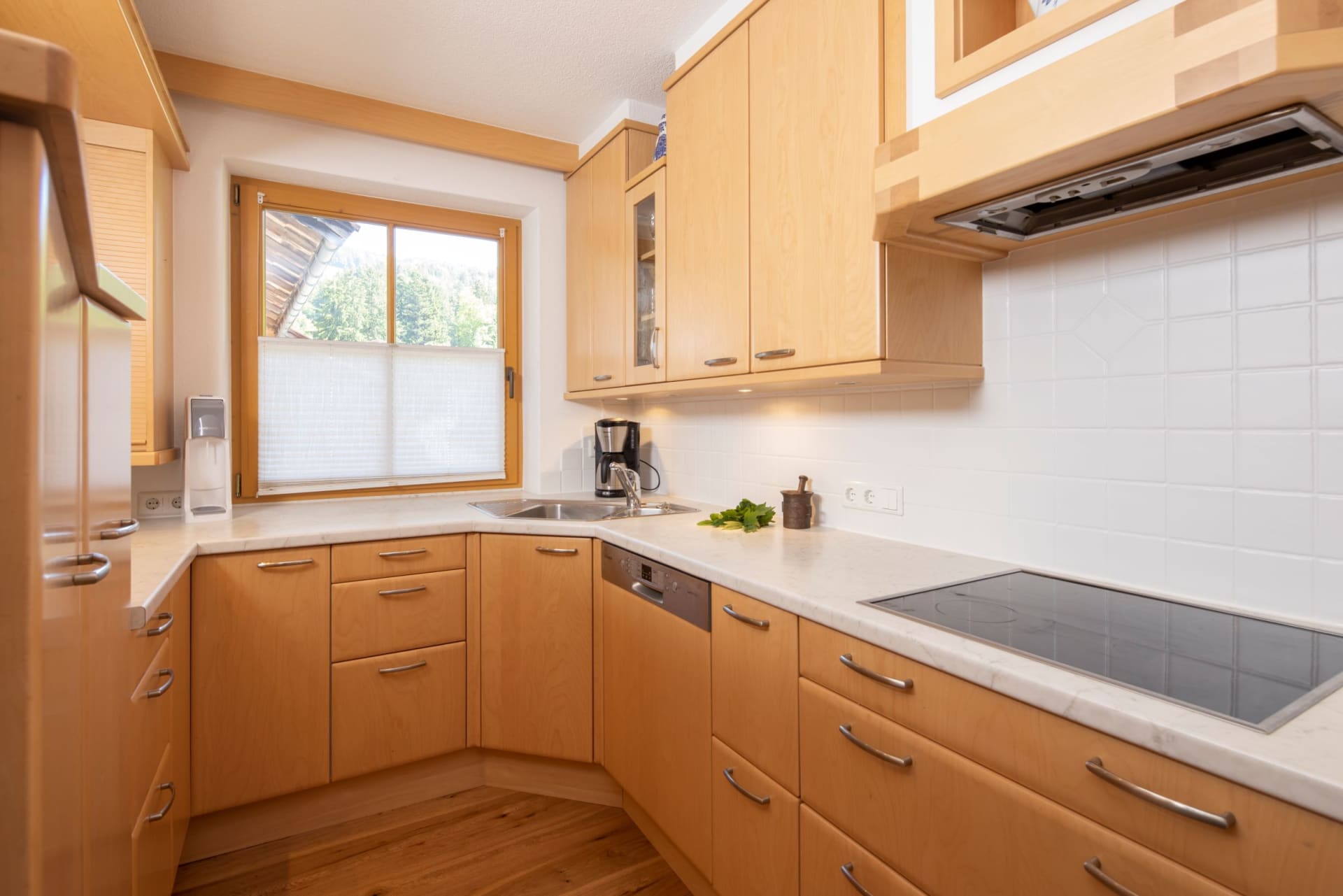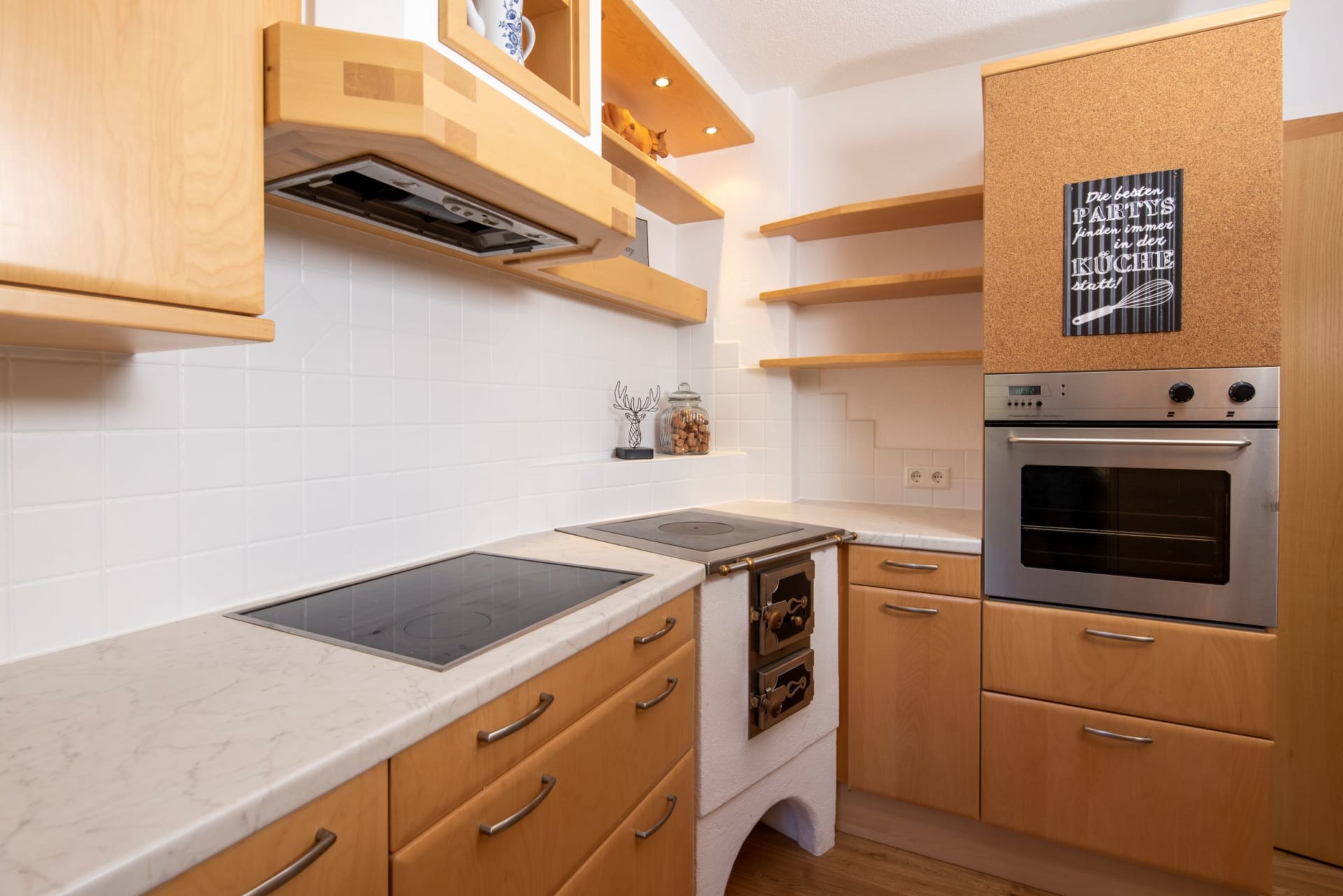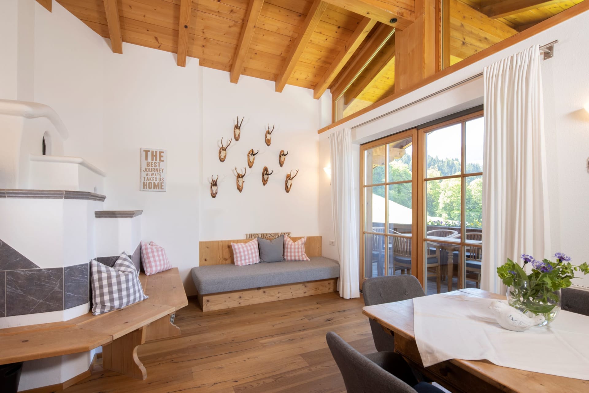 Die Komfort - Wohnung im 1. Stock des Ferienhauses ist sehr hochwertig und mit viel Liebe zum Detail eingerichtet. Die zwei Schlafzimmer, eine hochwertige Küche, das große gemütliche Wohnzimmer mit Kachelofen und die wundervolle Sonnenterrasse mit beeindruckender Aussicht lassen keine Wünsche offen! Von Jung bis ins reife Alter: Genießen Sie die Tiroler Gemütlichkeit verbunden mit höchstem Komfort.