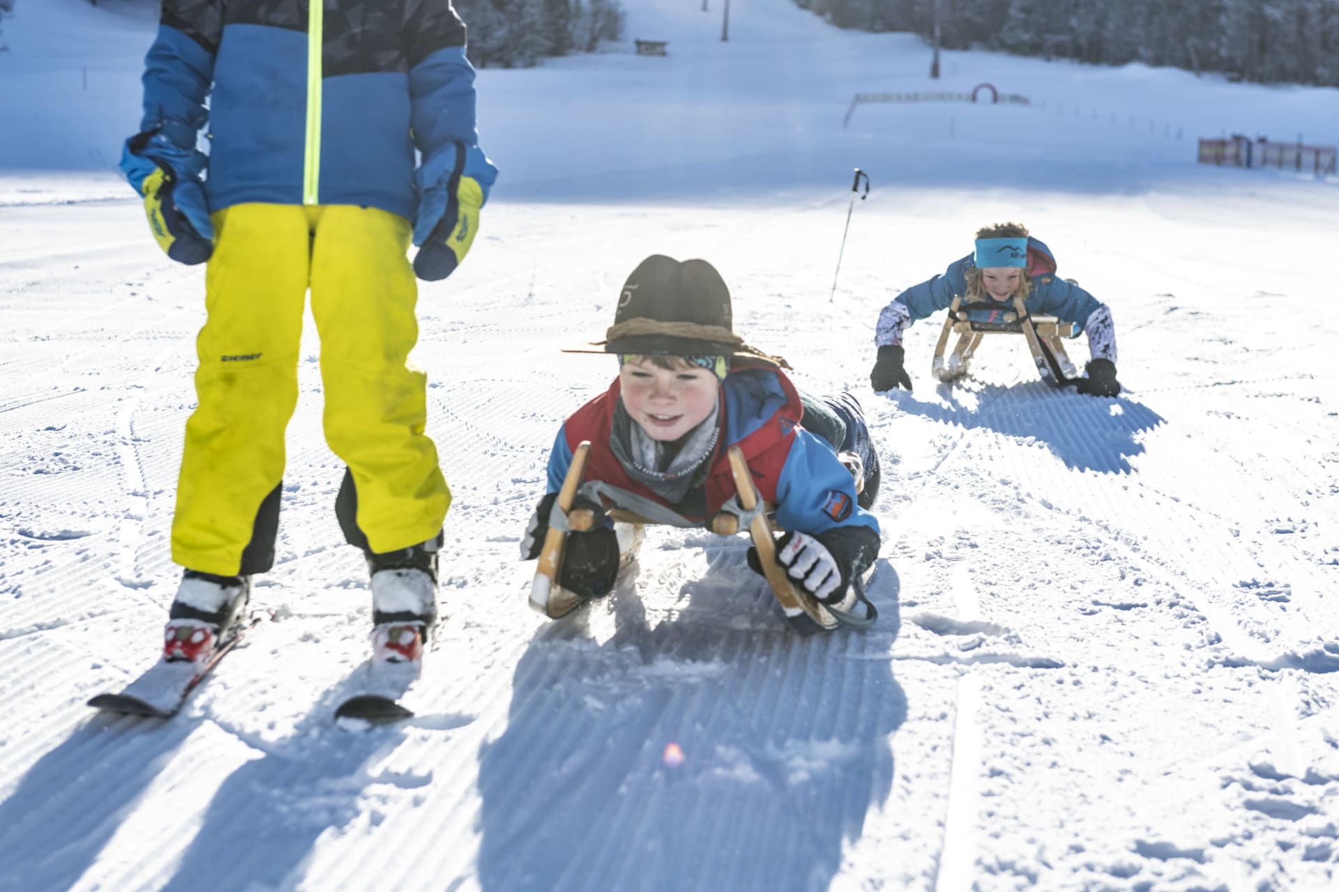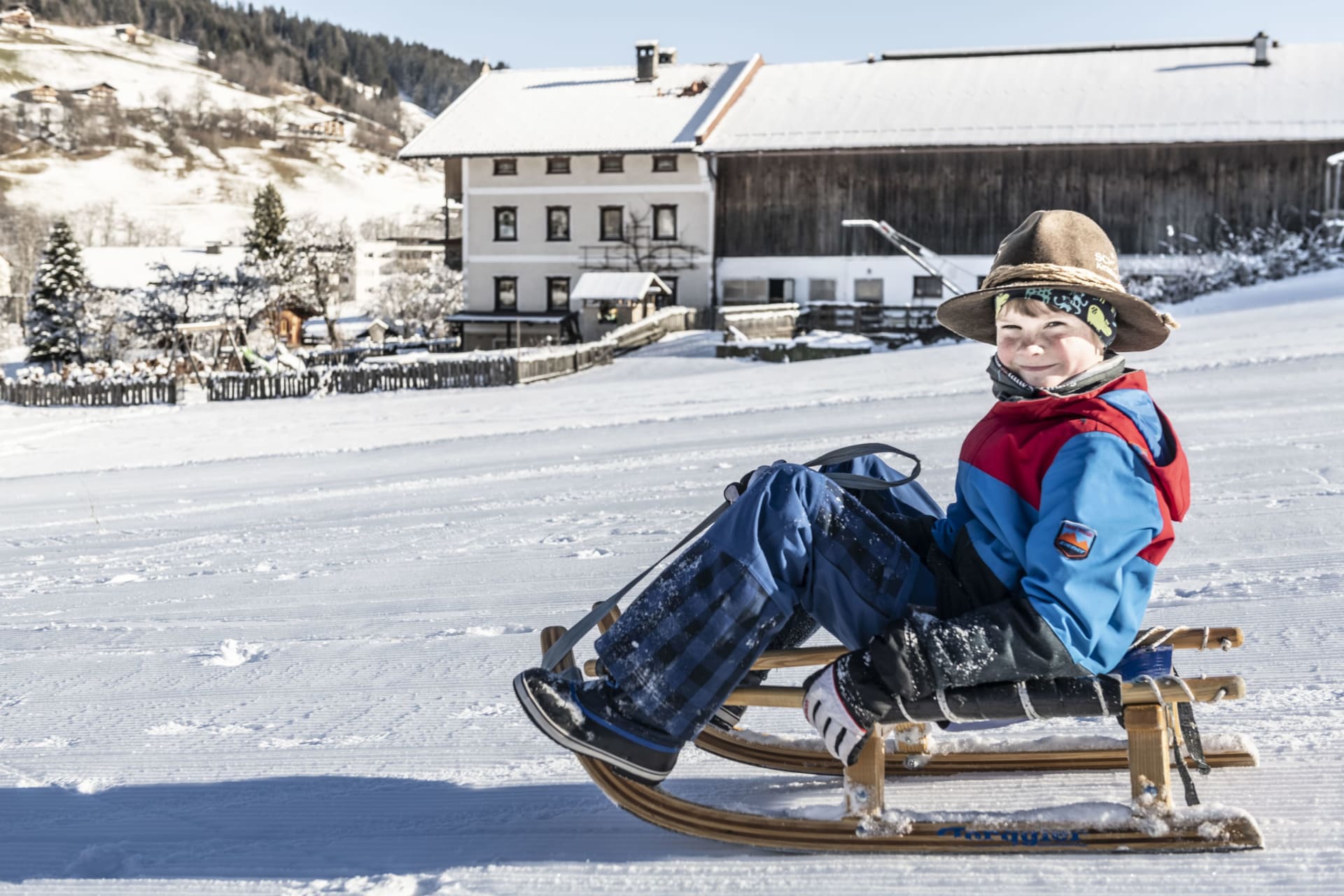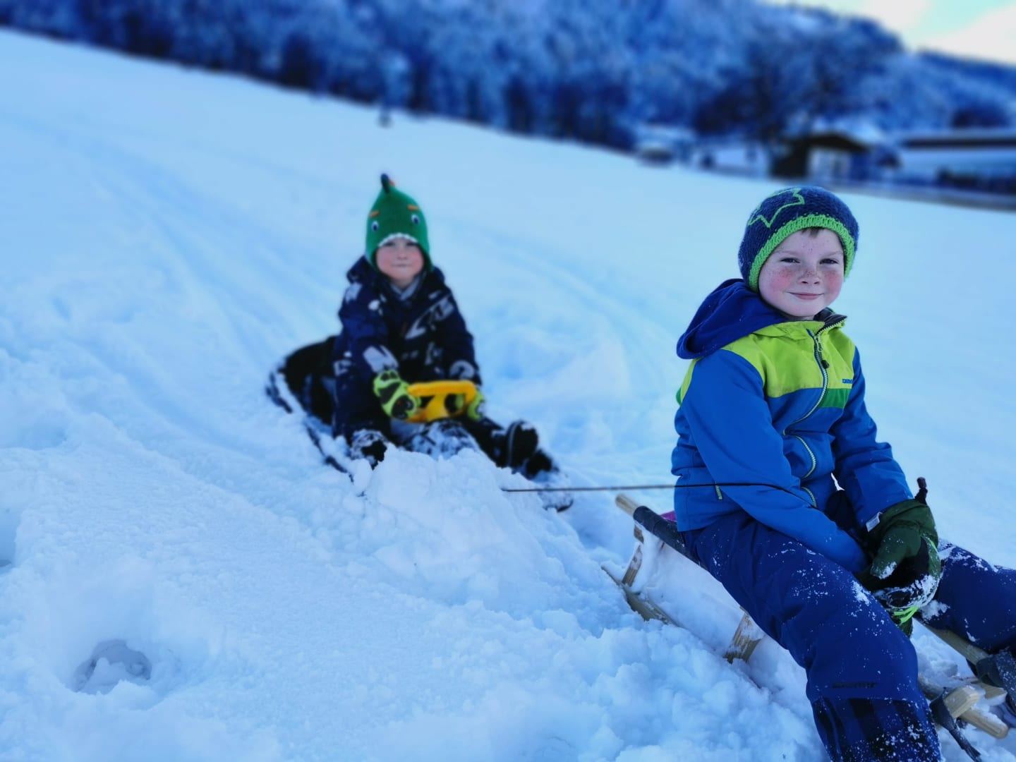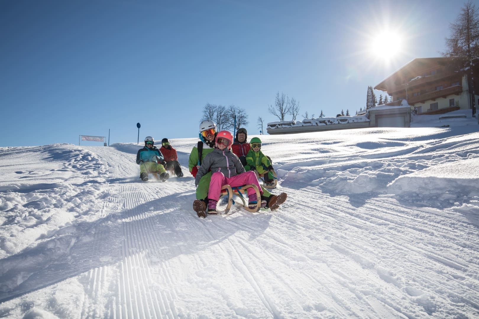 Als Ausgleich neben dem Haus noch eine Weile Schlitten fahren? Jederzeit möglich, die Rodeln und Kinderbobs dazu stehen im Keller zur Verfügung und können gerne verwendet werden
