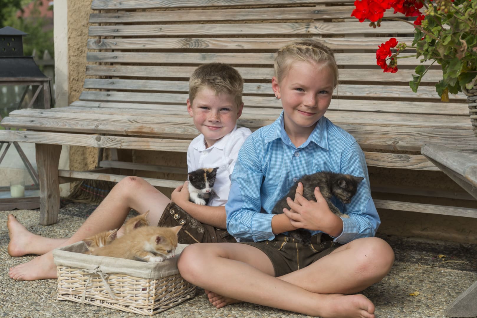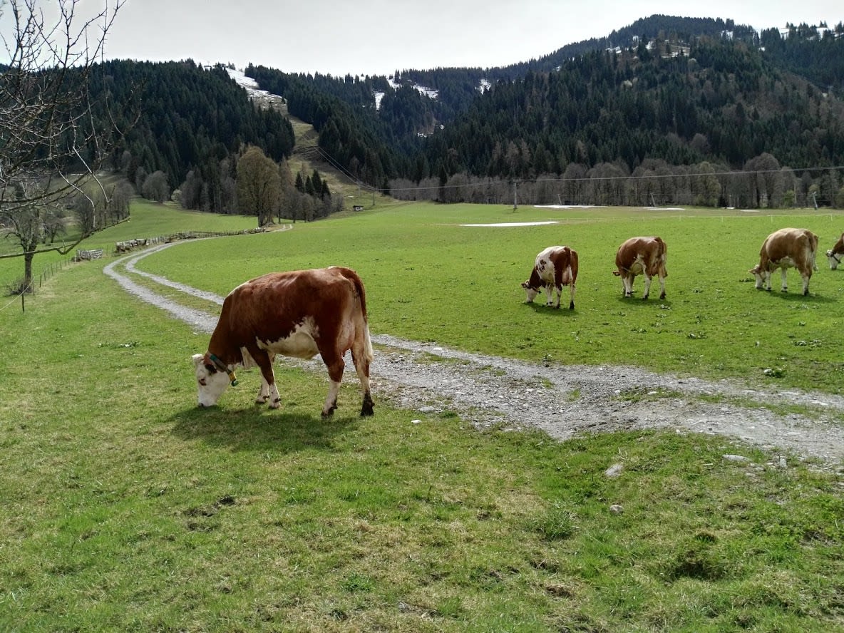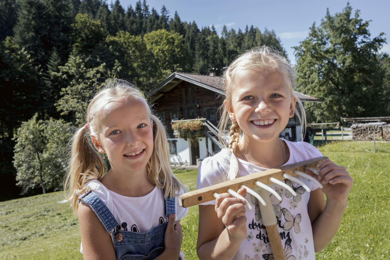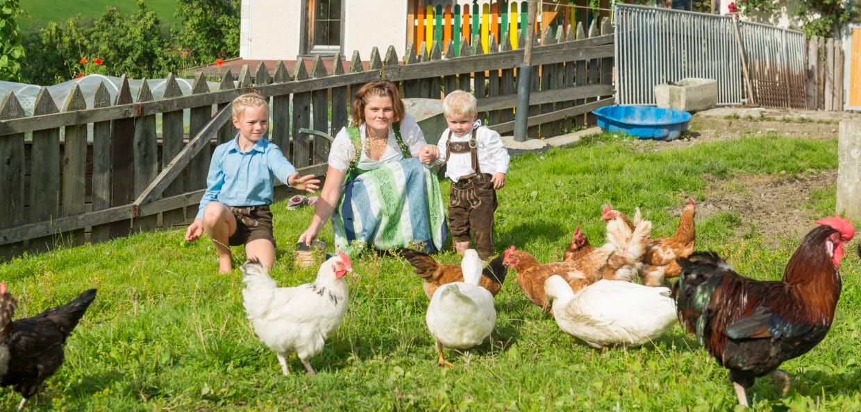 Auf unserem Bauernhof ist auch nach dem Skifahren noch einiges geboten. Im Stall sind die Kühe, Kälber, Hühner, Kaninchen und Enten zu versorgen.